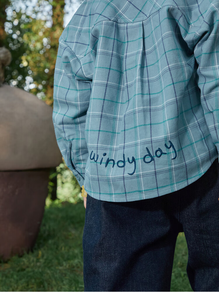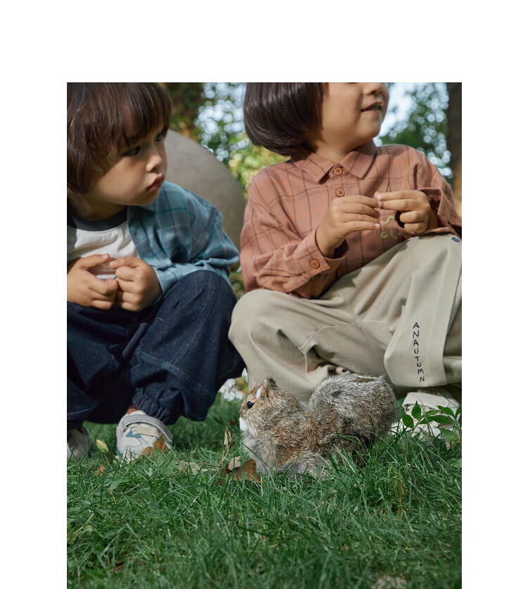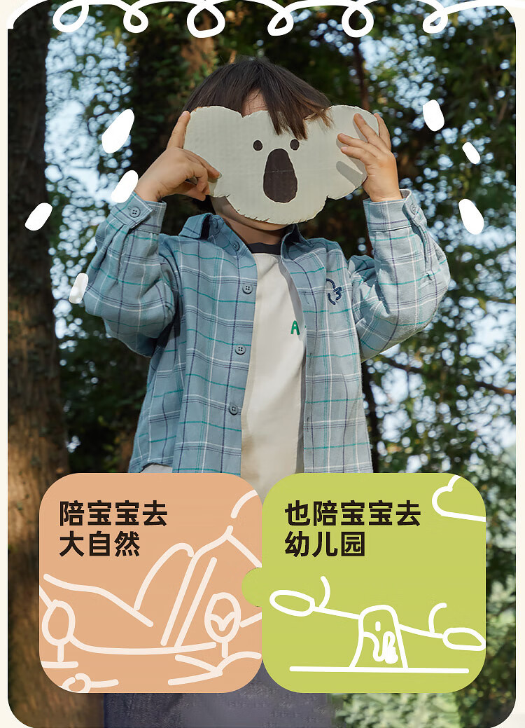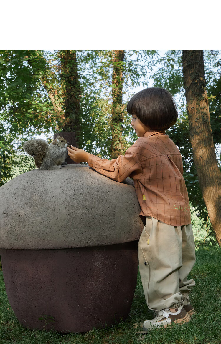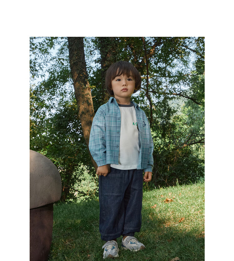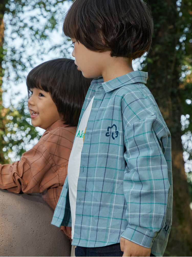 Papa climbing spring children's shirt boys and girls shirt brushed plaid shirt pure cotton long-sleeved top versatile for going out brown 100