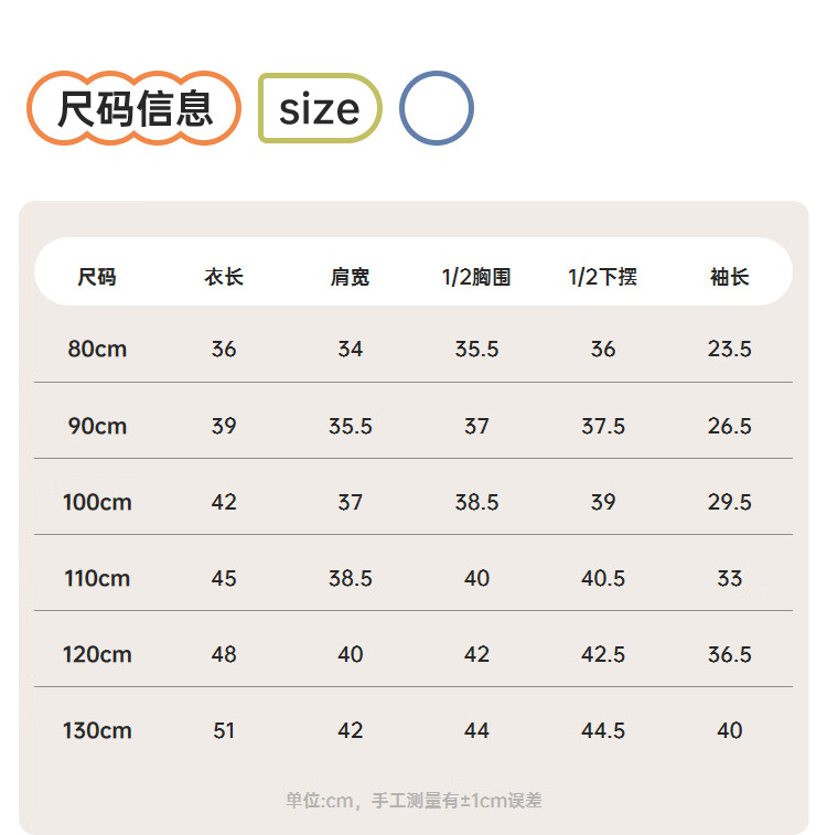 Size (cm) 42 44 46 48 50