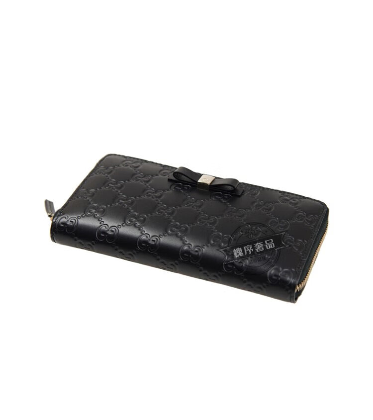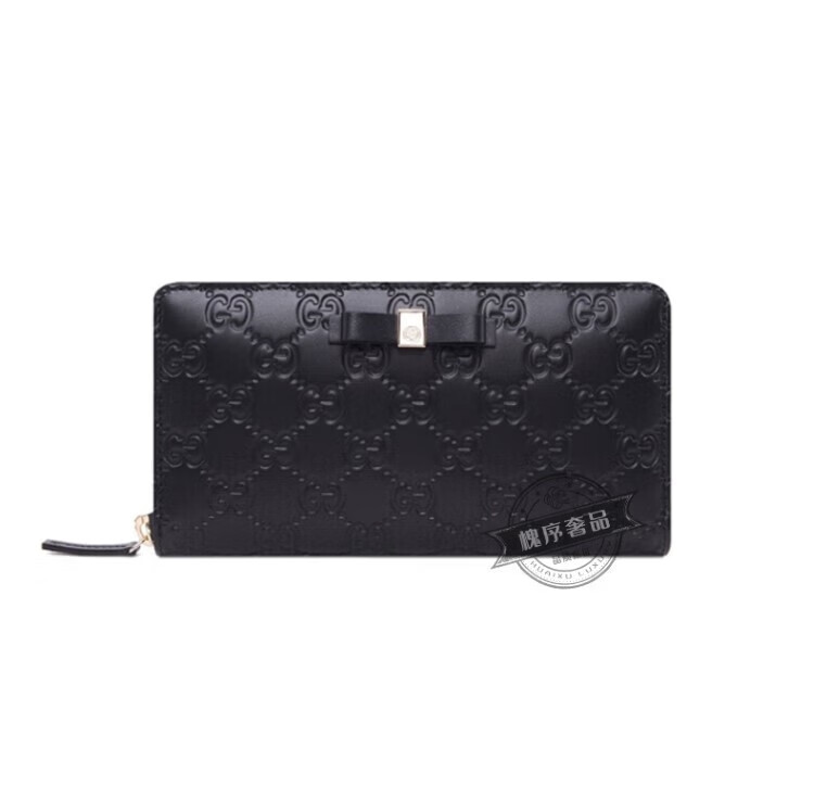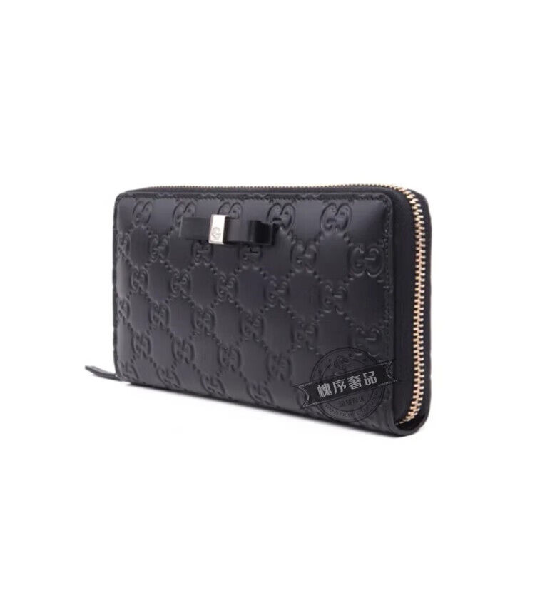 Gucci (GUCCI) bow buckle long zipper embossed leather wallet for women 388680CWC1G1000 black black FZ