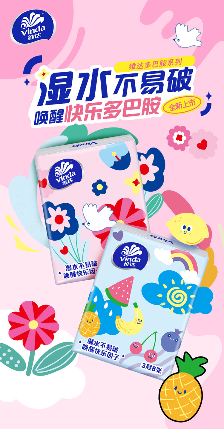 Vinda double tough handkerchief paper portable and portable Wuhuang sanitary napkin napkin facial tissue unscented 3 layers 8 pieces * 20 pack