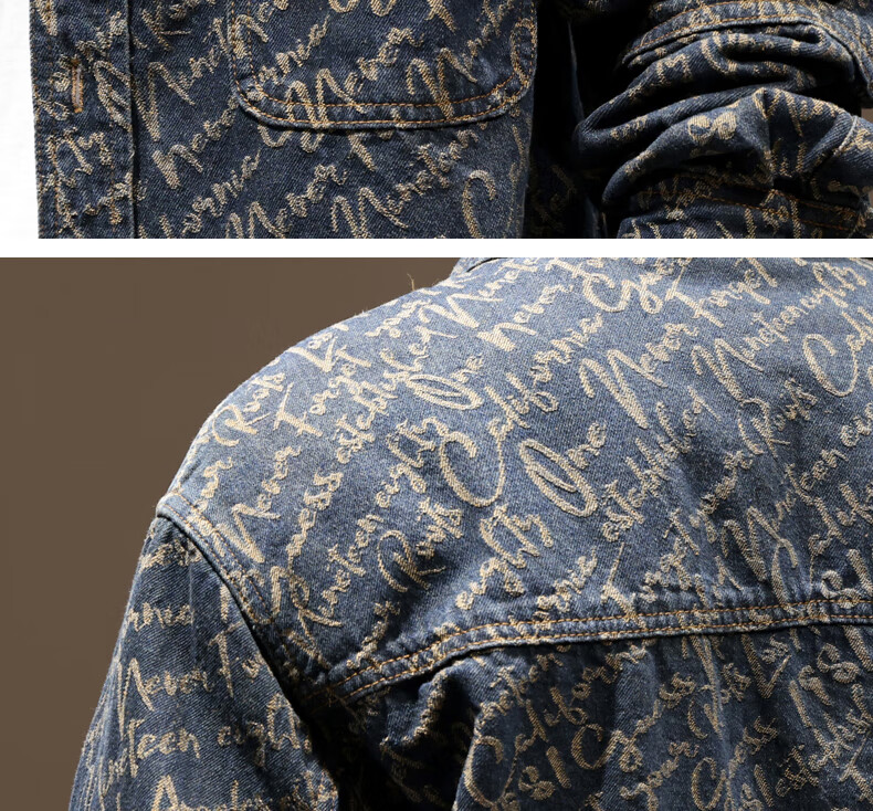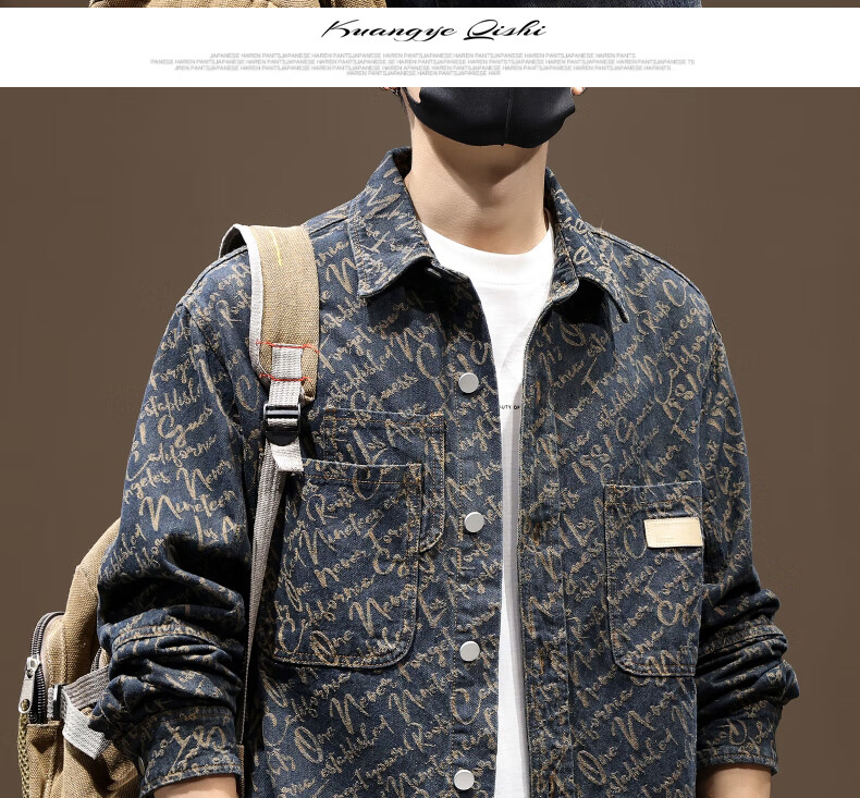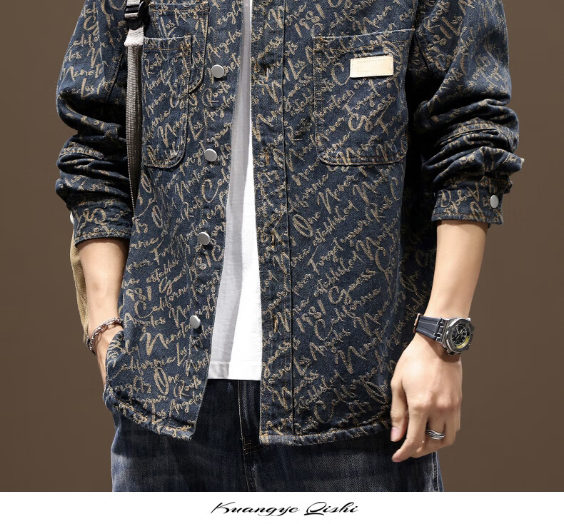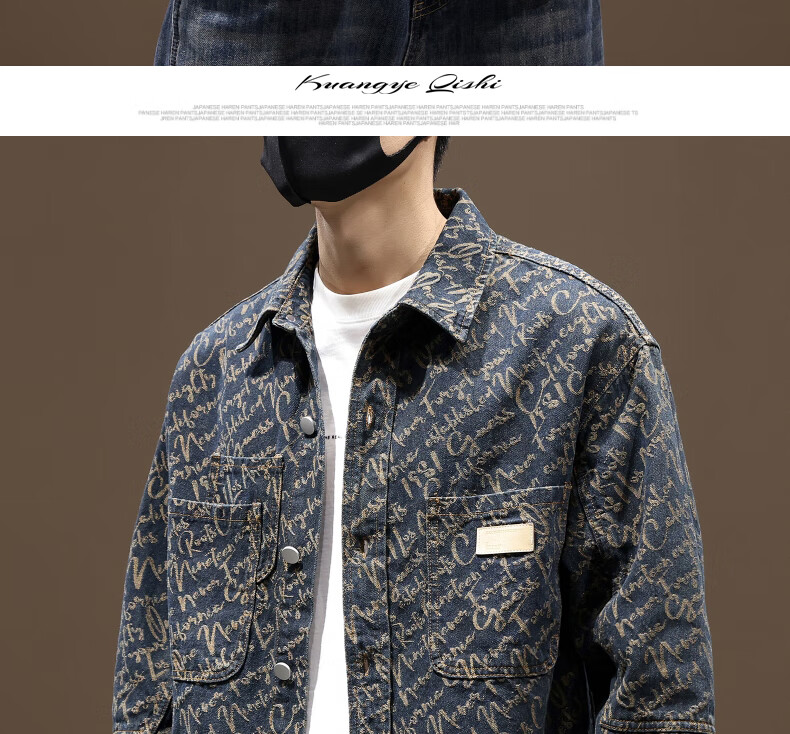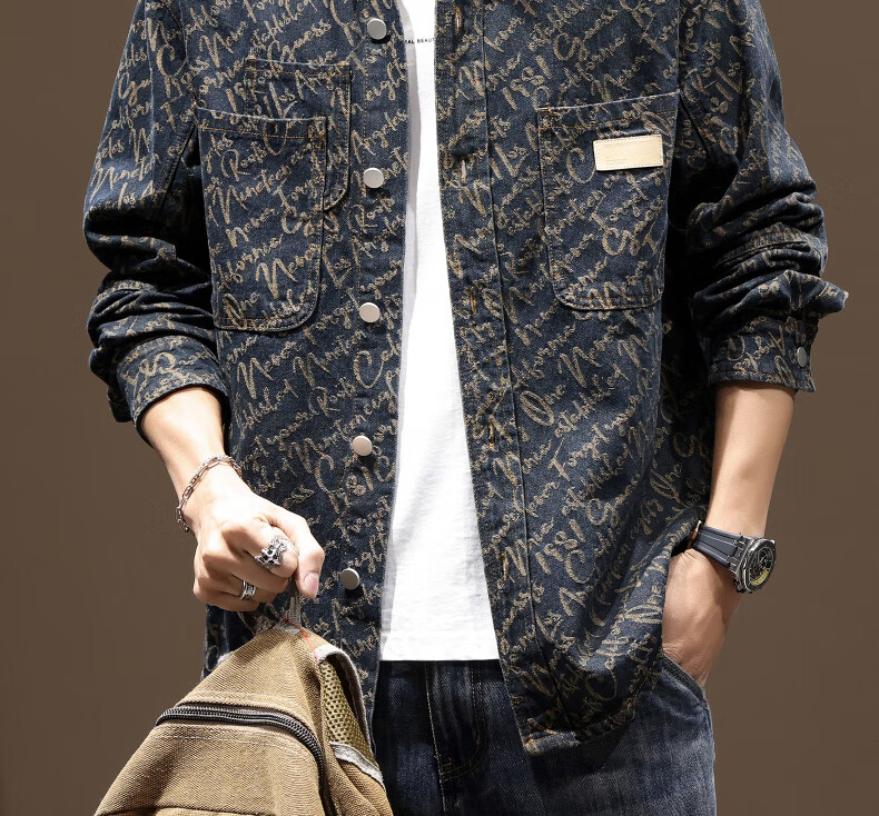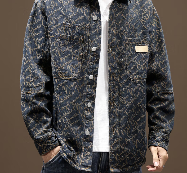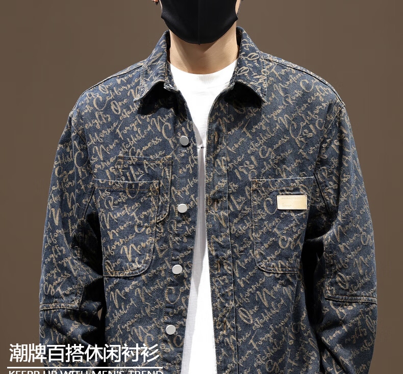 Jeanswest jacket men's denim shirt 2025 spring and autumn new high-end jacquard retro lapel casual long-sleeved shirt jacket 53 blue L (165)