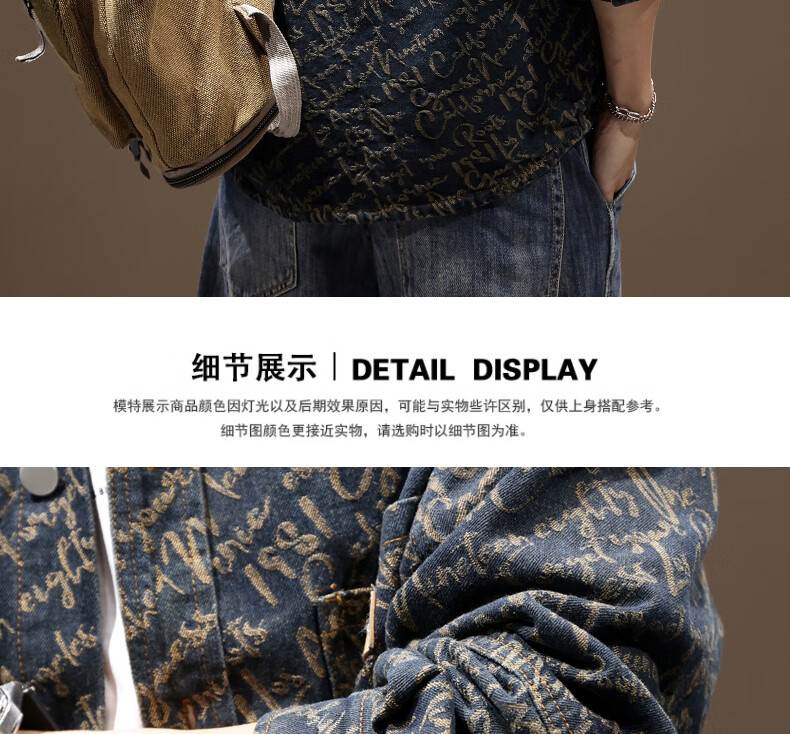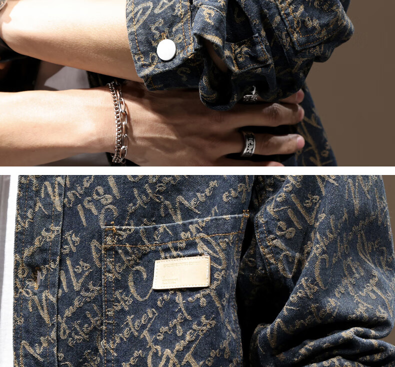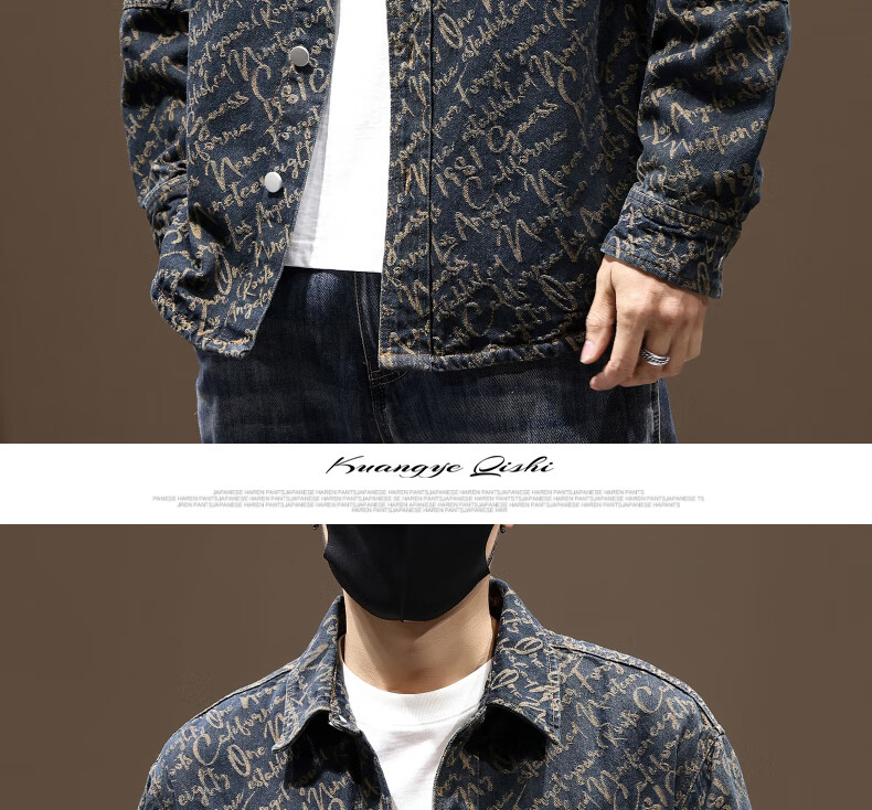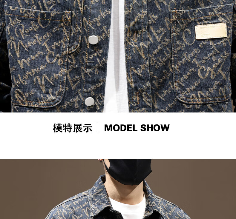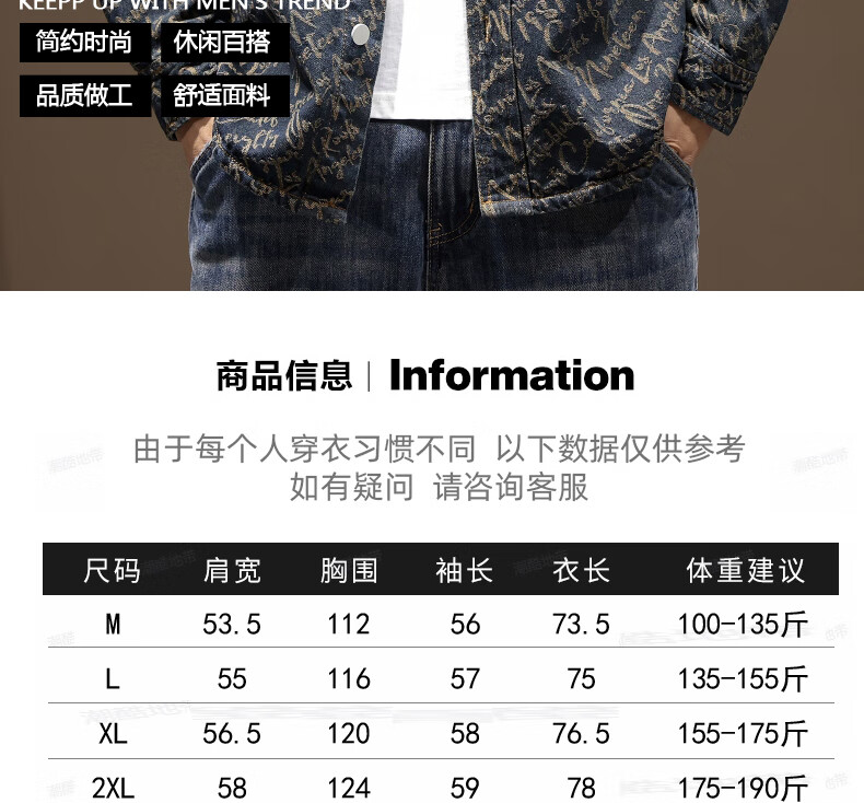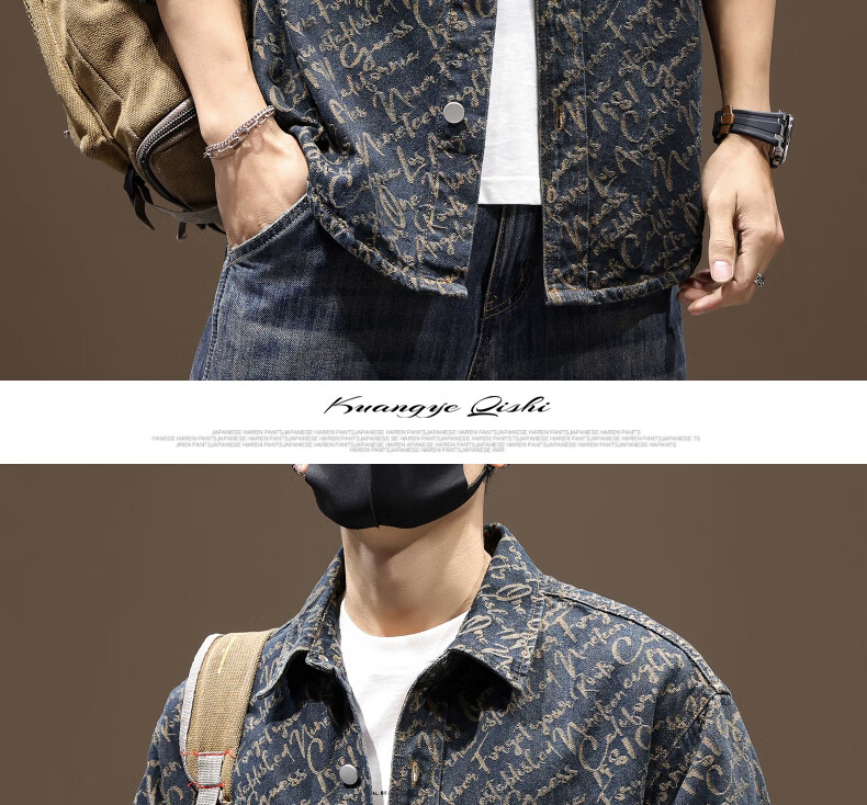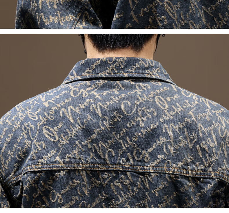 Jeanswest jacket men's denim shirt 2025 spring and autumn new high-end jacquard retro lapel casual long-sleeved shirt jacket 53 blue L (165)