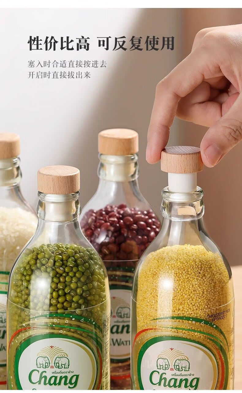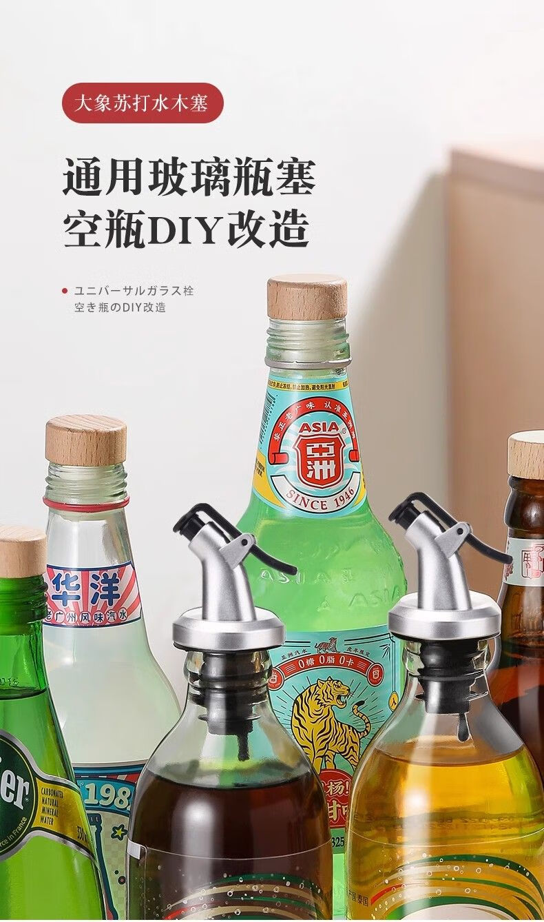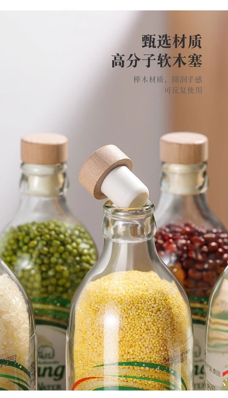 Jijia Elephant Soda Water Bottle Stopper Perrier Sparkling Water Grain Storage Glass Bottle Universal Beech Wood Stopper Mushroom Stopper 6 Free Funnel