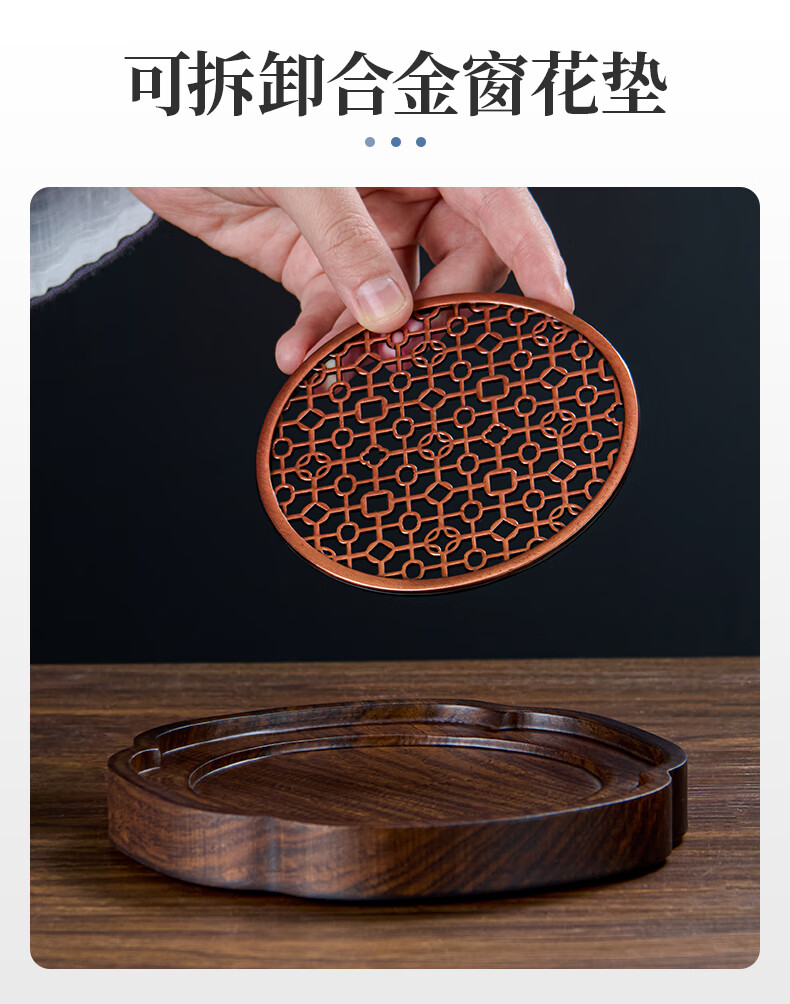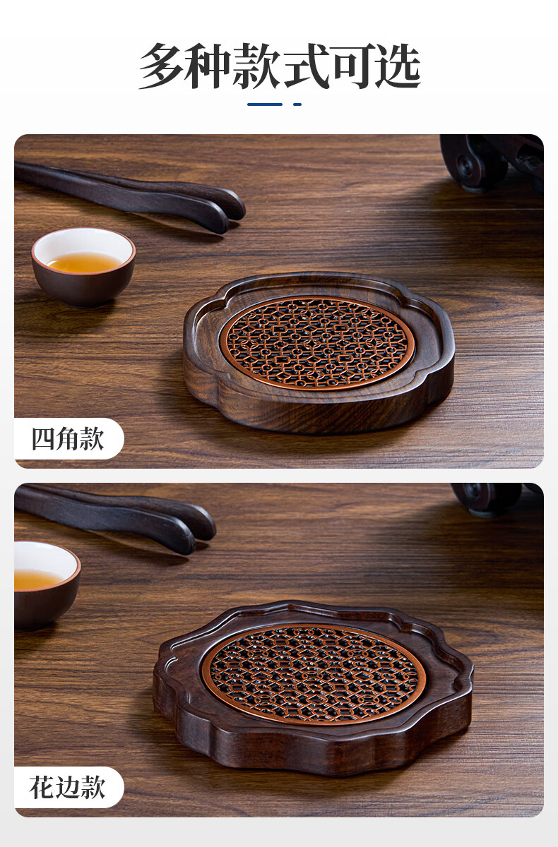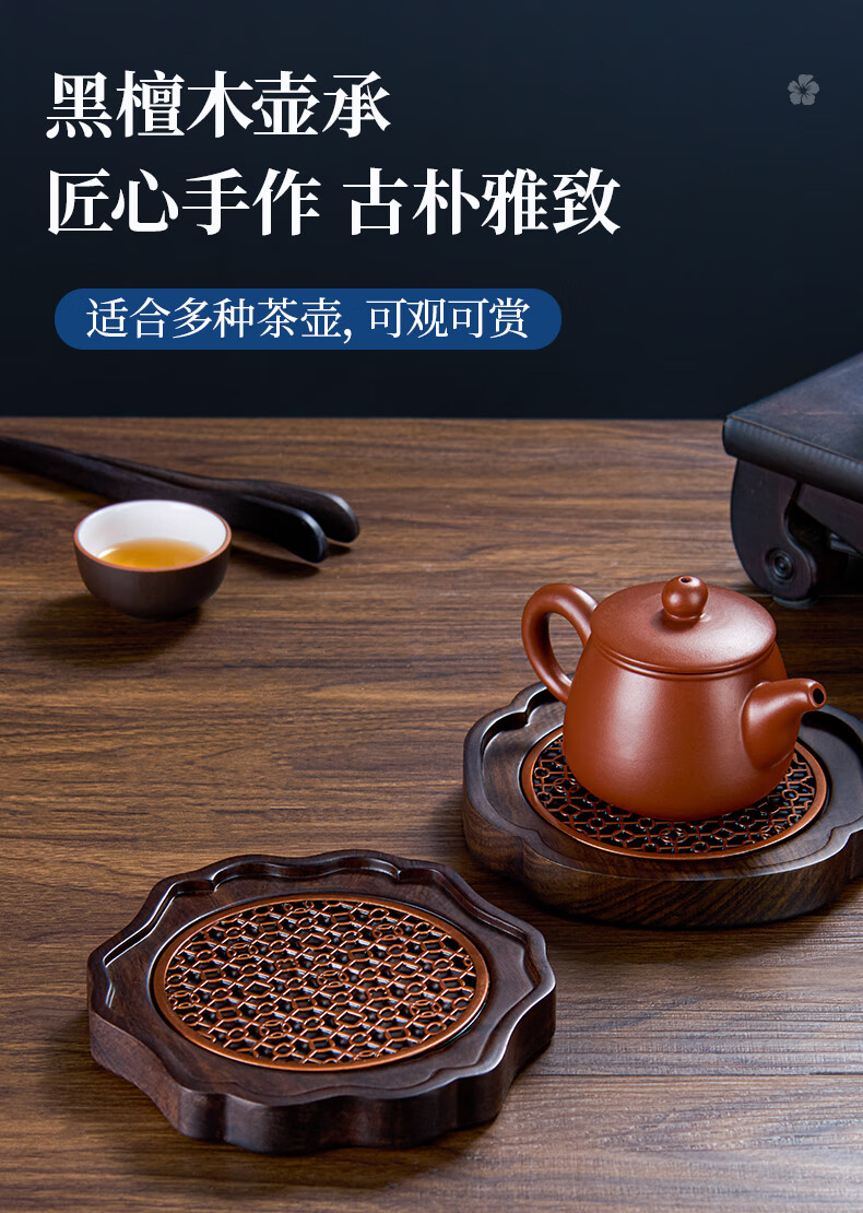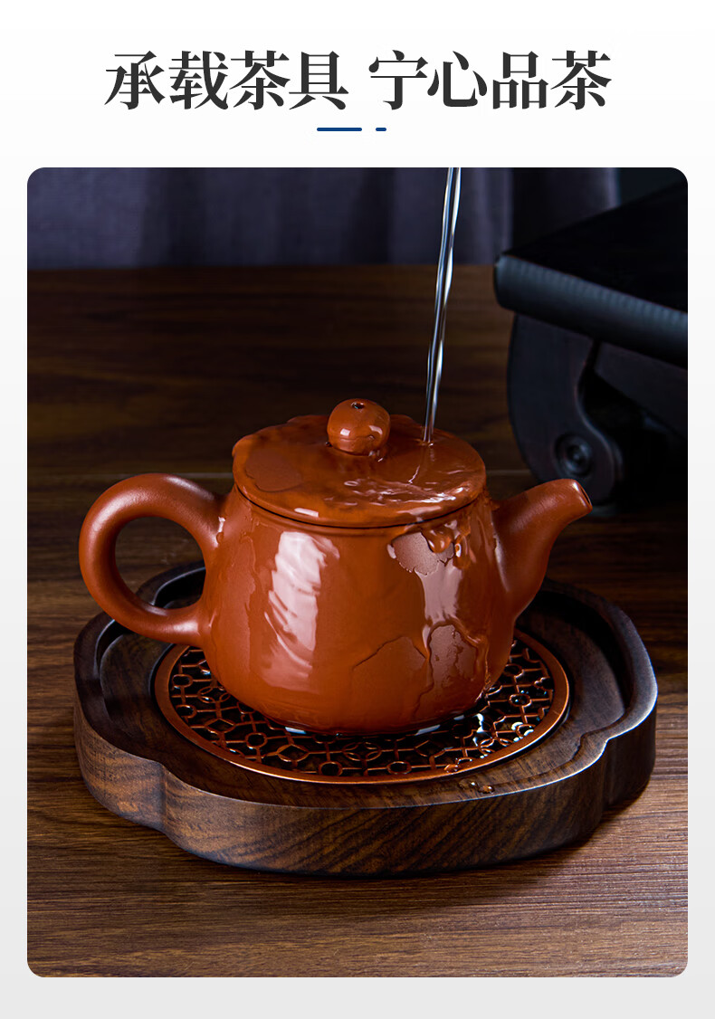 Liexuan ebony solid wood pot holder tea tray tray dry soaking table purple sand teapot pad pot base household kung fu tea set small ebony pot holder lace