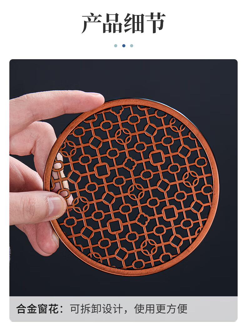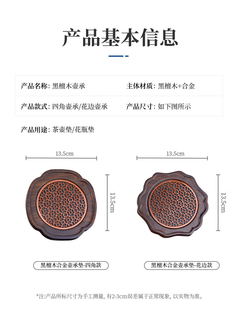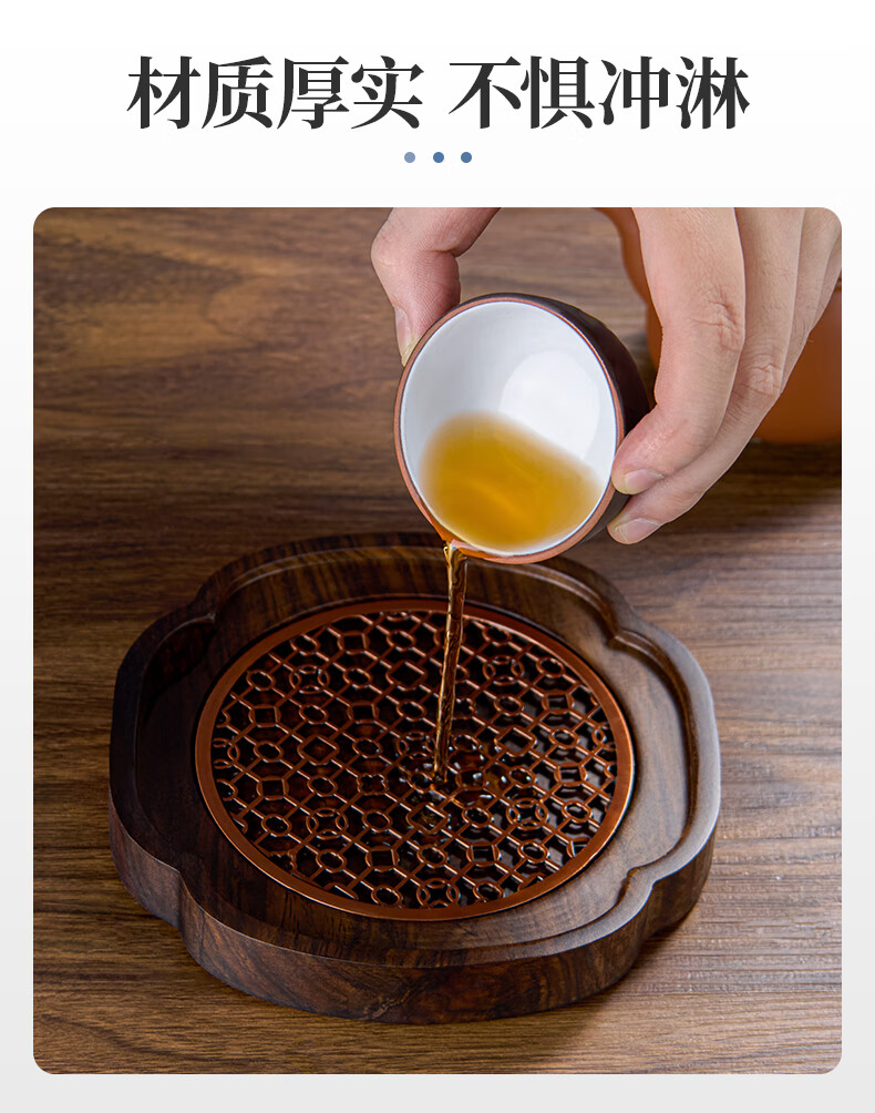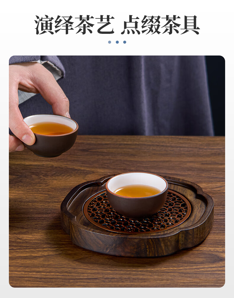 Liexuan ebony solid wood pot holder tea tray tray dry soaking table purple sand teapot pad pot base household kung fu tea set small ebony pot holder lace