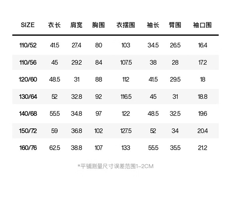 China (cm) 160-165/84-86 165-170 / 88-90 167-172 / 92-96 168-173 / 98-102 170-176 / 106-110