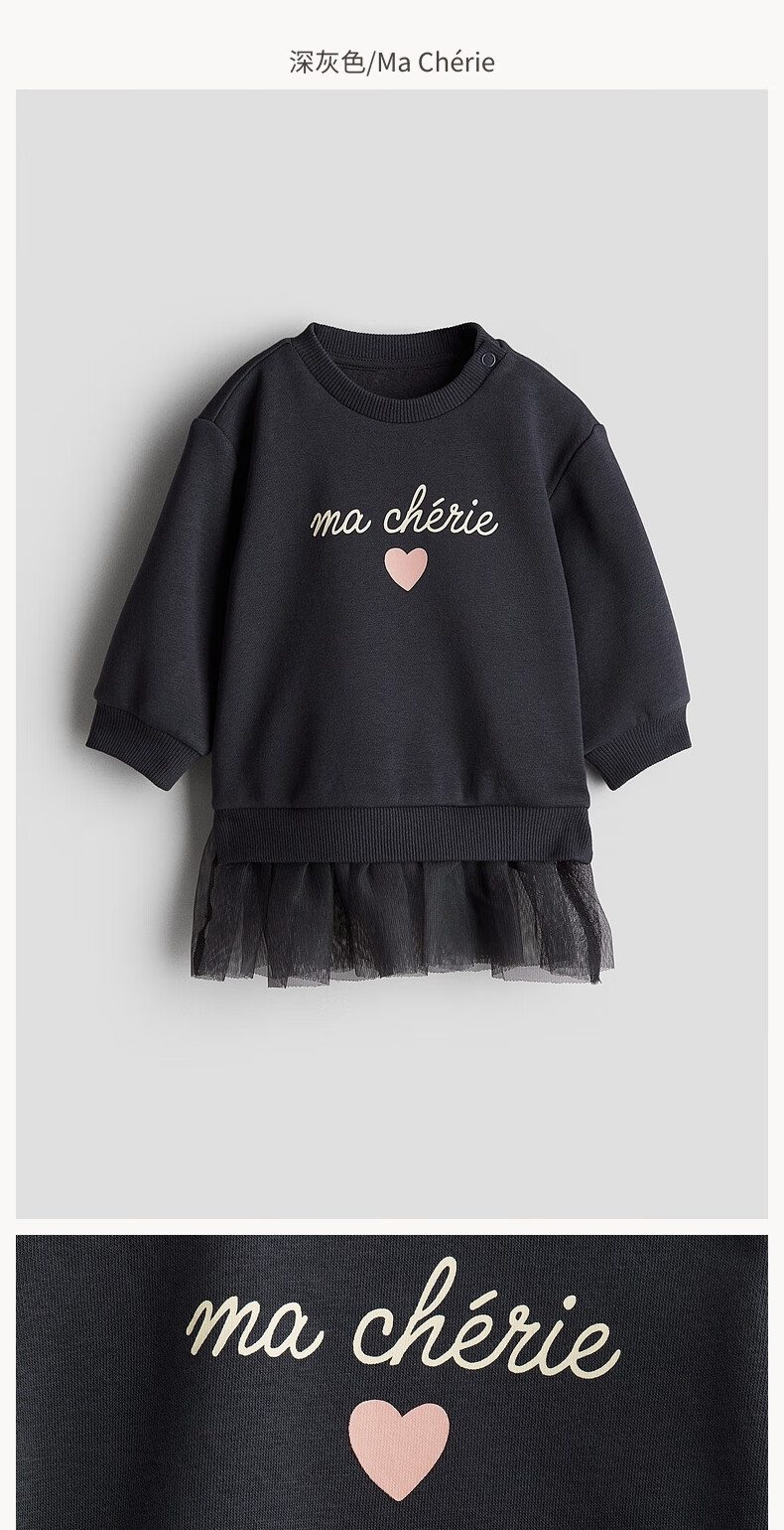 H&M children's clothing baby girl dress 2024 autumn new childlike bow tulle skirt skirt 1246188 dark gray /Ma Cherie 90 90cm 90/52