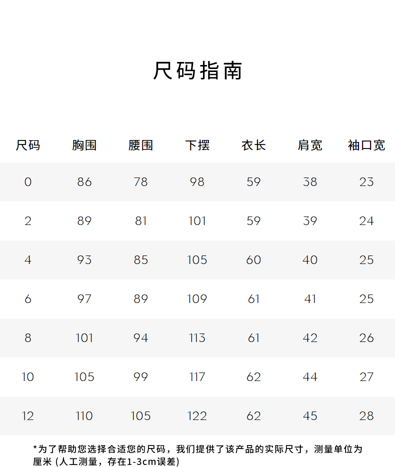 China (cm) 160-165/84-86 165-170 / 88-90 167-172 / 92-96 168-173 / 98-102 170-176 / 106-110