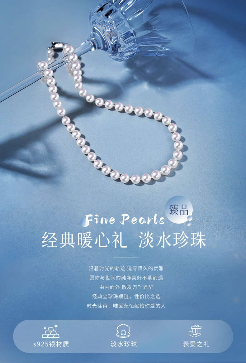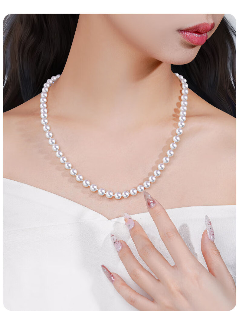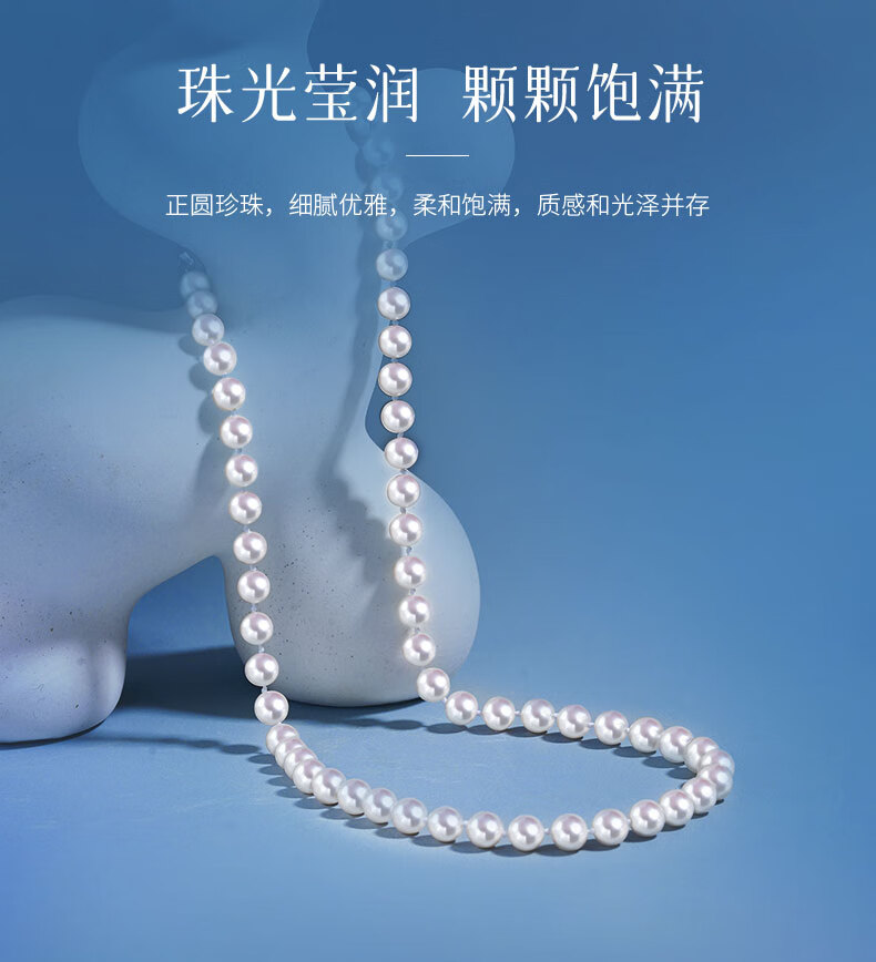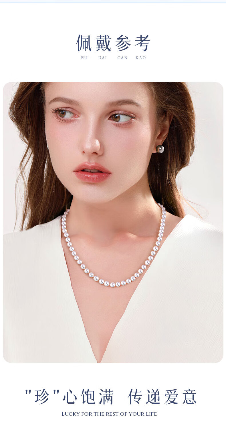 China Gold (CHINA GOLD) Natural Freshwater Pearl Necklace Mother's Style Full Bead Chain Plain Beads New Year's Eve Christmas Gift for Girls 7-8mm/S925 Silver Stick Buckle-Full Beads