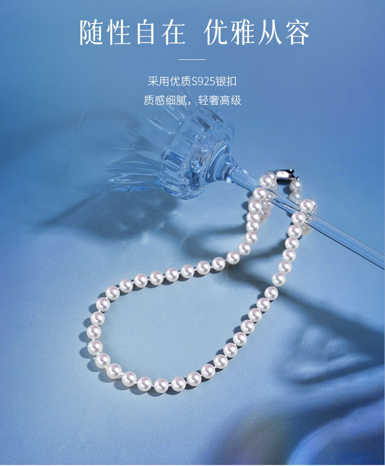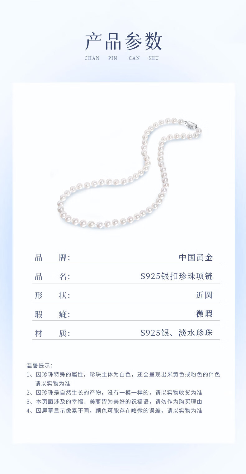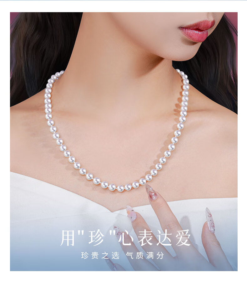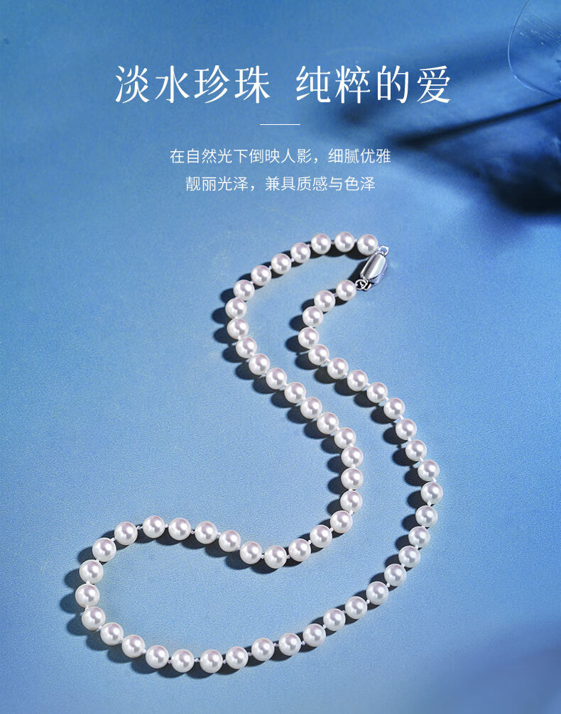 China Gold (CHINA GOLD) Natural Freshwater Pearl Necklace Mother's Style Full Bead Chain Plain Beads New Year's Eve Christmas Gift for Girls 7-8mm/S925 Silver Stick Buckle-Full Beads