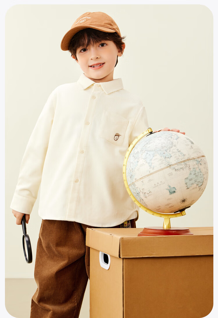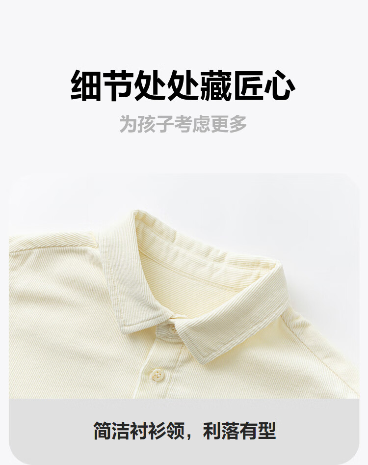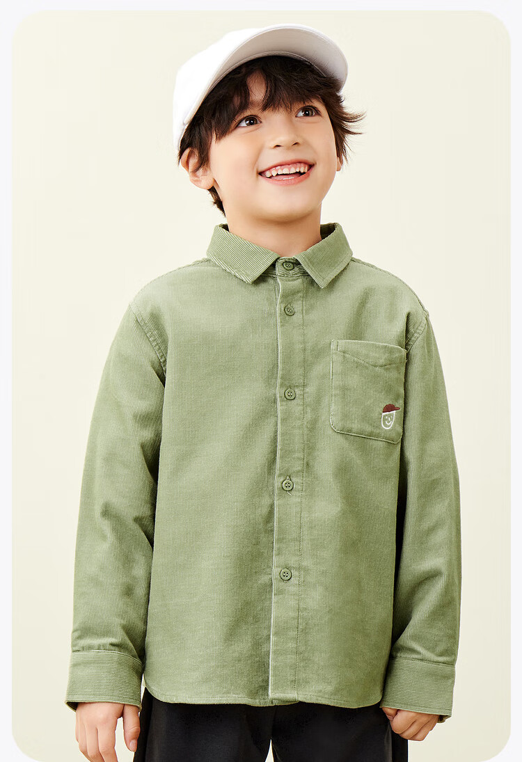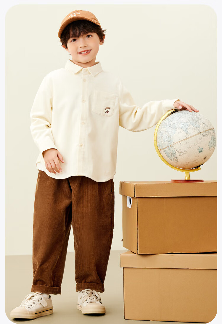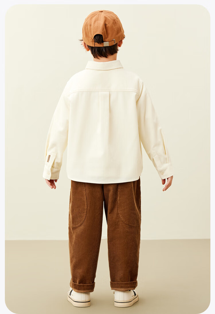 Mini Balabala, the same style in the mall, boys' pure cotton corduroy spring new retro long-sleeved shirt, milk white 10504 140 cm