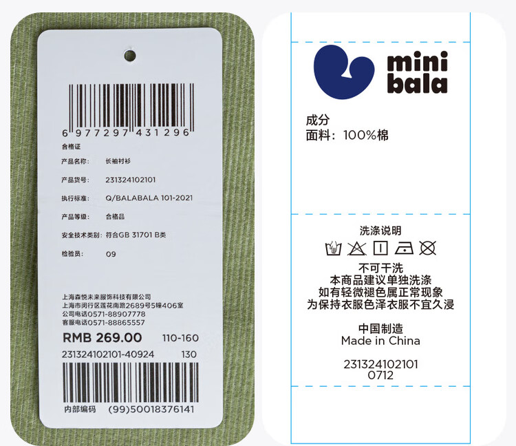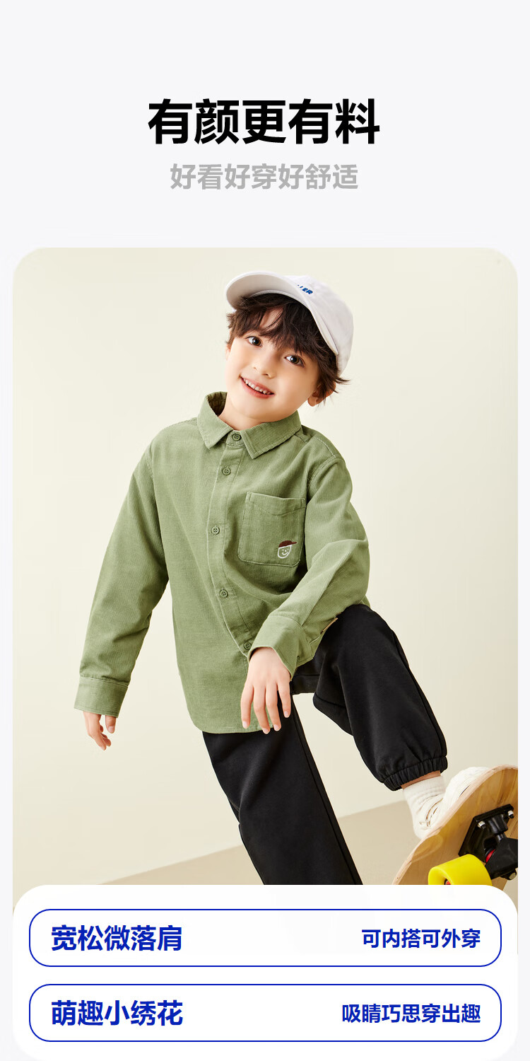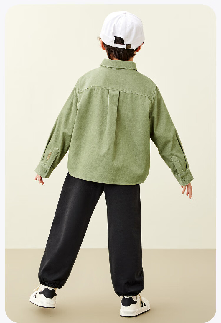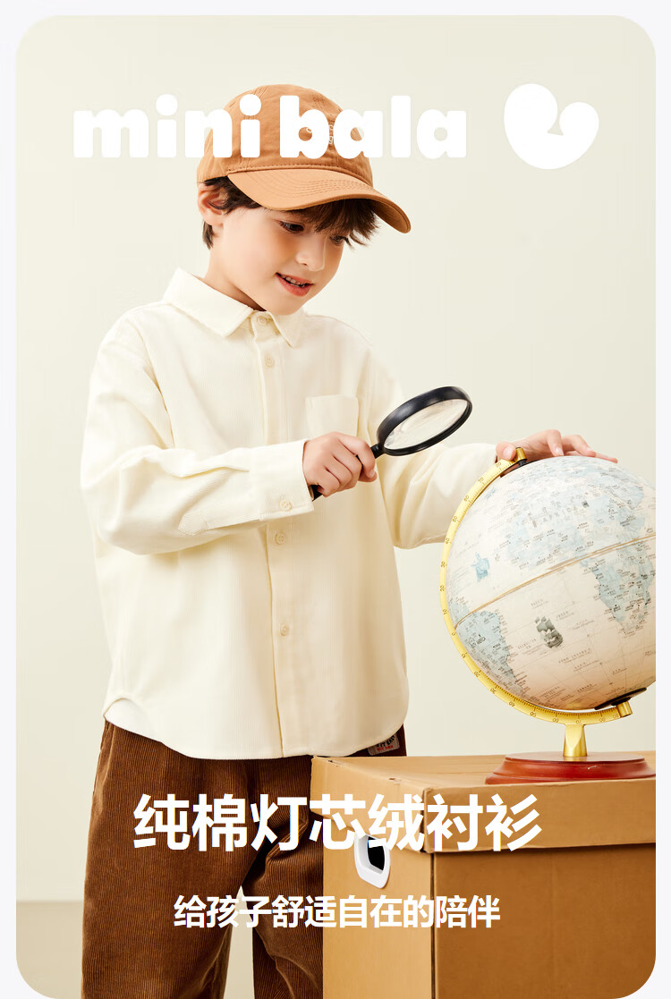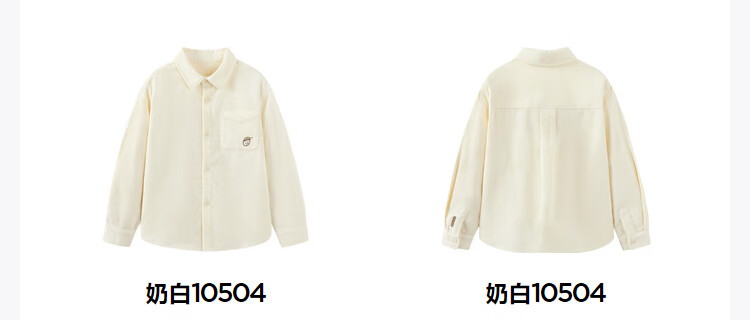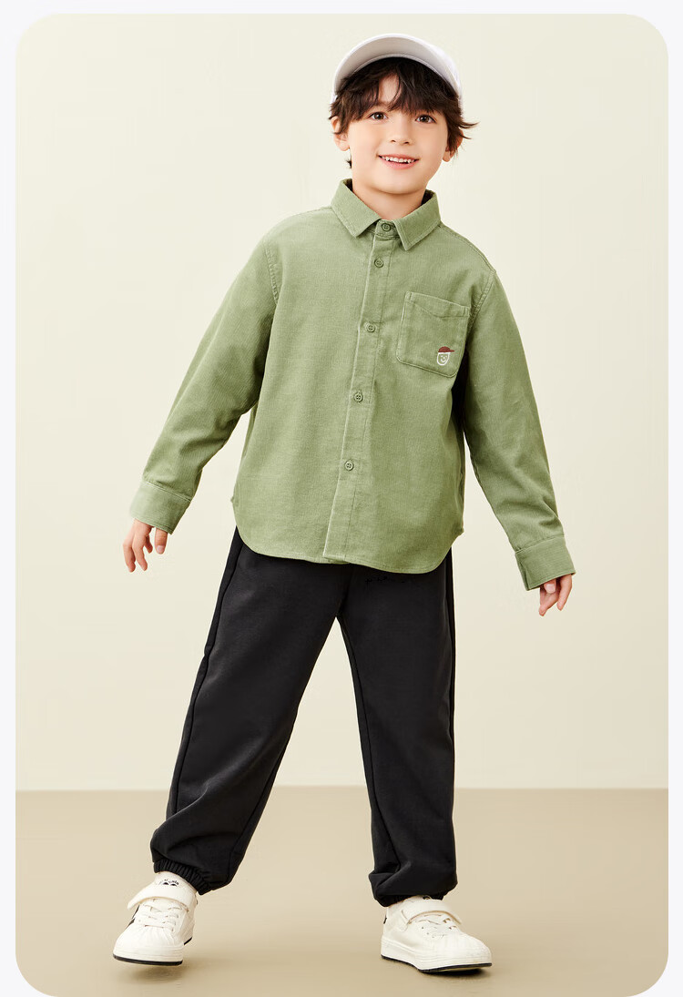 Mini Balabala, the same style in the mall, boys' pure cotton corduroy spring new retro long-sleeved shirt, milk white 10504 140 cm