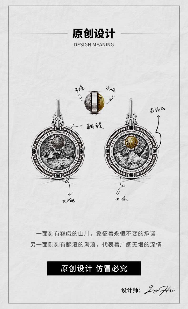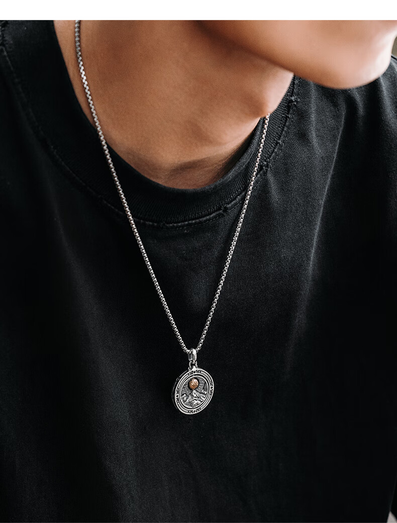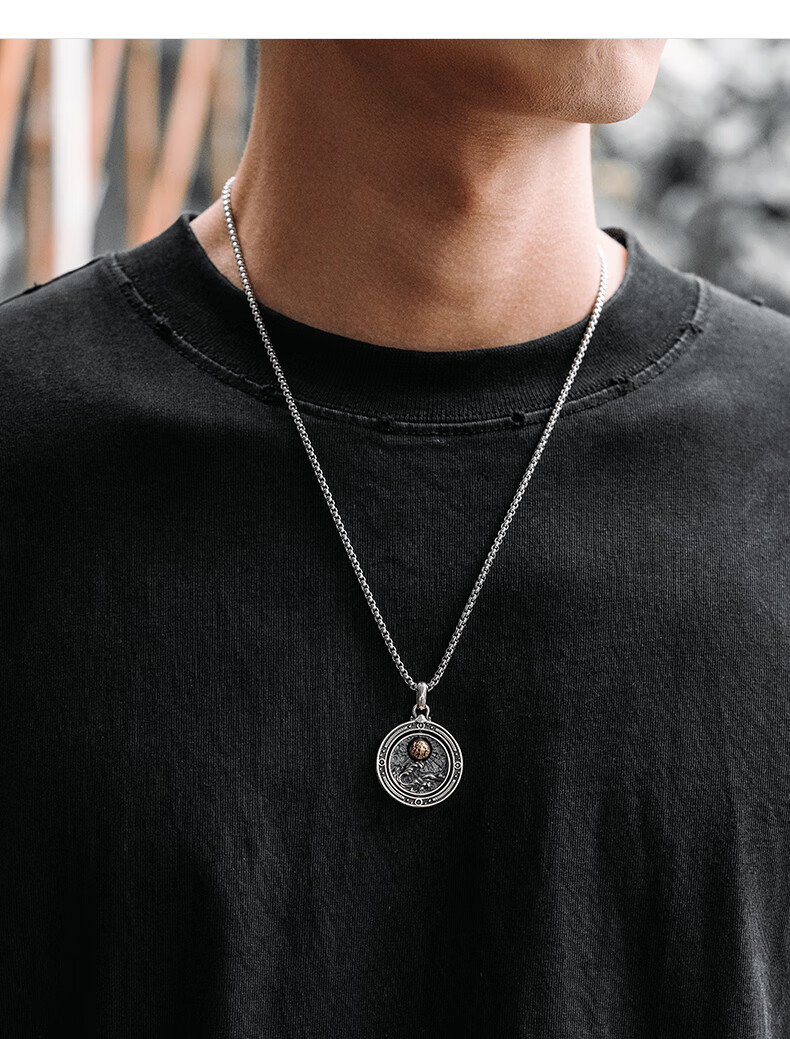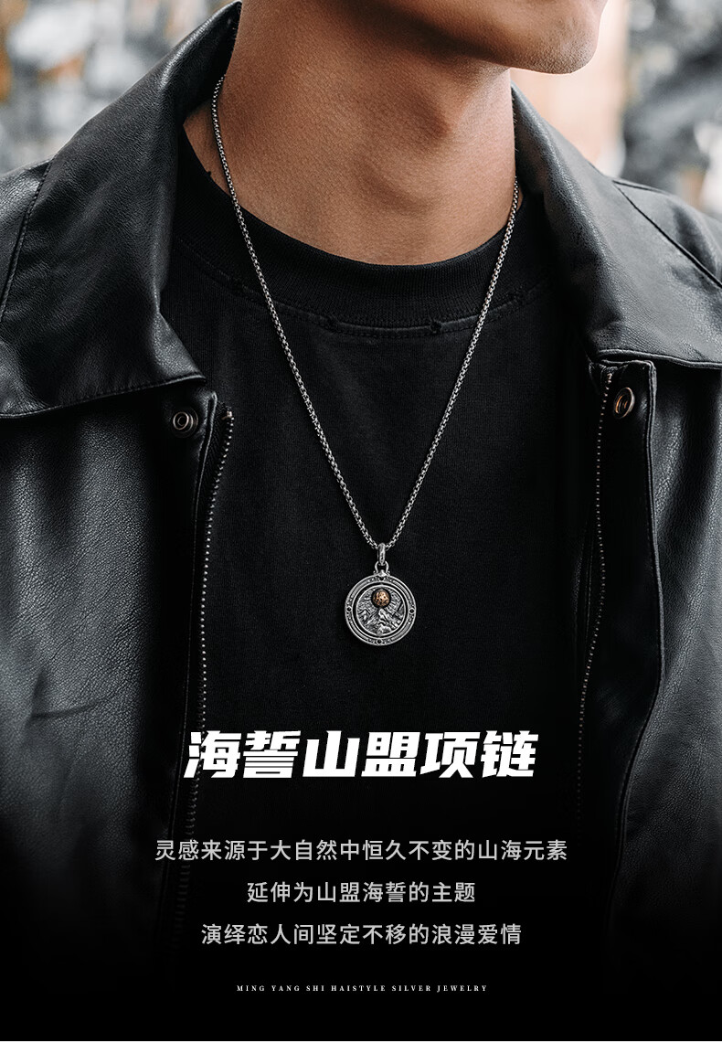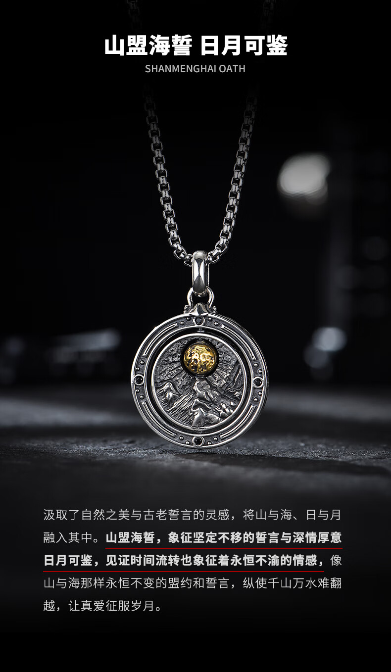 Mingyang Decoration Sea Rotatable 925 Silver Eachother Double-sided Ring Necklace Men's Trendy Accessories Original Personalized Pendant Eachother Pendant + Square Bead Silver Chain 70cm