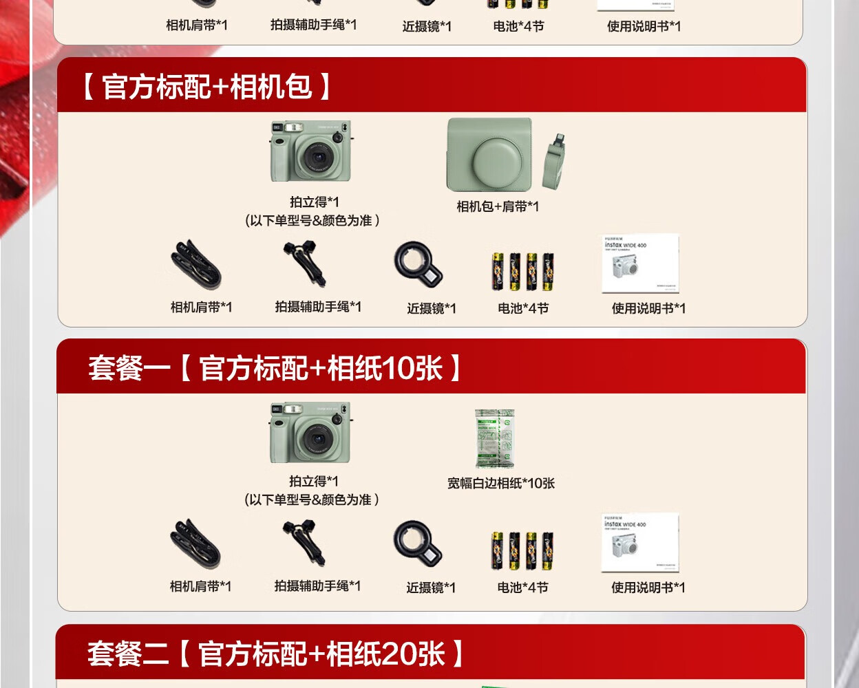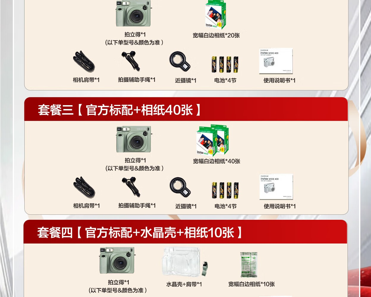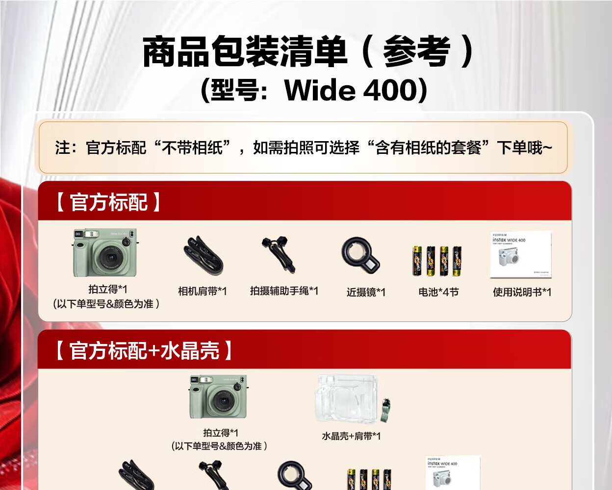 Fuji (FUJIFILM) instax WIDE400 Polaroid wide format photo paper large field of view 5-inch wide 40 sheets official standard