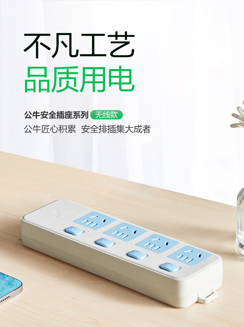 Bull sub-control wiring board wireless without wires genuine multi-hole household independent switch multi-functional power strip small plug-in board row without wires wireless power strip wireless 3-hole sub-control 314 (need to wire it yourself)