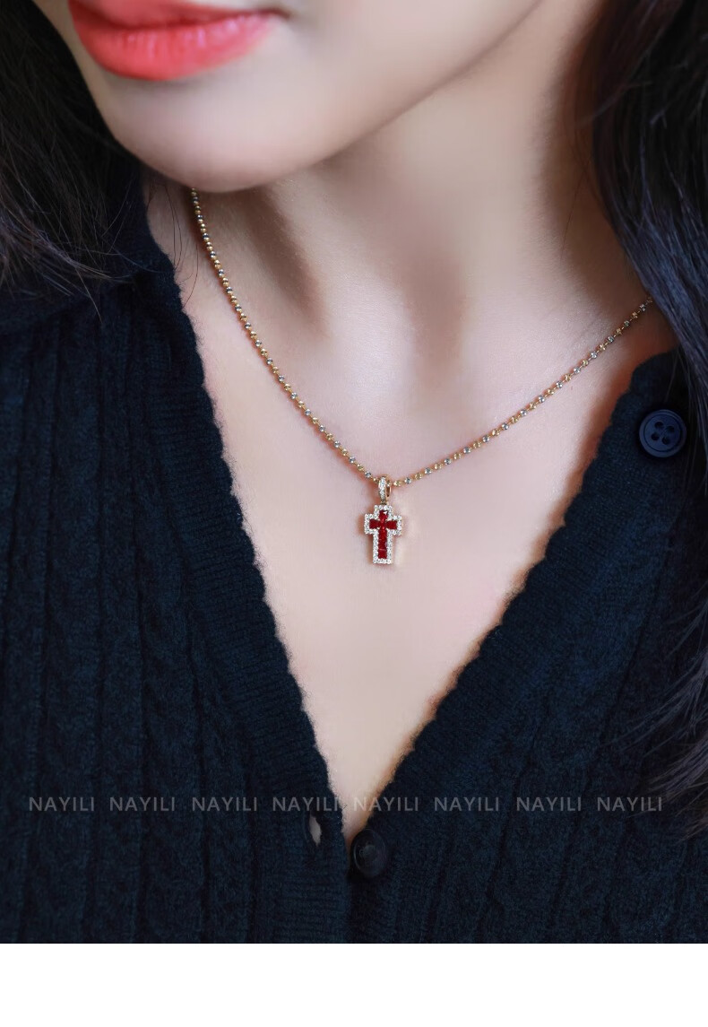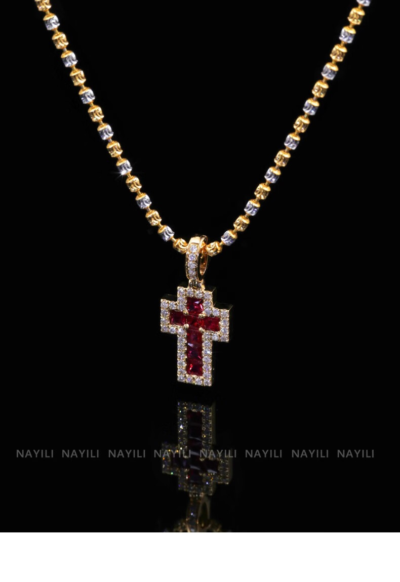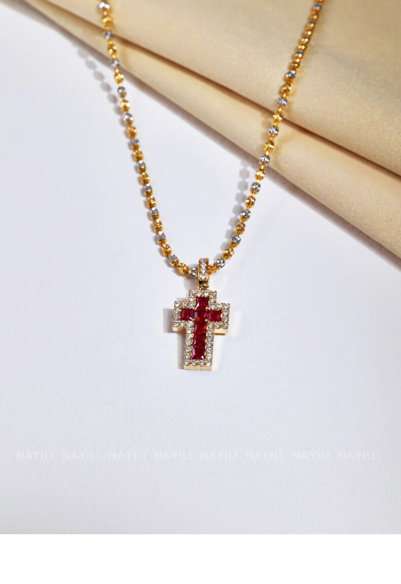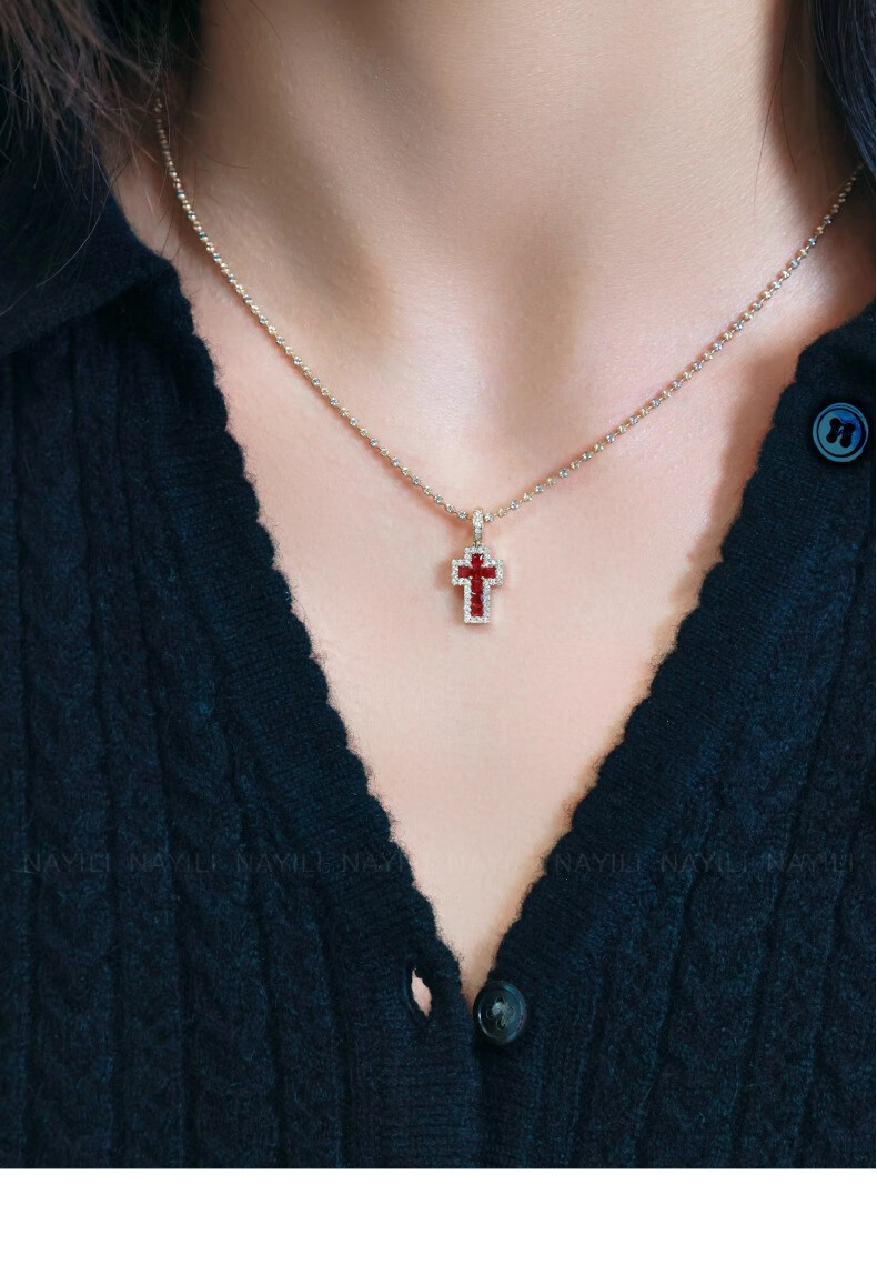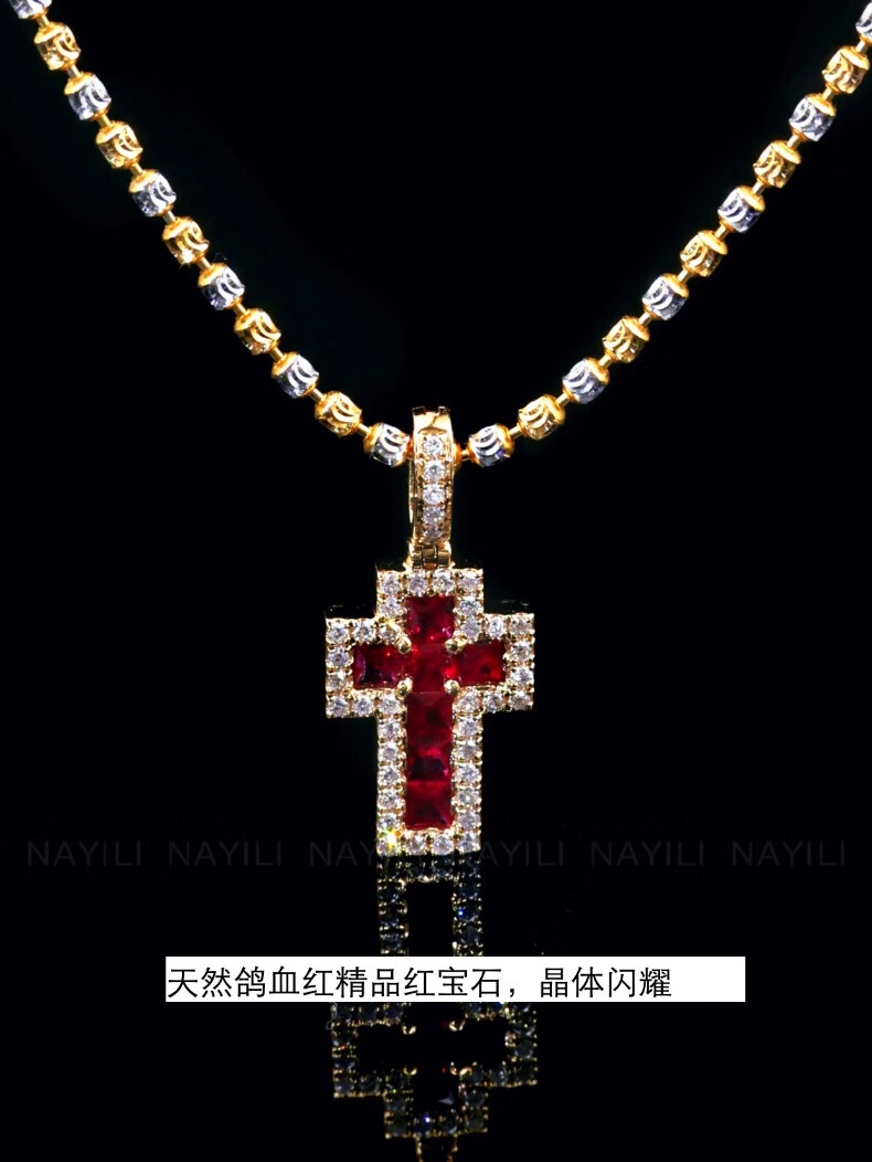 Orenchi Necklace for Women Pigeon Blood Ruby Diamond Necklace Luxury Jewelry Wedding Anniversary Birthday Gift for Wife Natural Ruby Cross Necklace China University of Geosciences Jewelry Testing Center