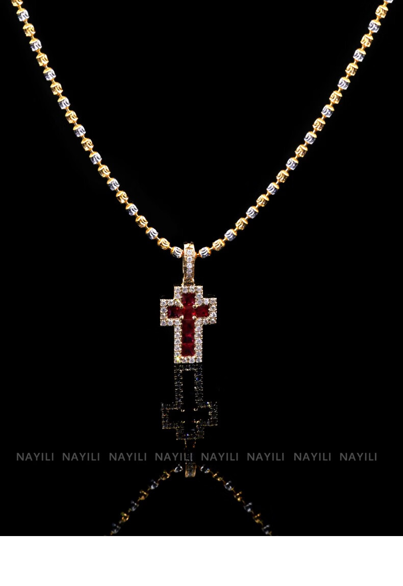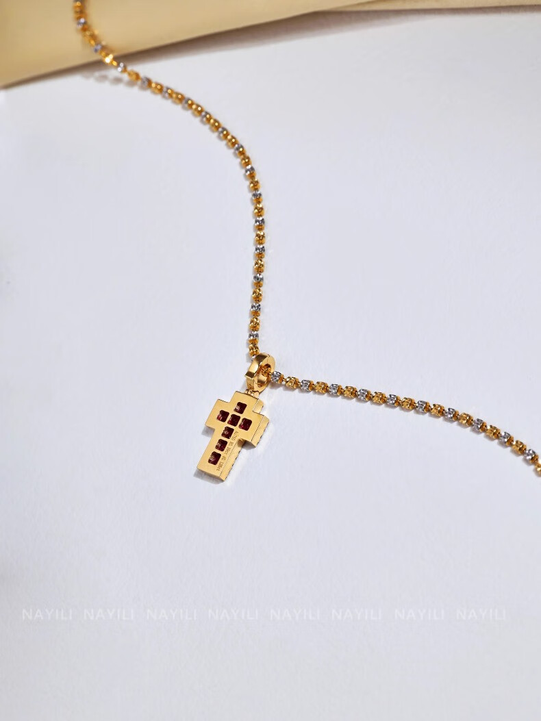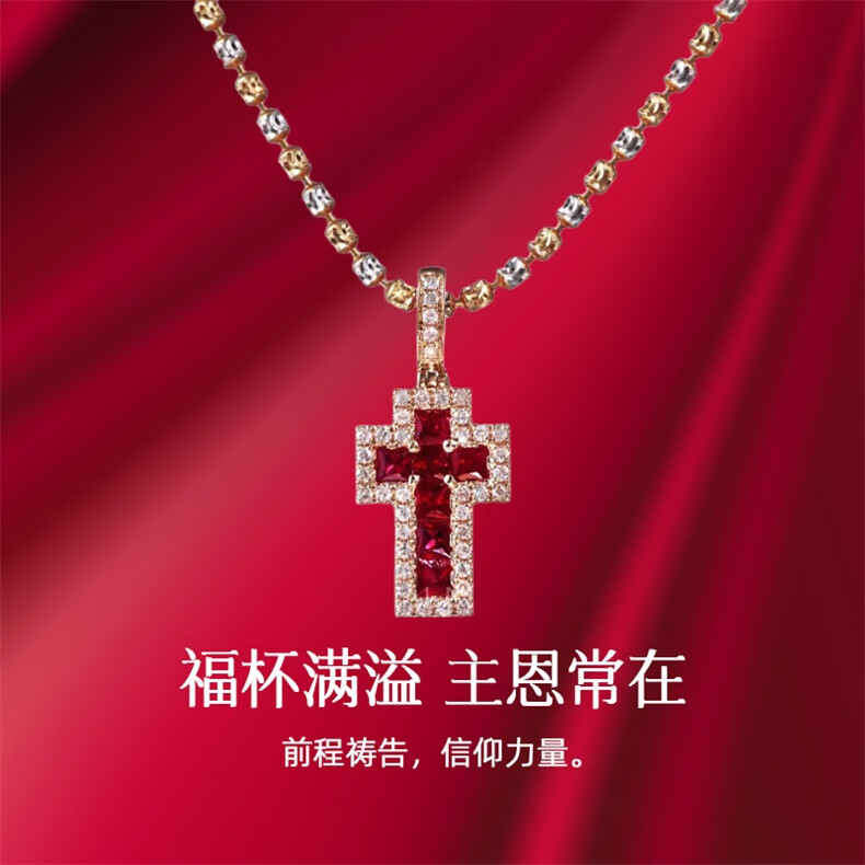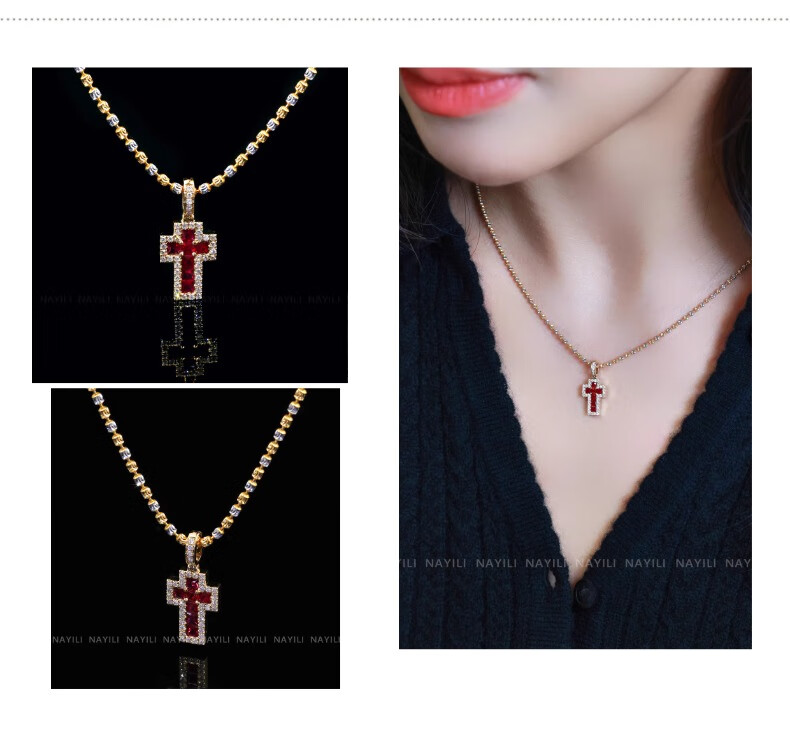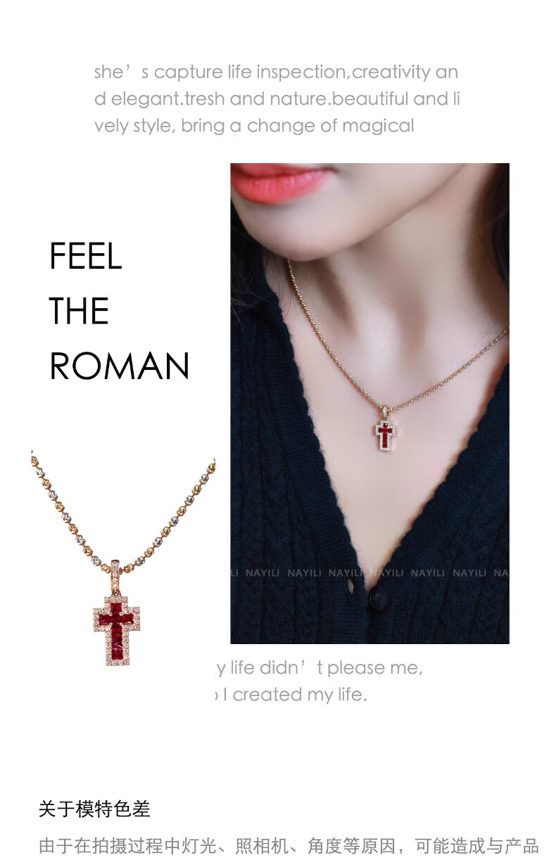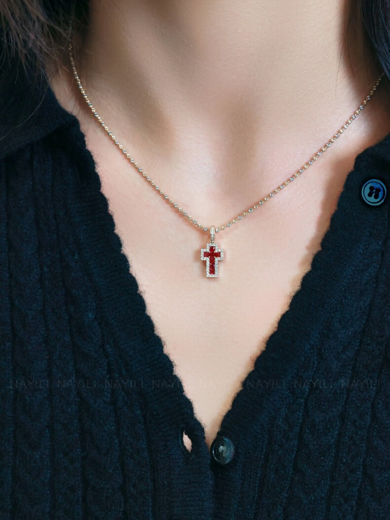 Orenchi Necklace for Women Pigeon Blood Ruby Diamond Necklace Luxury Jewelry Wedding Anniversary Birthday Gift for Wife Natural Ruby Cross Necklace China University of Geosciences Jewelry Testing Center