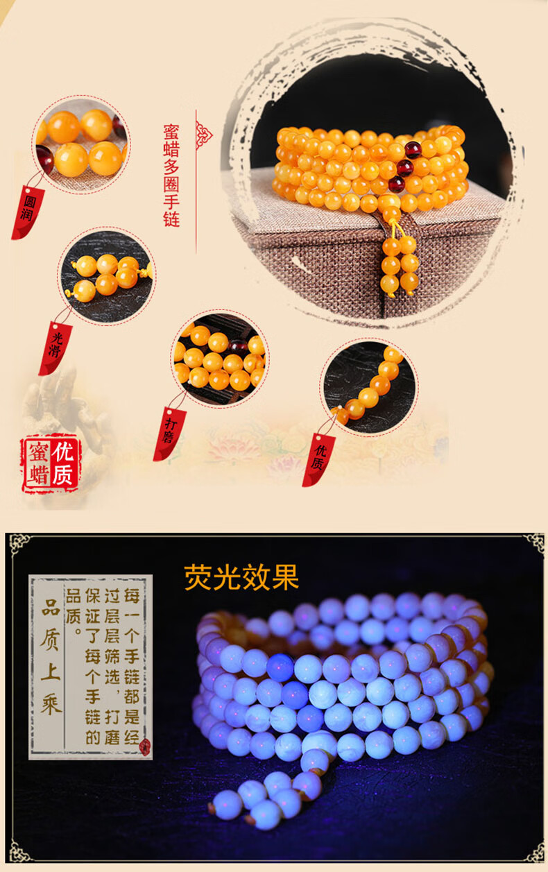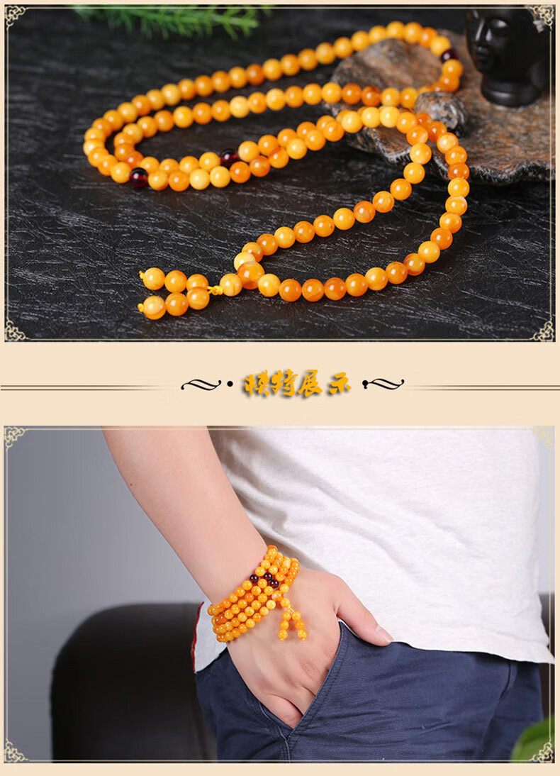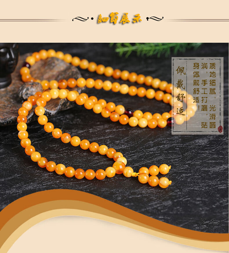 La Yun Feiyin Baltic Chicken Oil Yellow Beeswax Bracelet 108 Floating Flowers Old Beeswax Bracelet Amber Bracelet Collection Grade 6mm 108 Pieces (with Certificate)