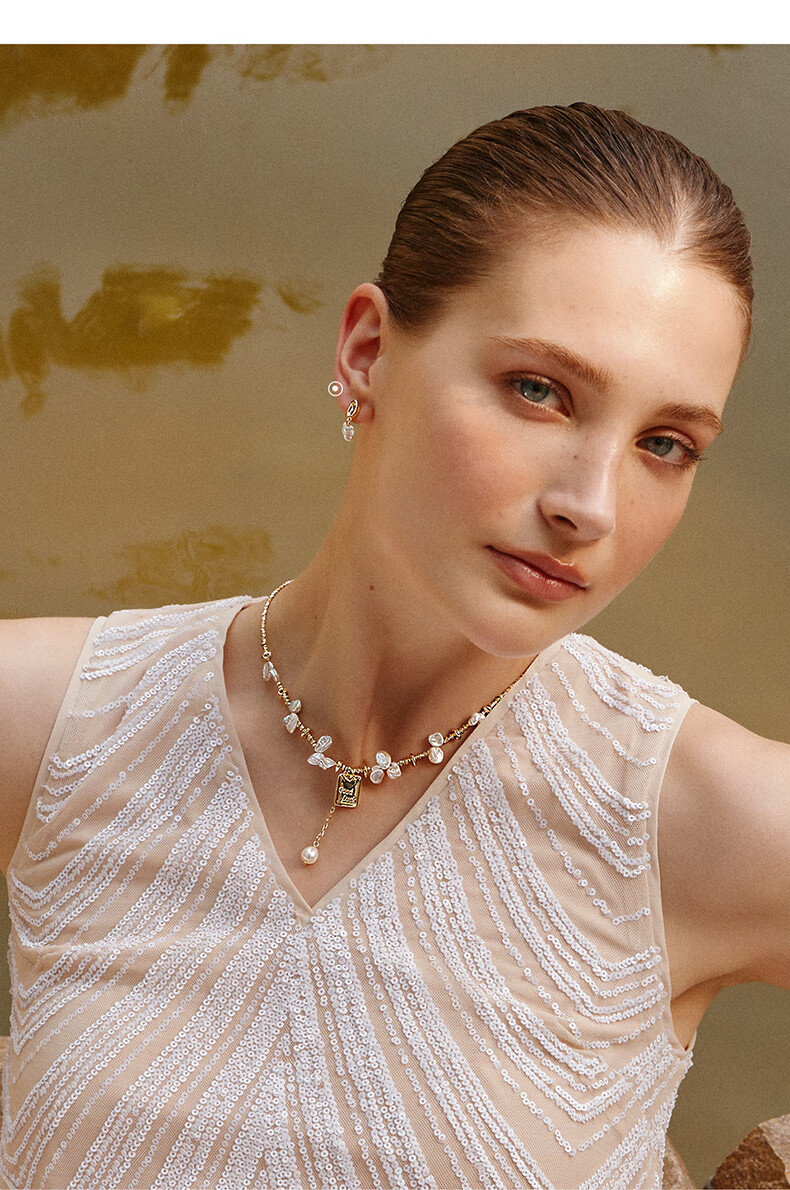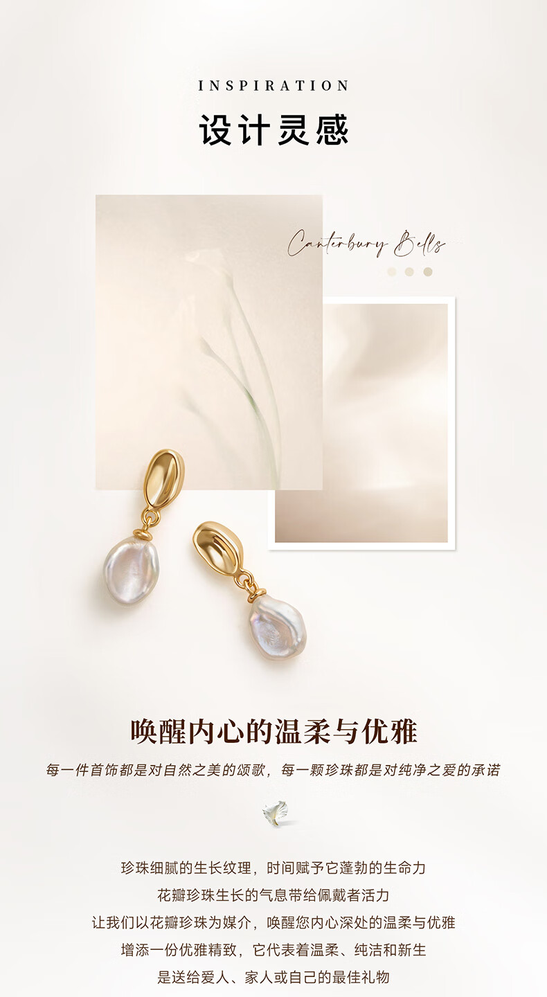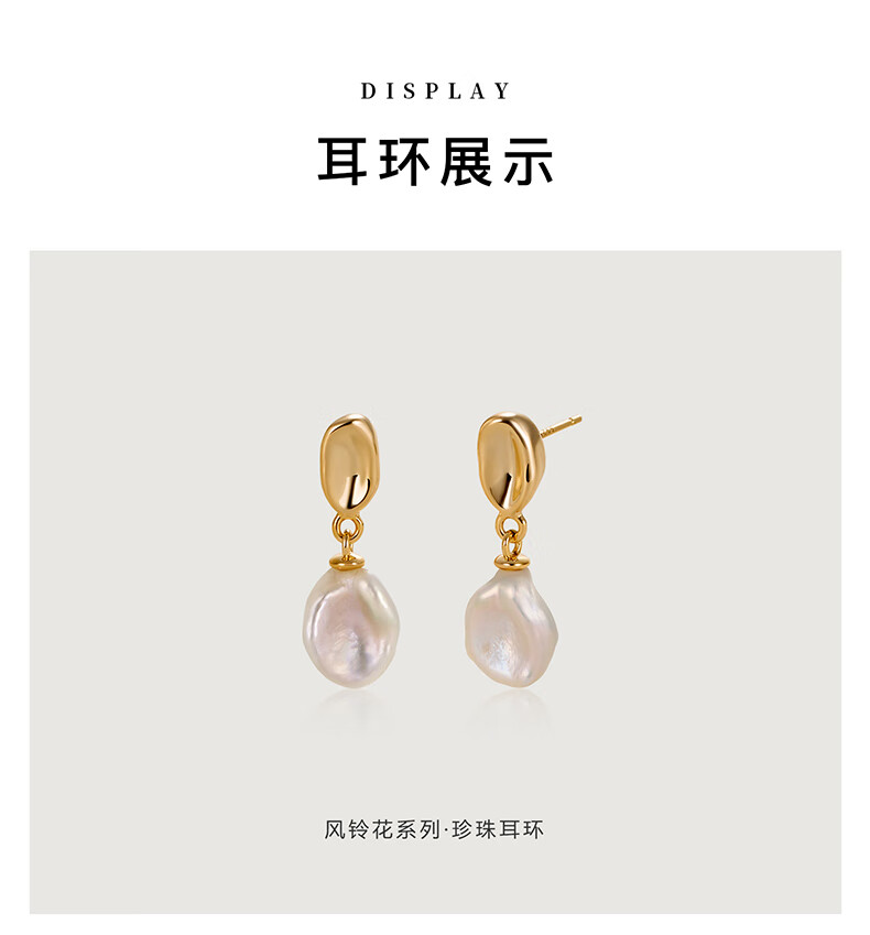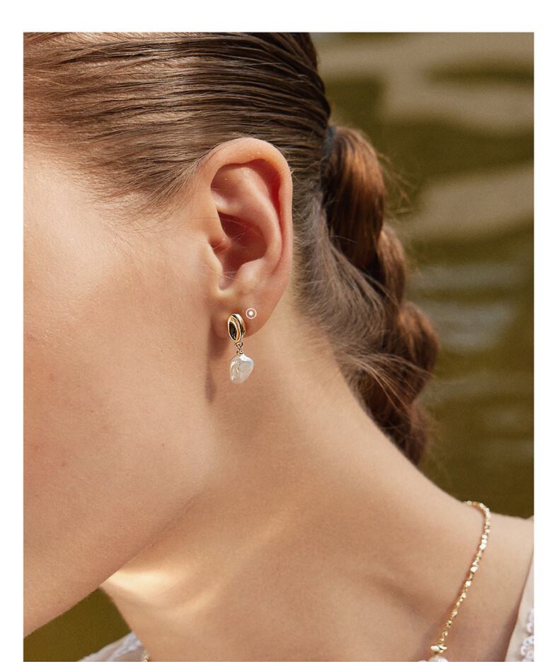 Amber Lollipop Wang Yuwen's same baroque pearl earrings for women, ear studs, anniversary birthday gifts for girlfriend and wife, gold-white petals