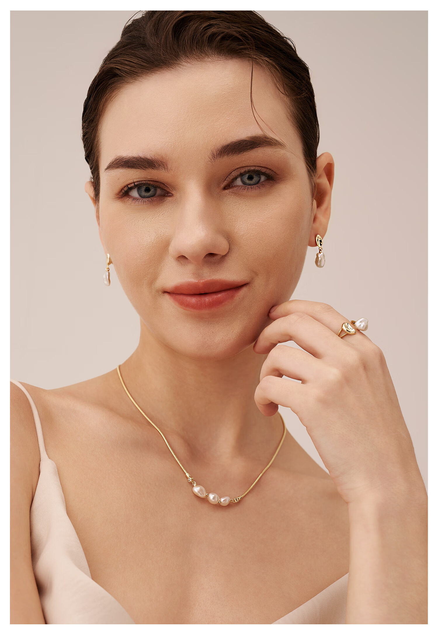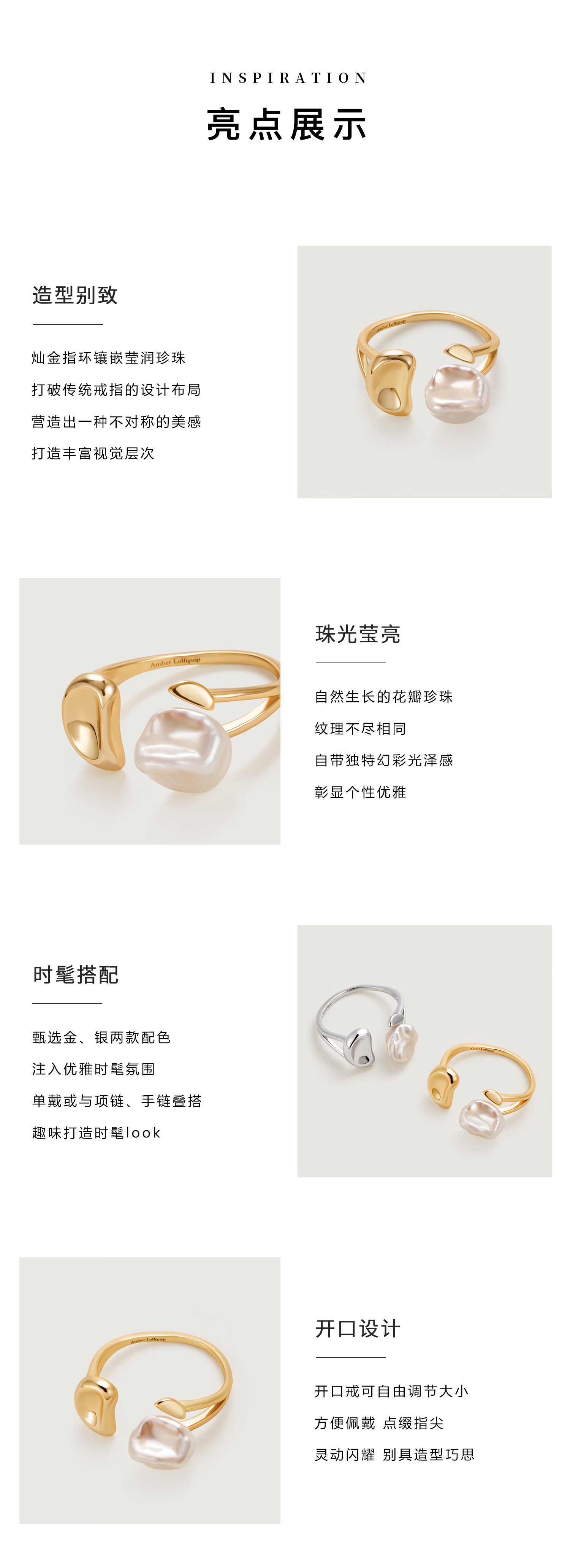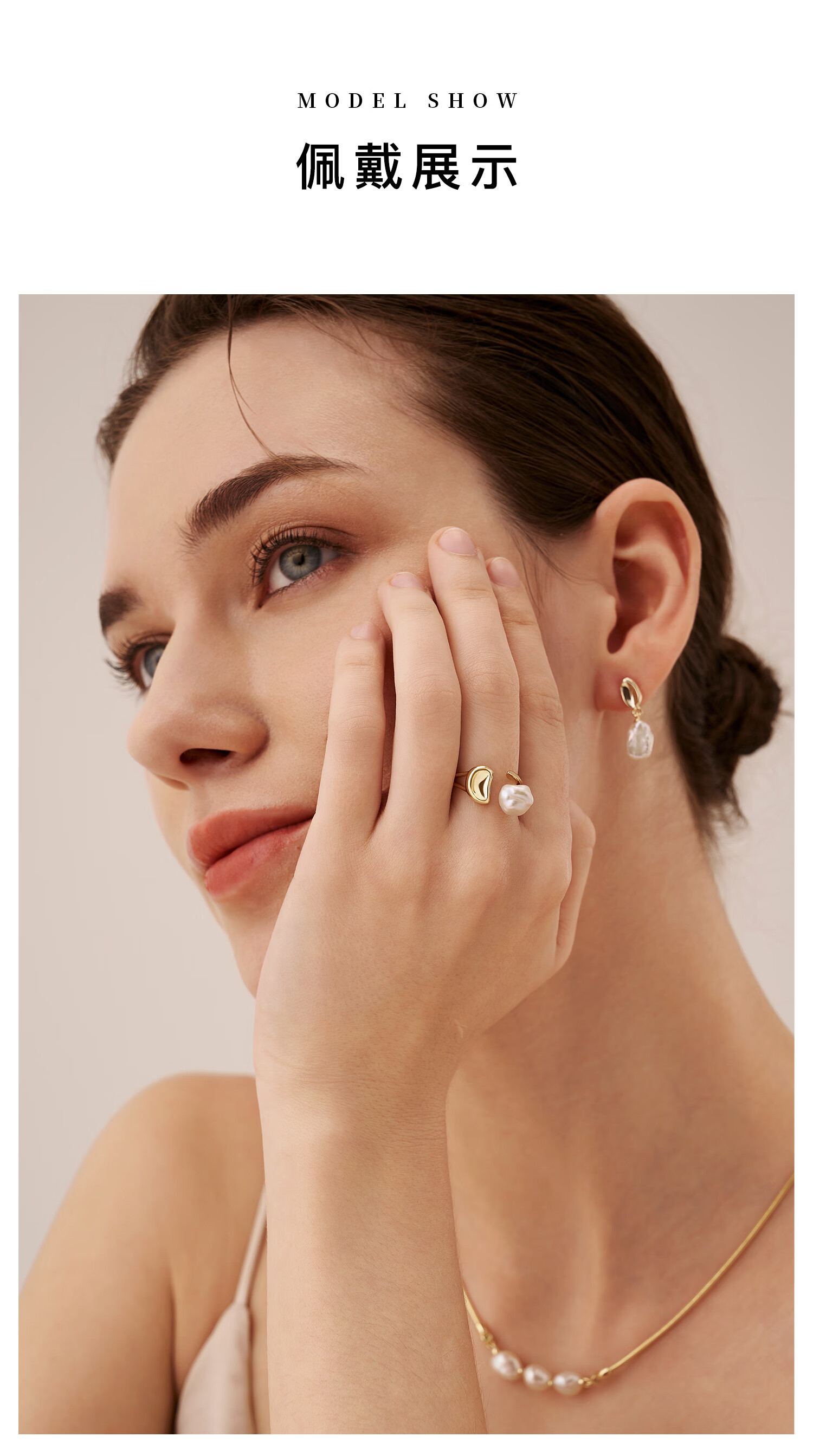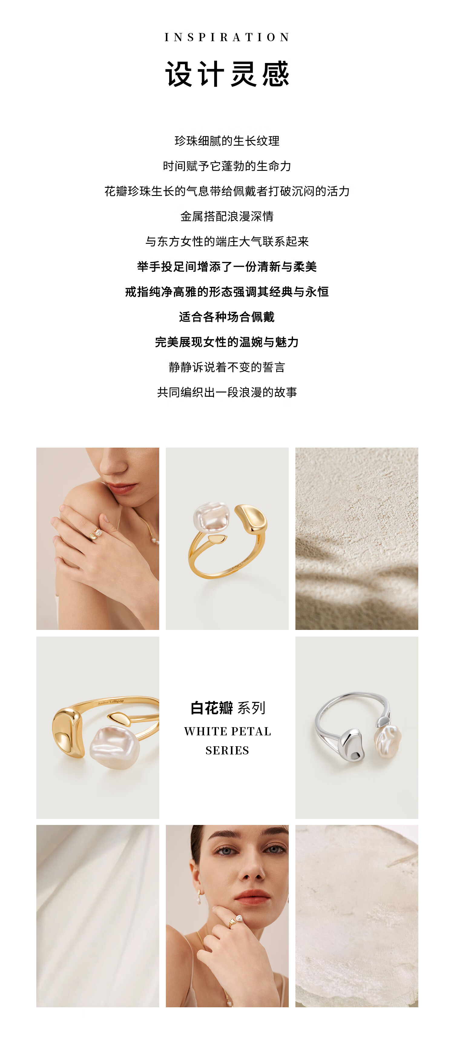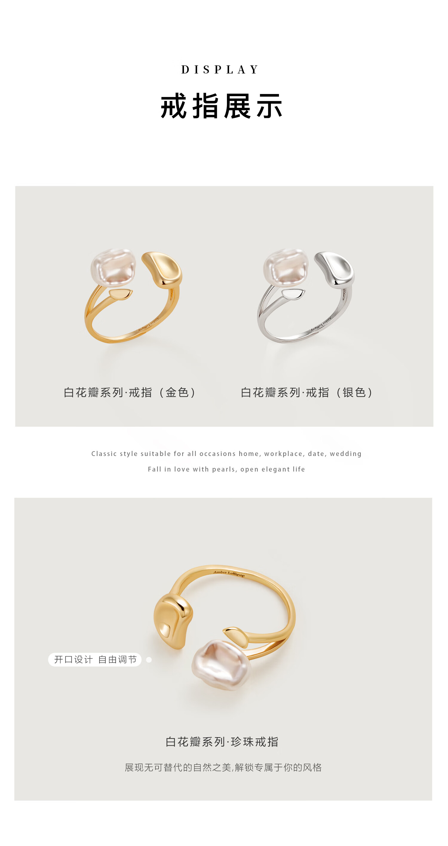 Amber Lollipop Baroque Pearl Ring Women's Niche Open Index Finger Ring Anniversary Birthday Gift for Girlfriend and Wife Gold-White Petals