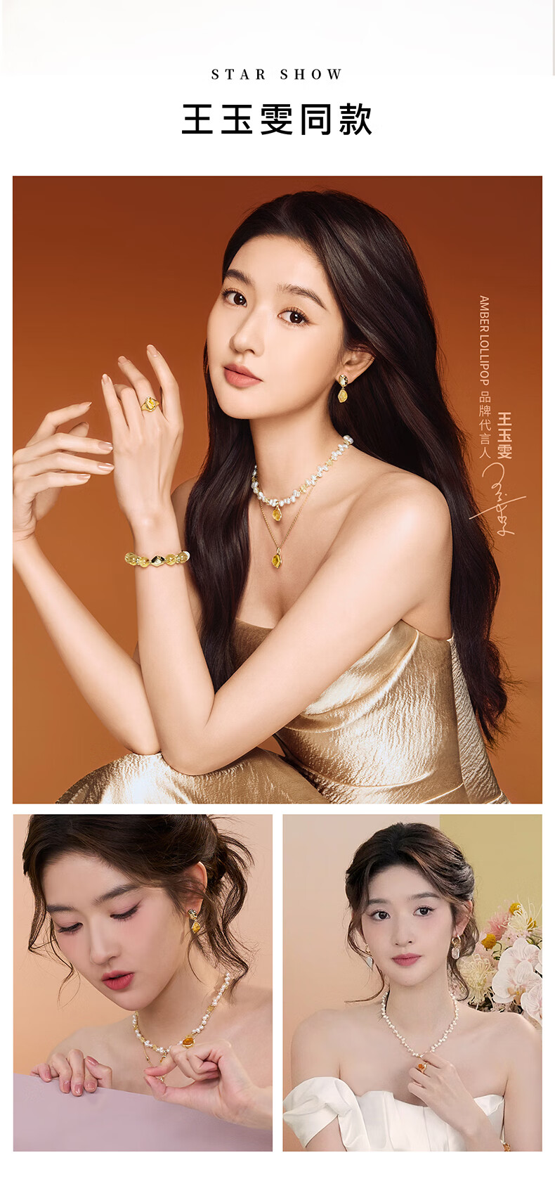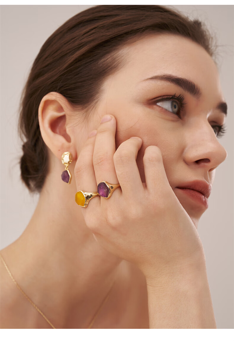 Amber Lollipop Wang Yuwen's same style amethyst ring women's open index finger ring anniversary birthday gift for girlfriend and wife yellow (liuguangzhijing series)