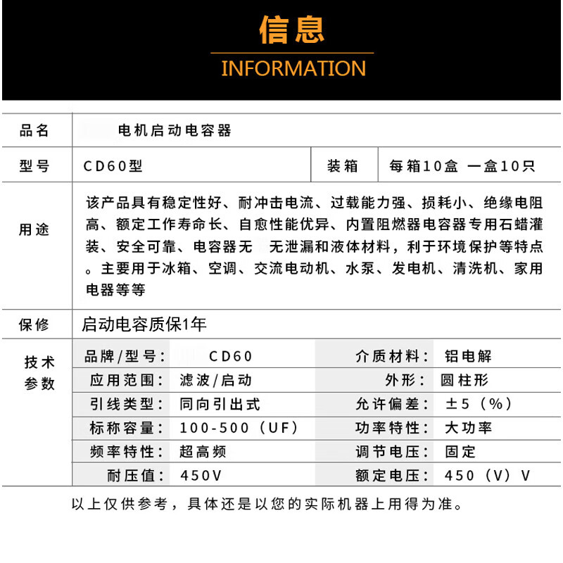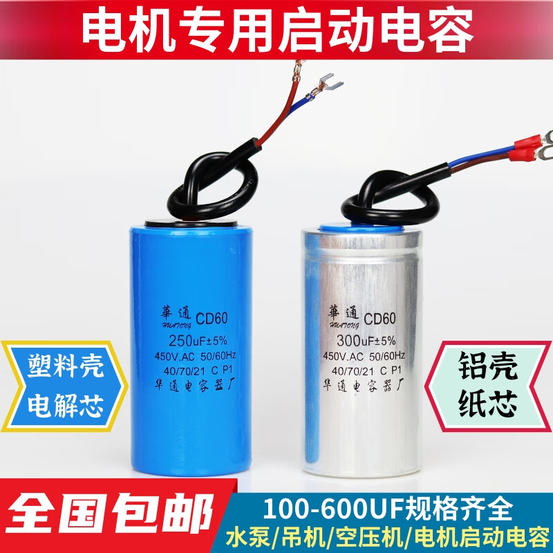 Cd60 motor starting capacitor 200/300/400/450/500uf single-phase motor water pump mixer capacitor 250UF-plastic case one