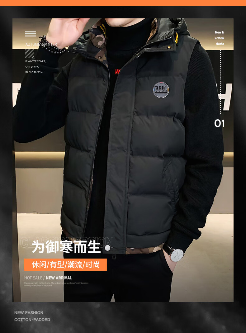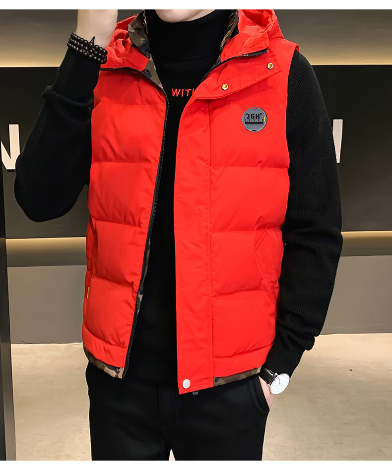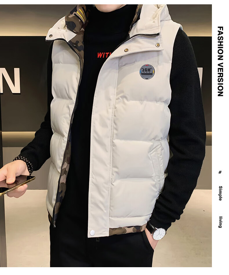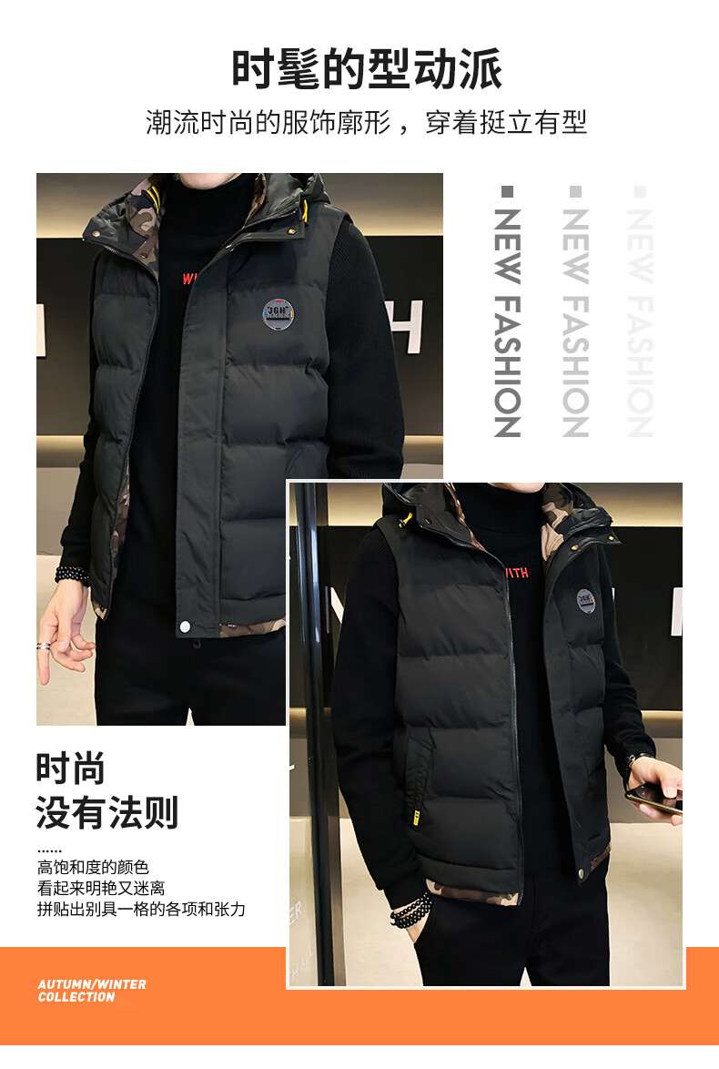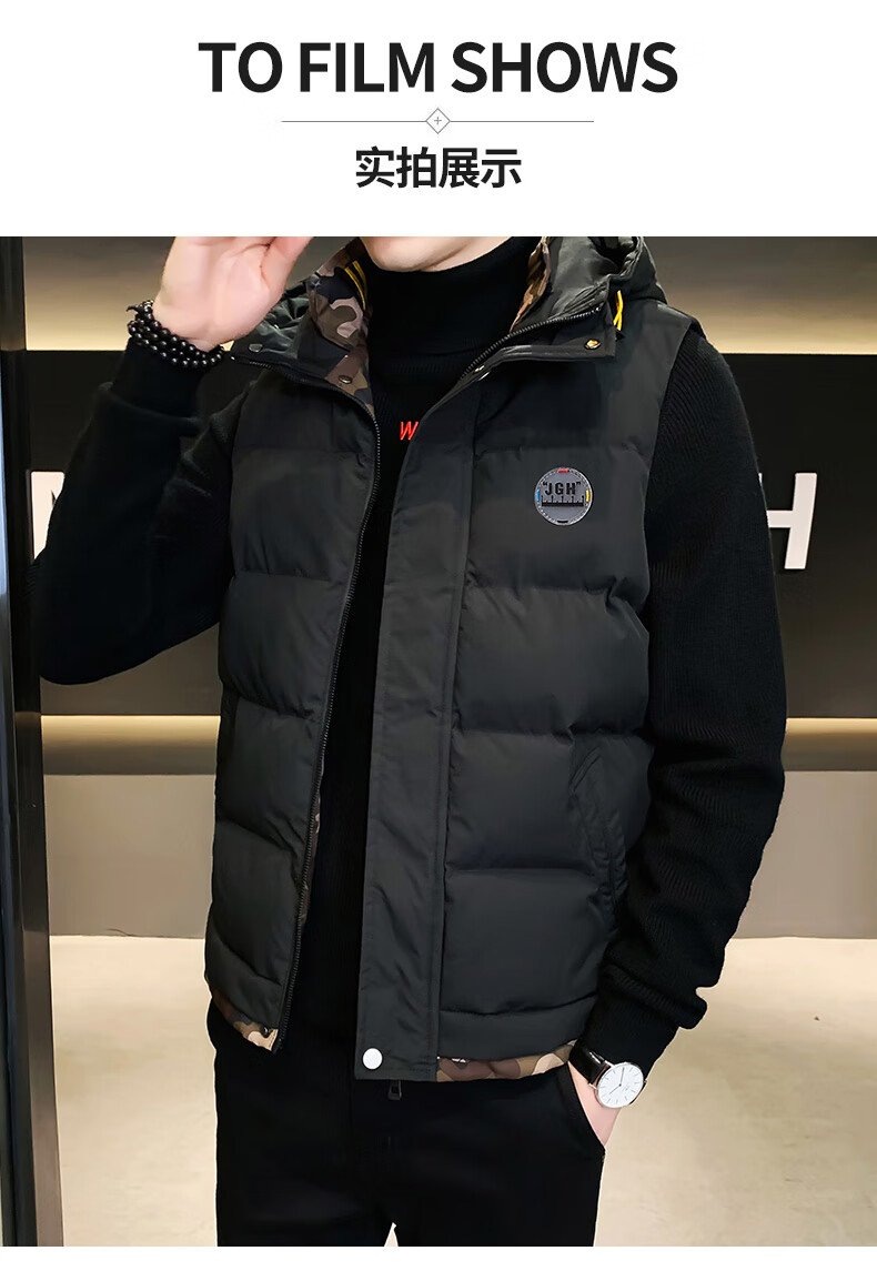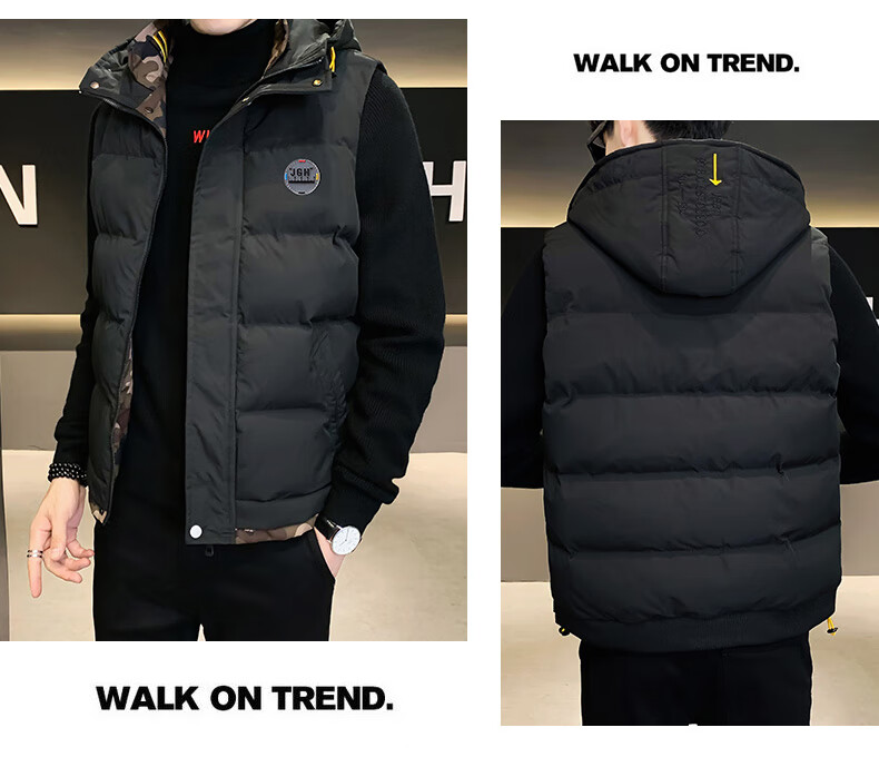 Scarecrow down cotton vest men's autumn and winter new warm jacket plus velvet thickened cotton coat outer sleeveless waistcoat vest 1906 black 2XL