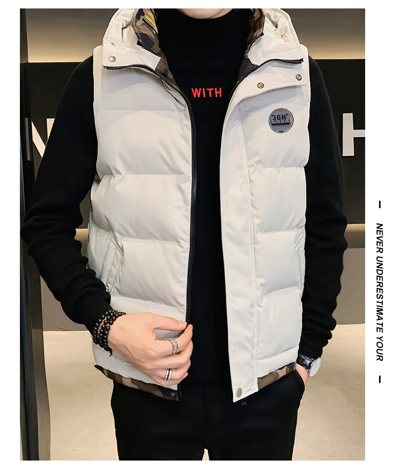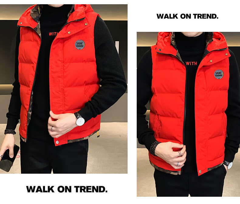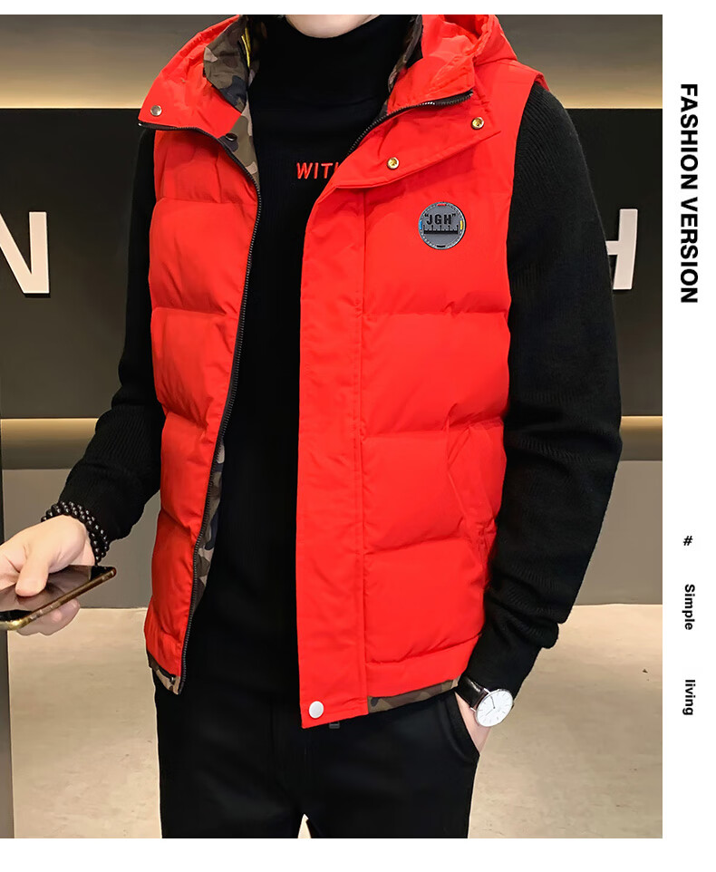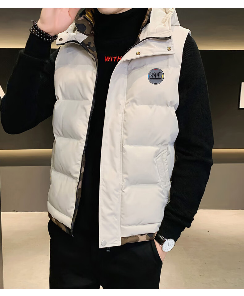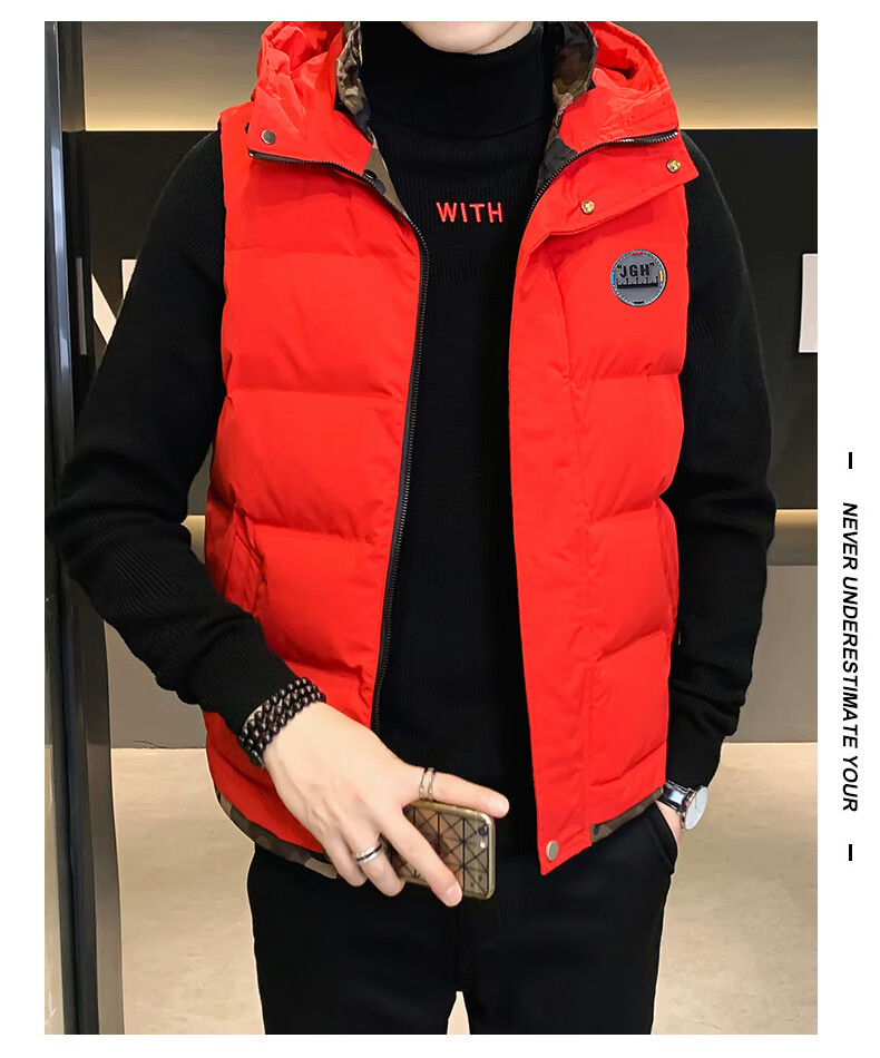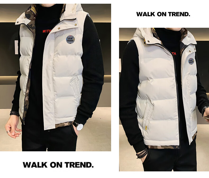 Scarecrow down cotton vest men's autumn and winter new warm jacket plus velvet thickened cotton coat outer sleeveless waistcoat vest 1906 black 2XL