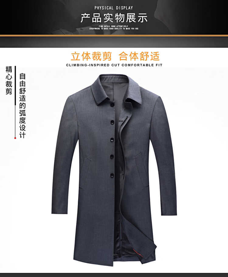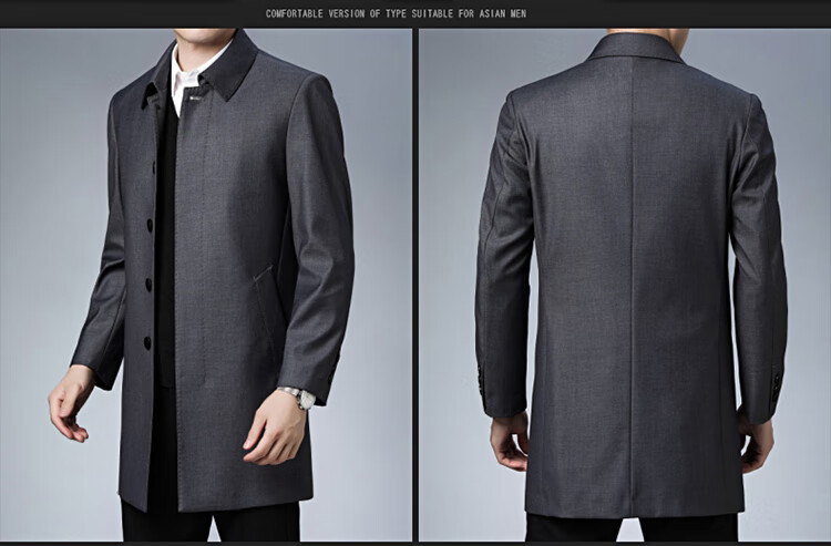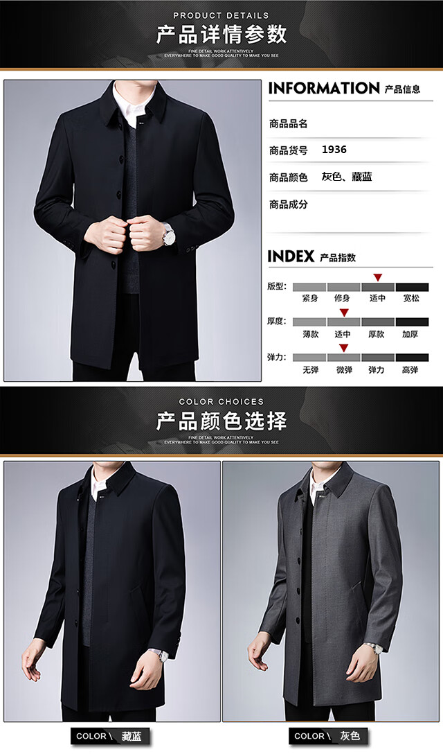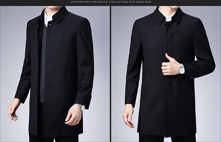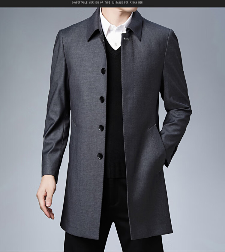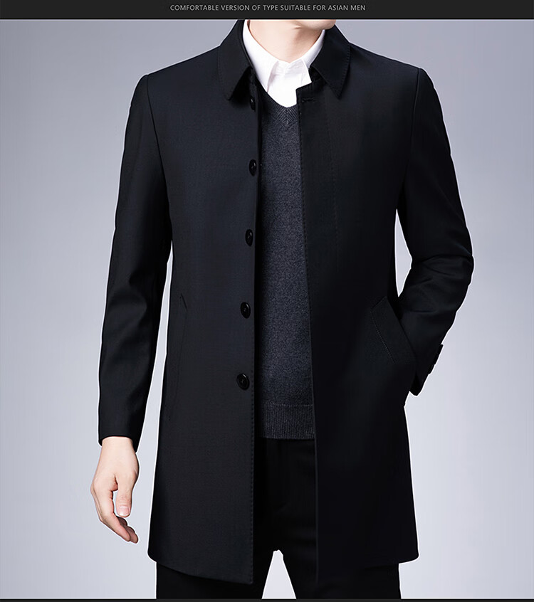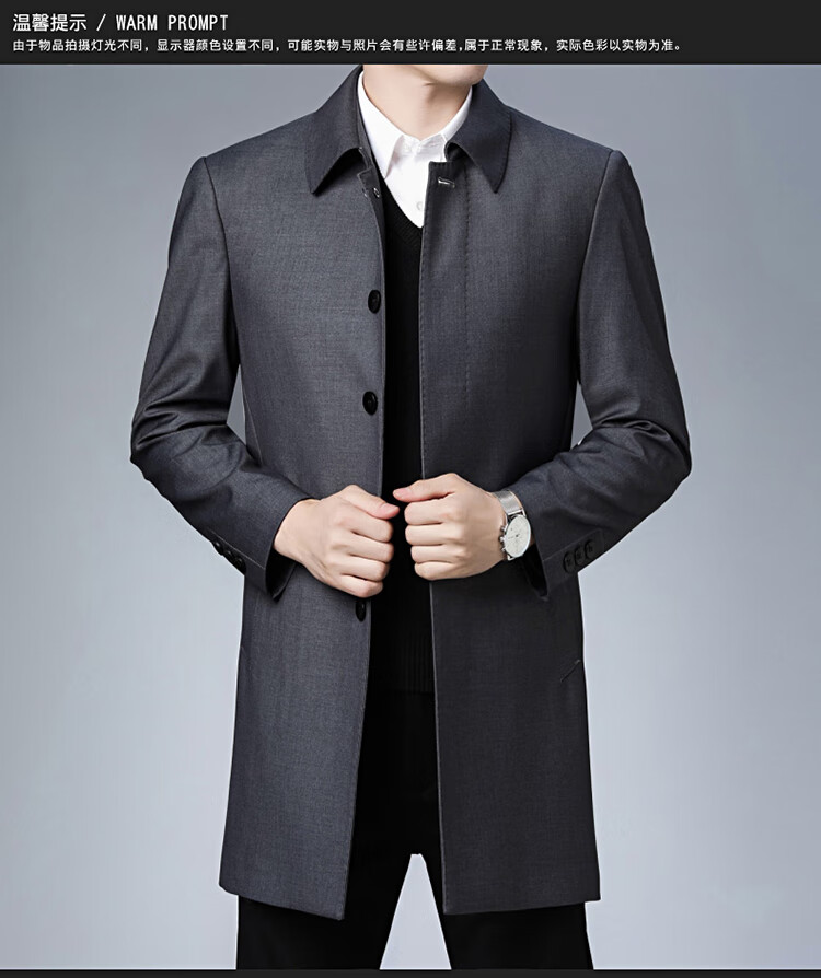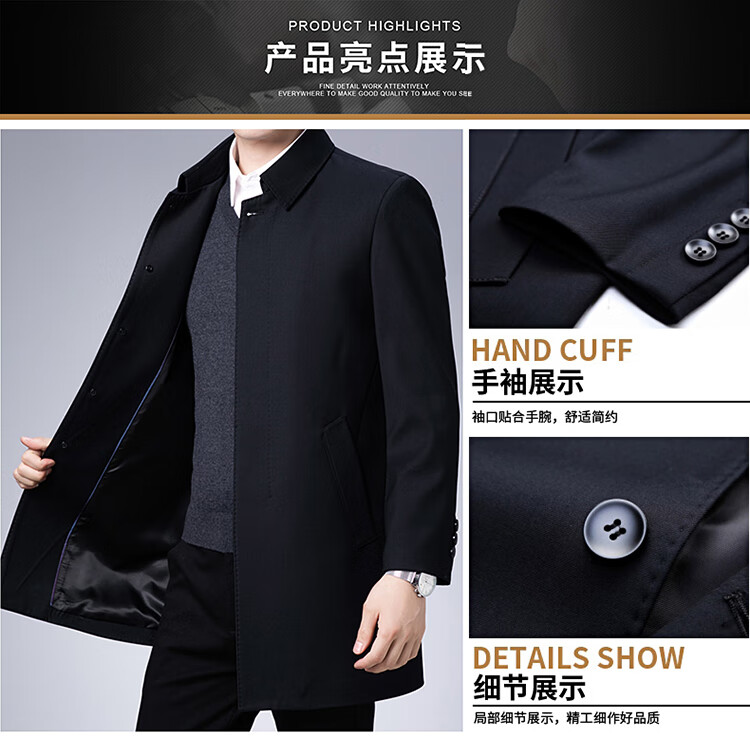 ROMON high-end executive windbreaker men's mid-length 2025 new autumn and winter middle-aged and elderly dad's business casual large size jacket for men Navy R1936 XL (175)