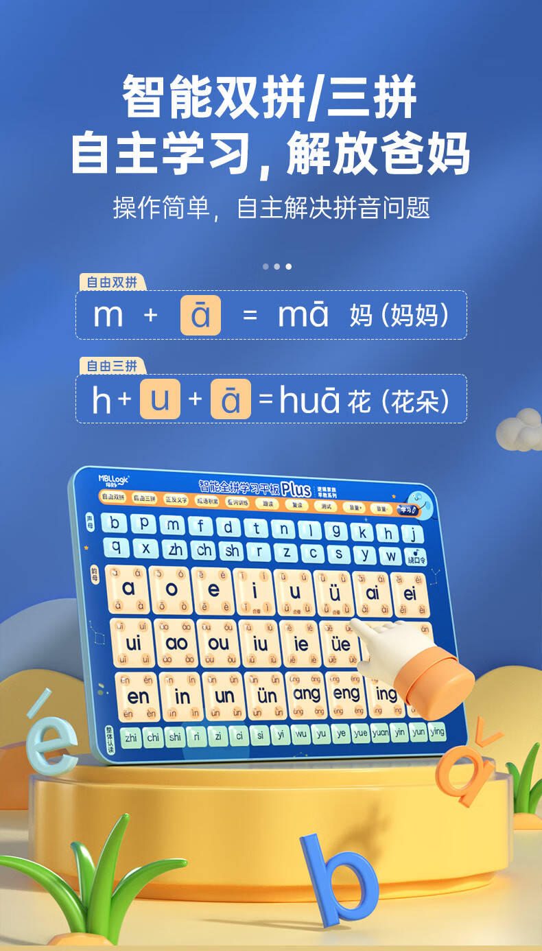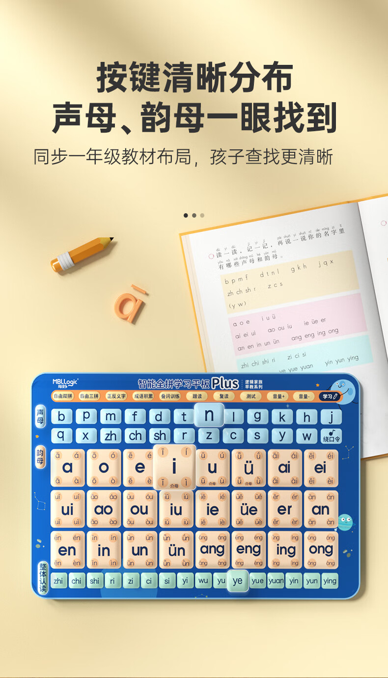 Mi Yan's first-grade Chinese Pinyin spelling training point reading machine audio book for young children to connect with audio flipchart learning machine. Store manager recommends smart pinyin learning tablet plus (one-button four tones)