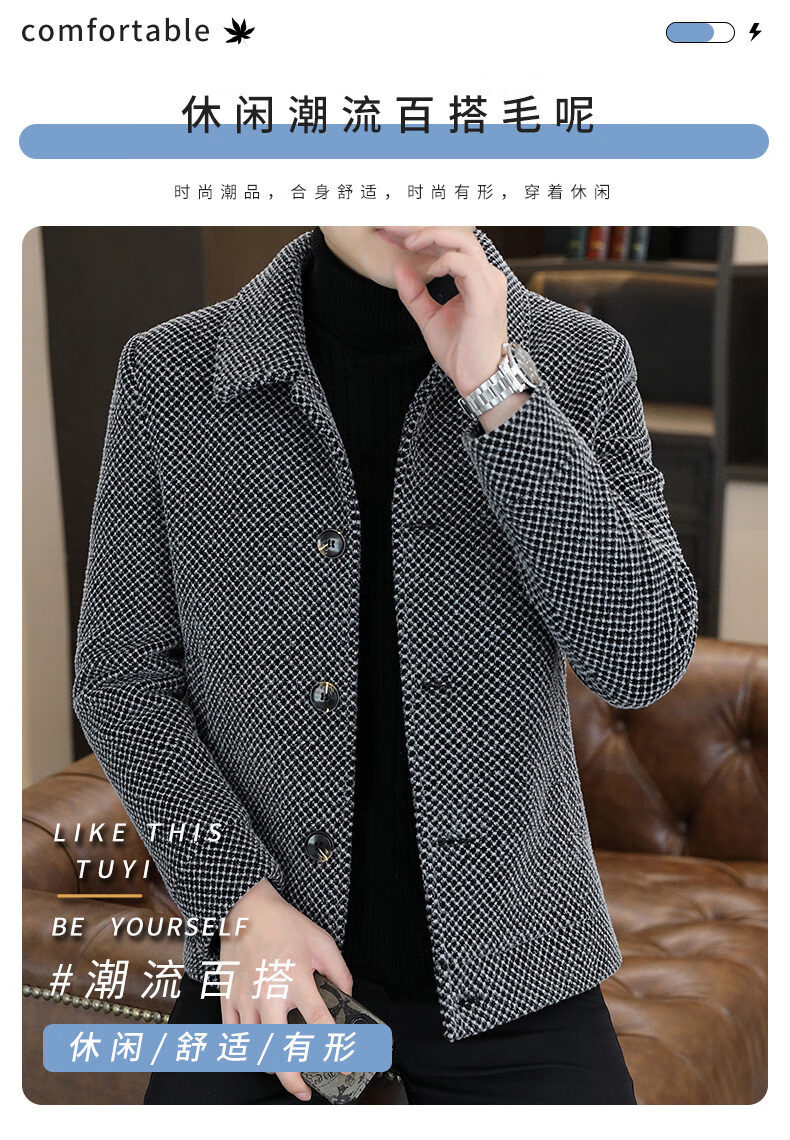 Pierre Cardin (pierre cardin) high-end woolen coat men's autumn and winter new lapel cotton thickened clothes winter casual jacket men's jacket light gray cotton thickened L recommended 110-125Jin Jin equals 0.5 kg