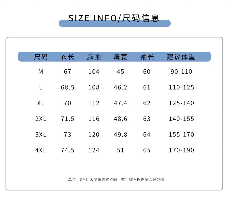 China (cm) 165 / 88-90 170 / 96-98 175 / 108-110 180 / 118-122 185 / 126-130