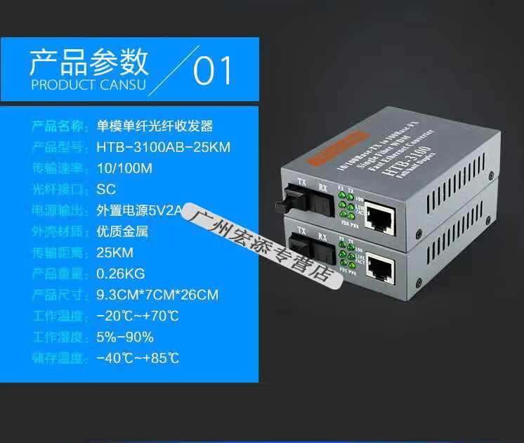 Optical fiber transceiver 100M single mode single fiber 3100AB25KM photoelectric converter pair 100M single fiber 3100AB 25KM pair