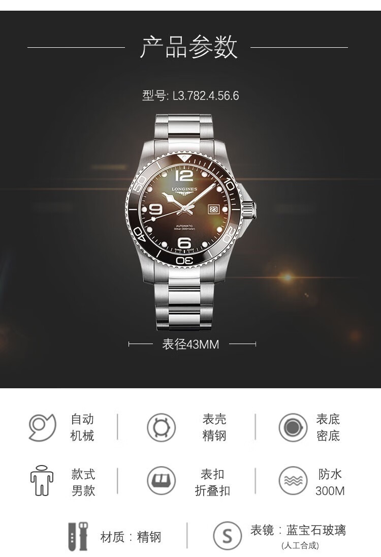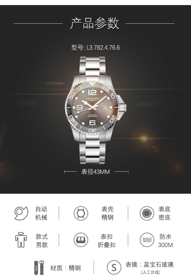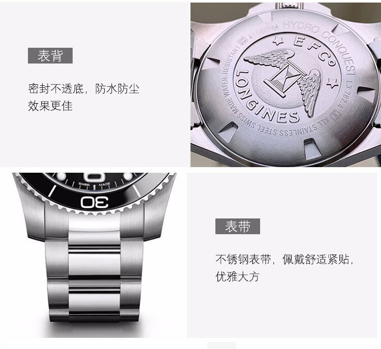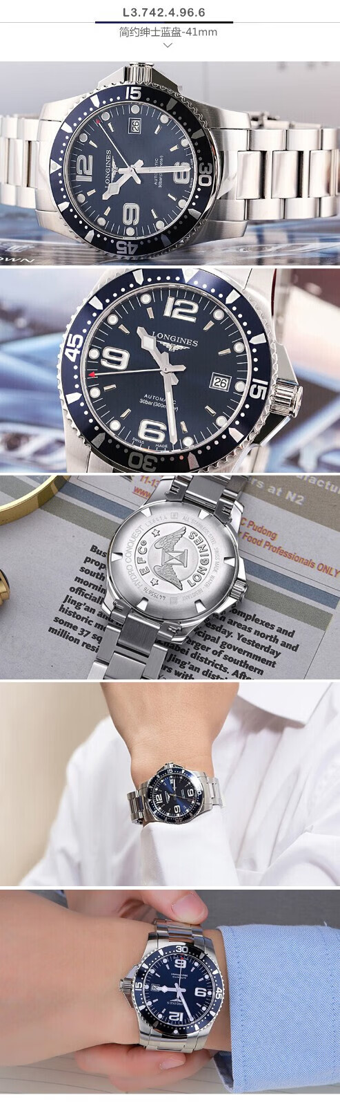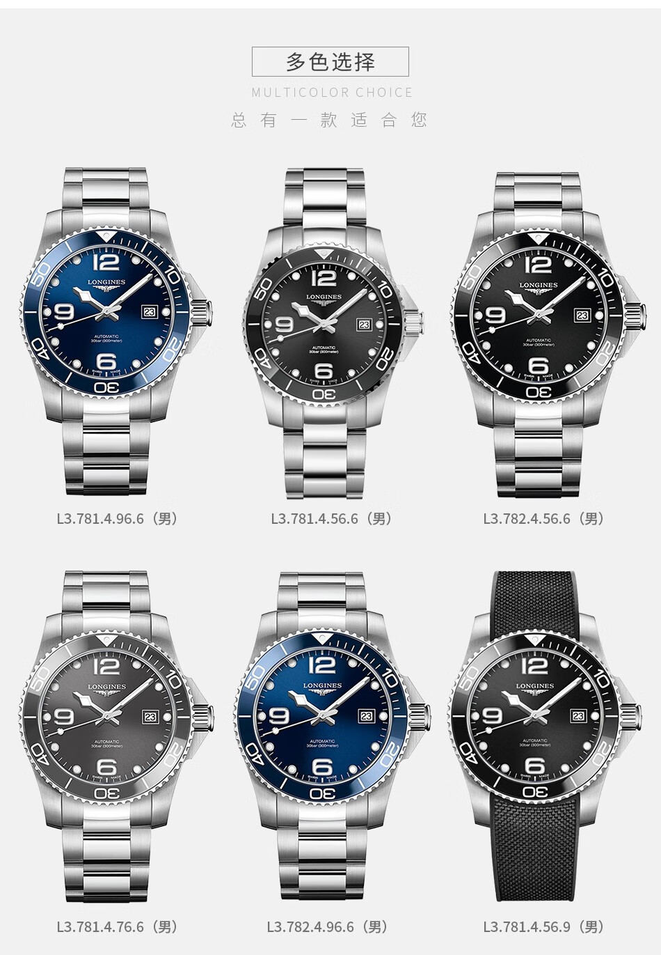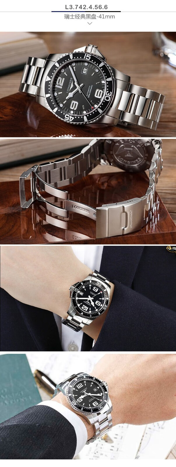 Longines (LONGINES) men's watch Concas series automatic mechanical watch men's Swiss 300m waterproof men's watch L3.742.4.56.6 mechanical steel belt black plate 41MM