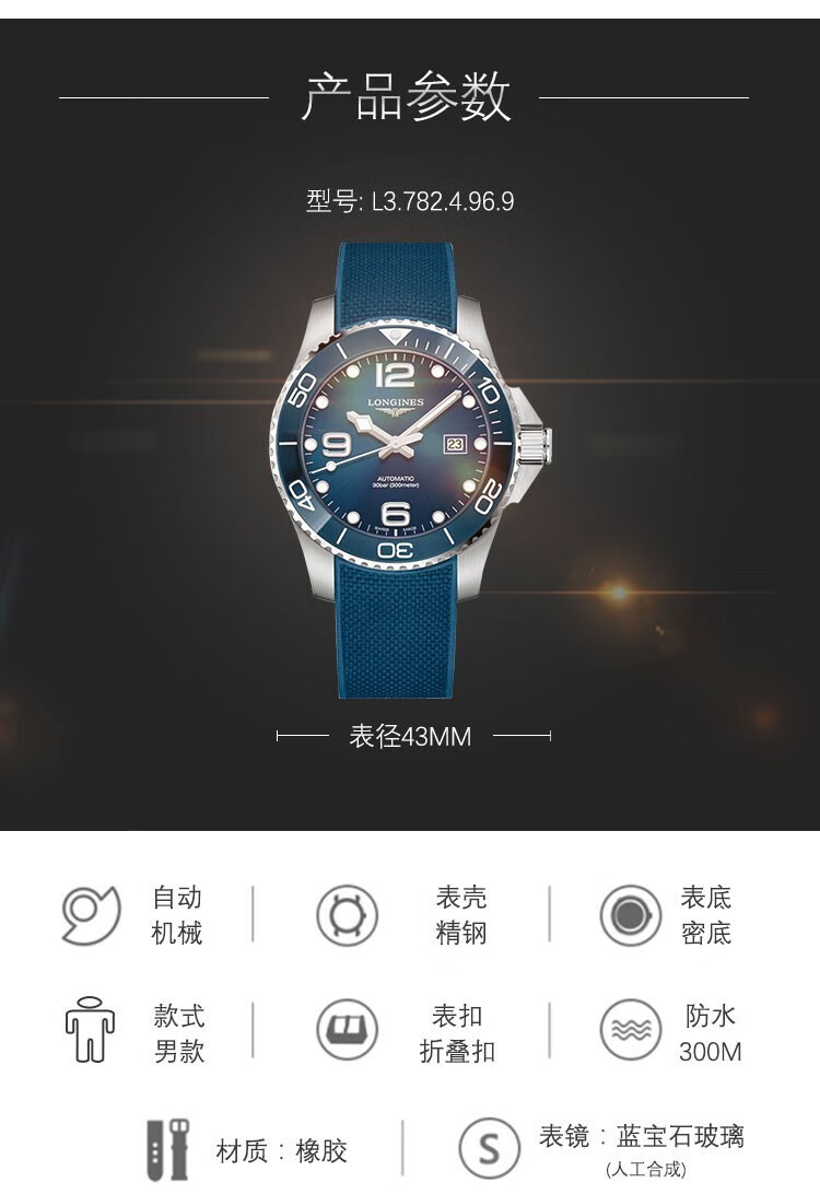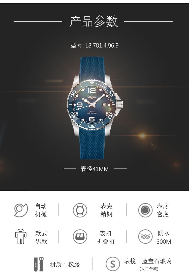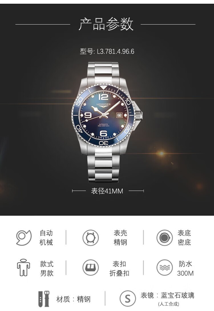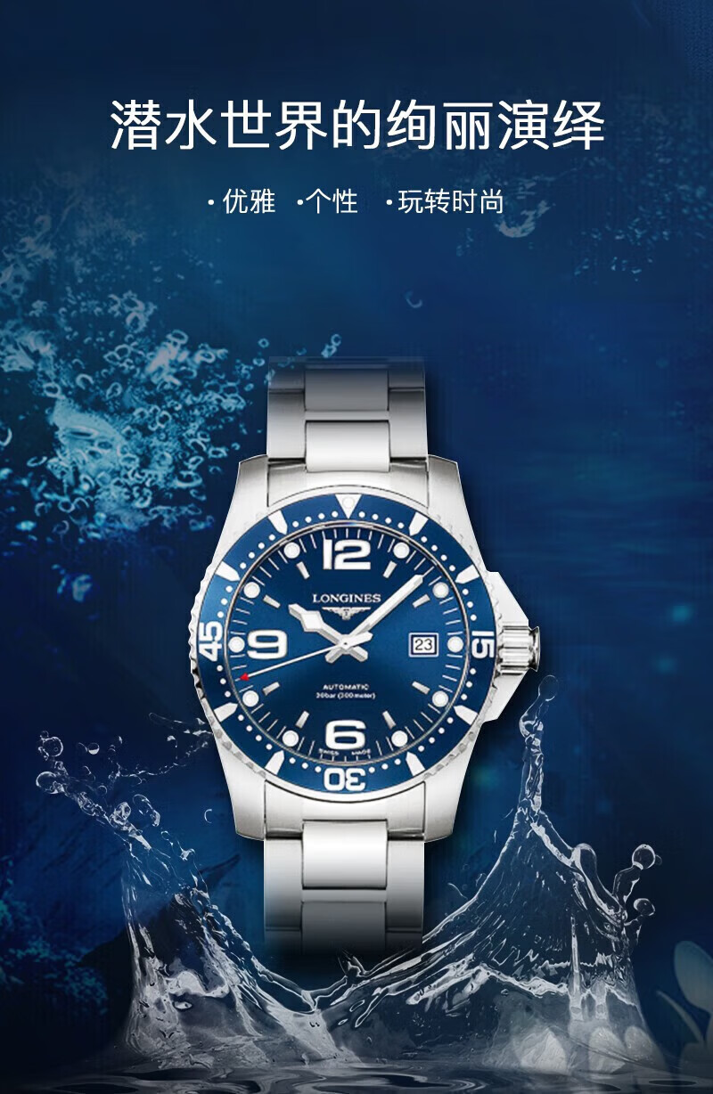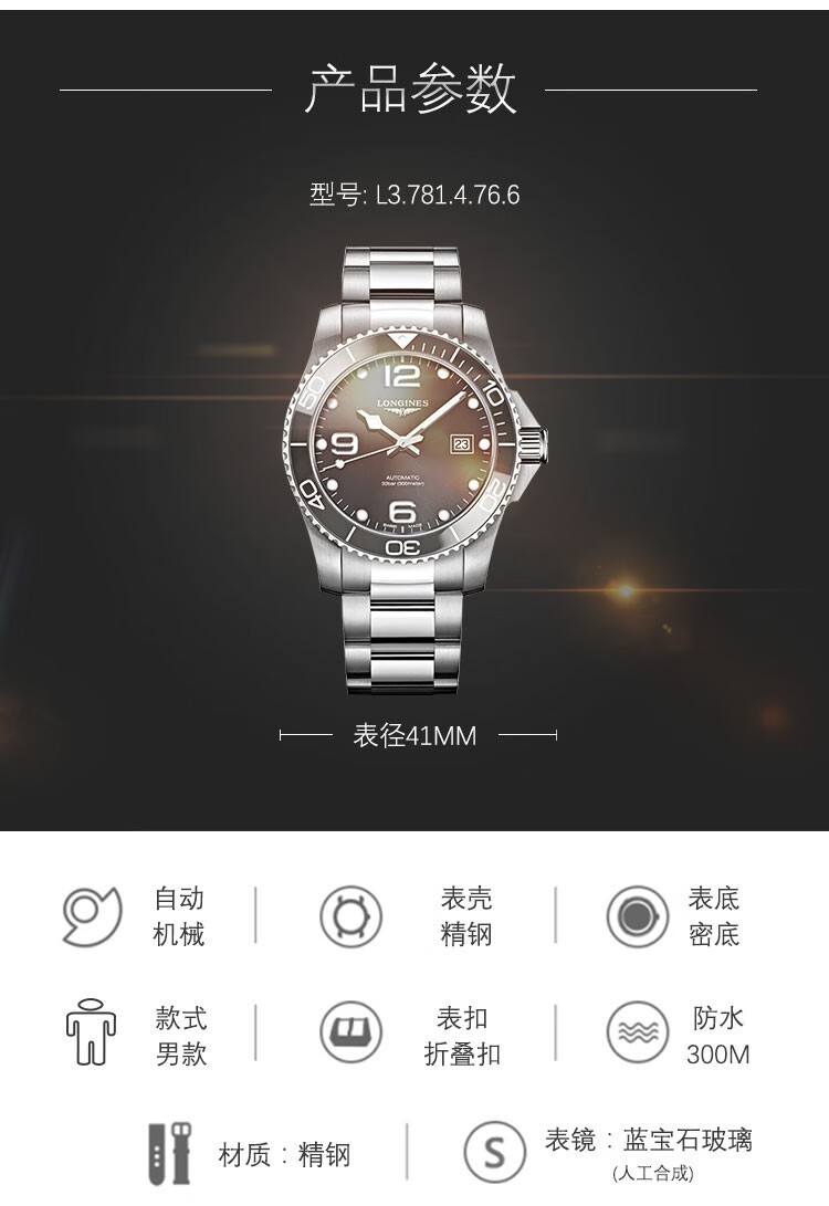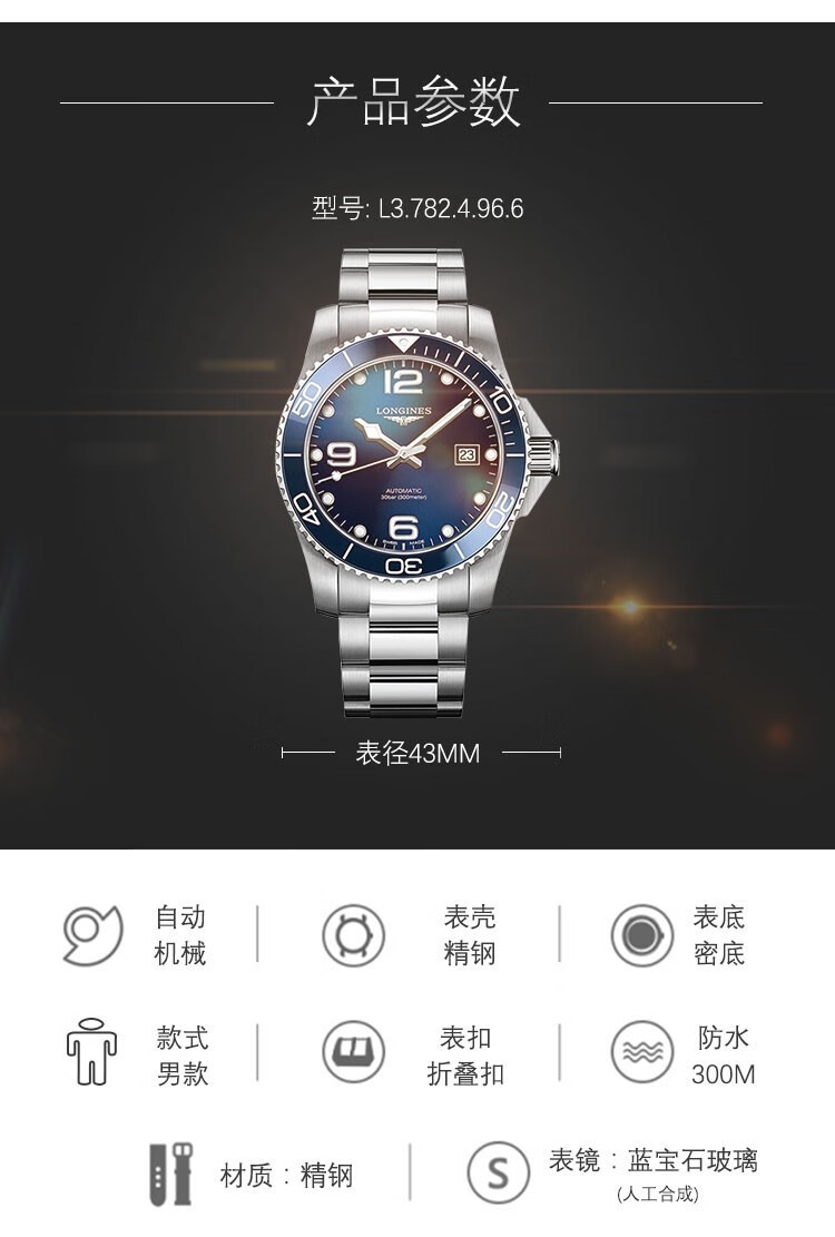 Longines (LONGINES) men's watch Concas series automatic mechanical watch men's Swiss 300m waterproof men's watch L3.742.4.56.6 mechanical steel belt black plate 41MM