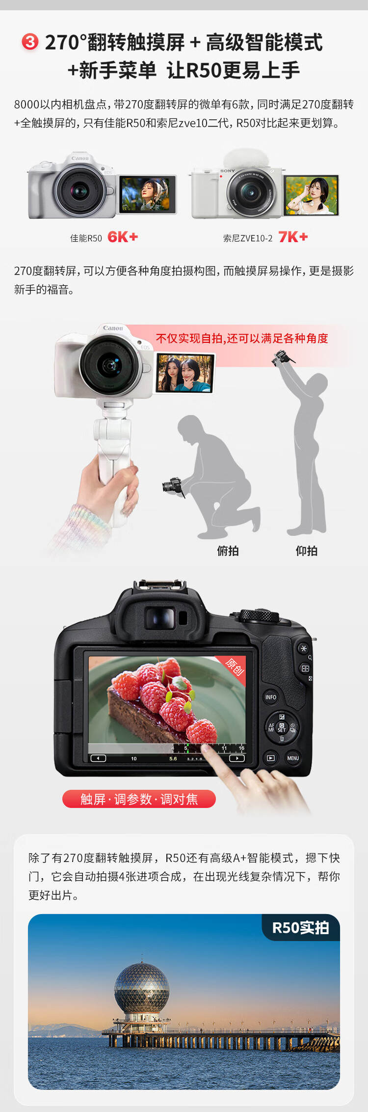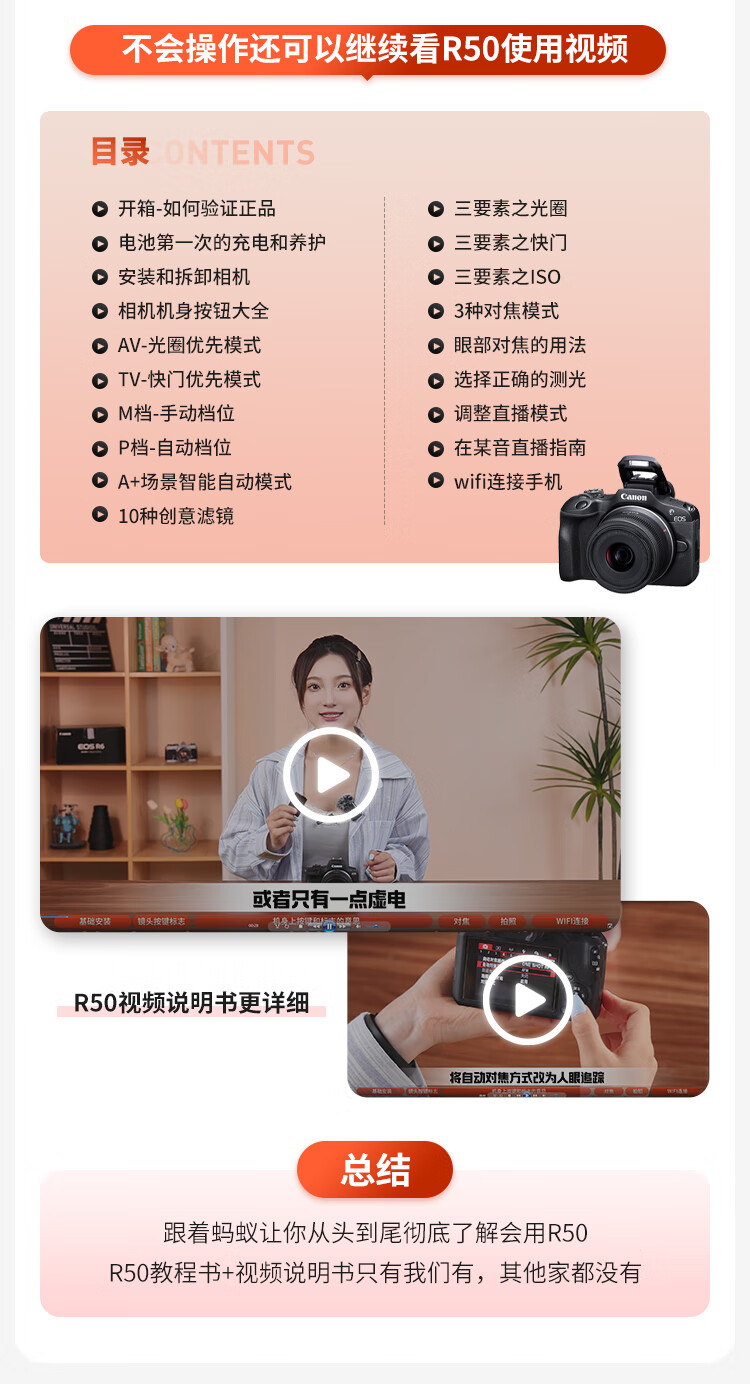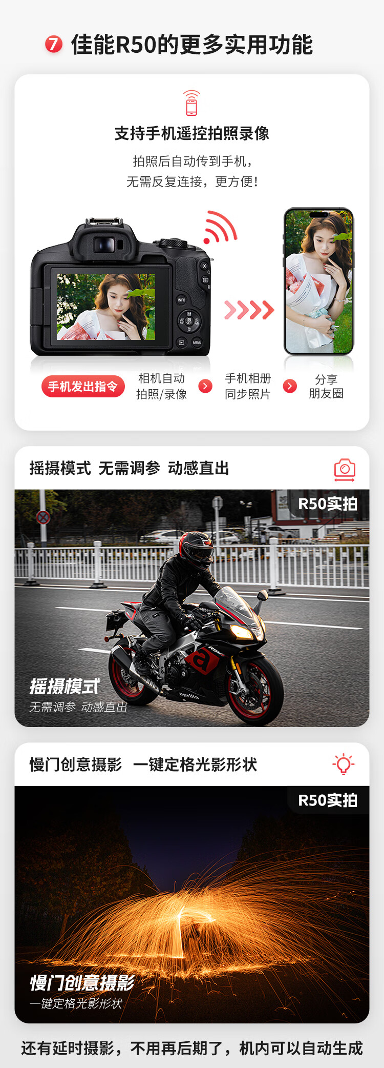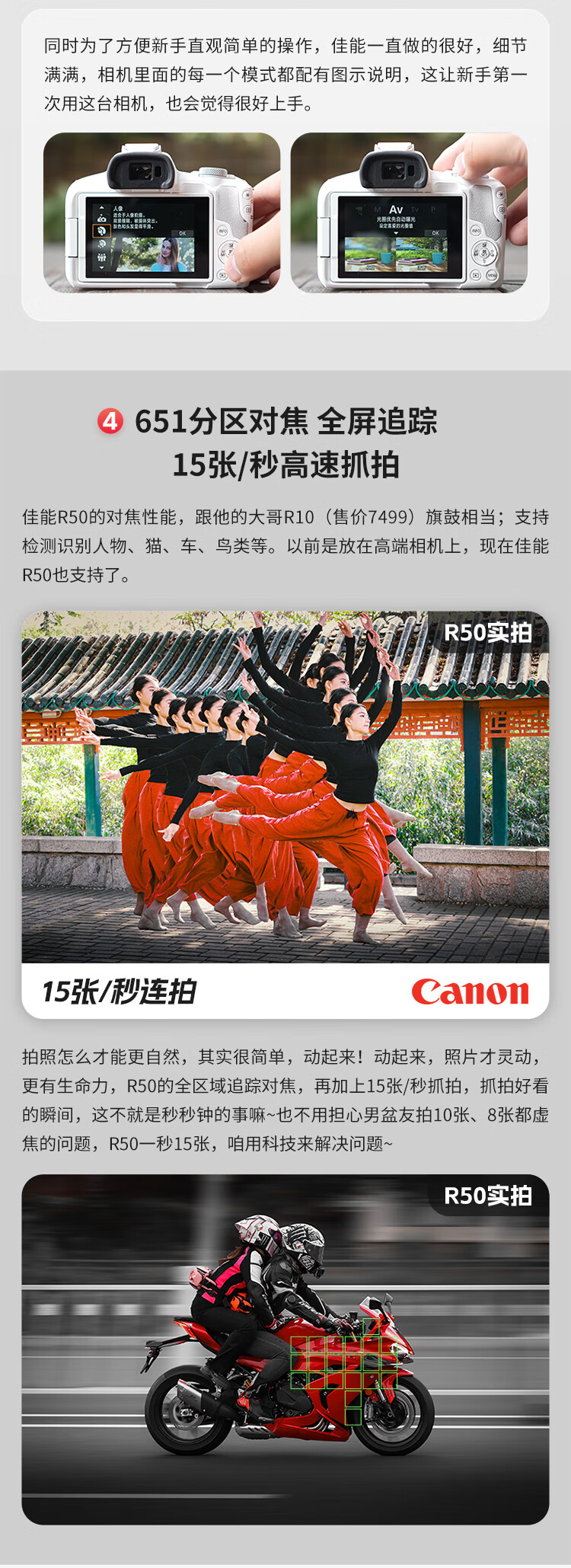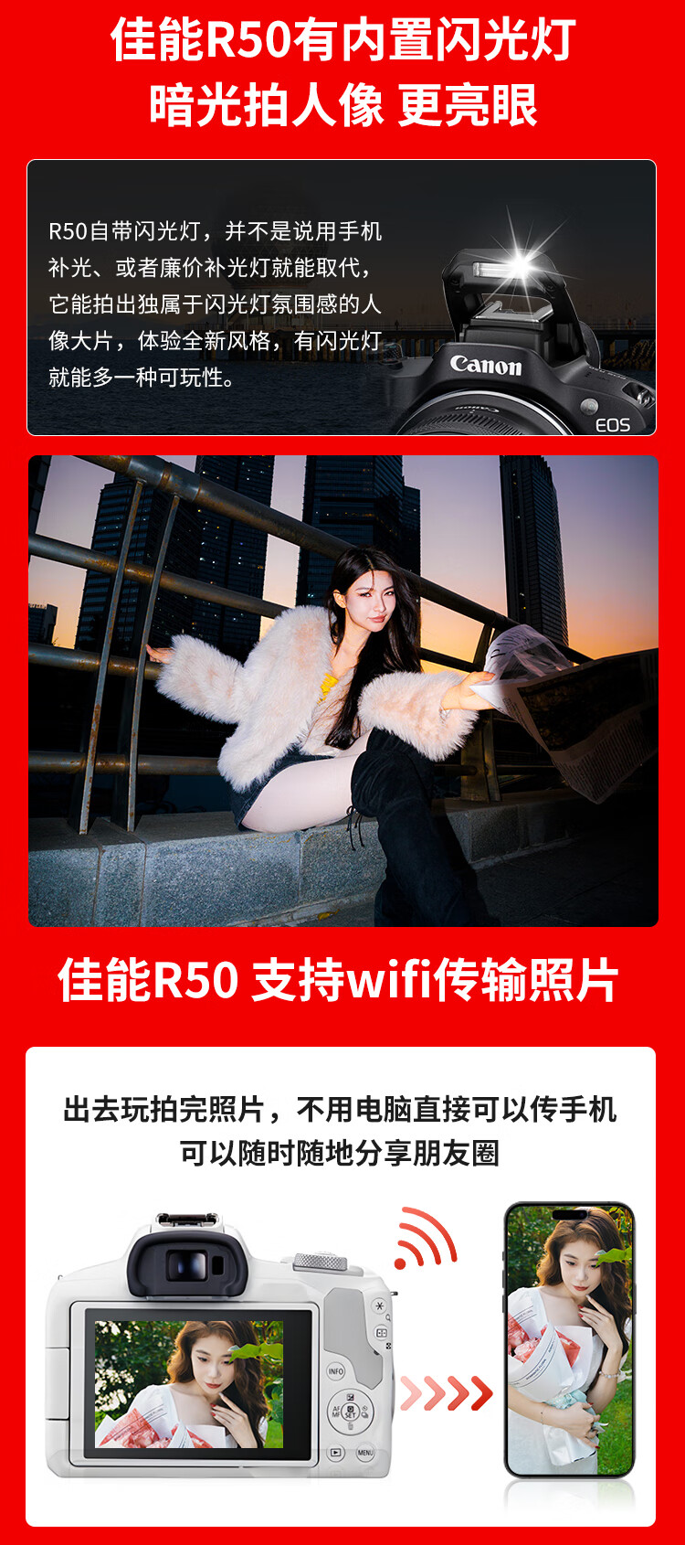 Canon Canon r50 mirrorless camera entry-level half-frame compact and portable travel home student 4k vlog video Canon r50 Canon camera r50 white R50 kit RF-S18-45 lens package one basic accessories/card/camera bag/R50 tutorial