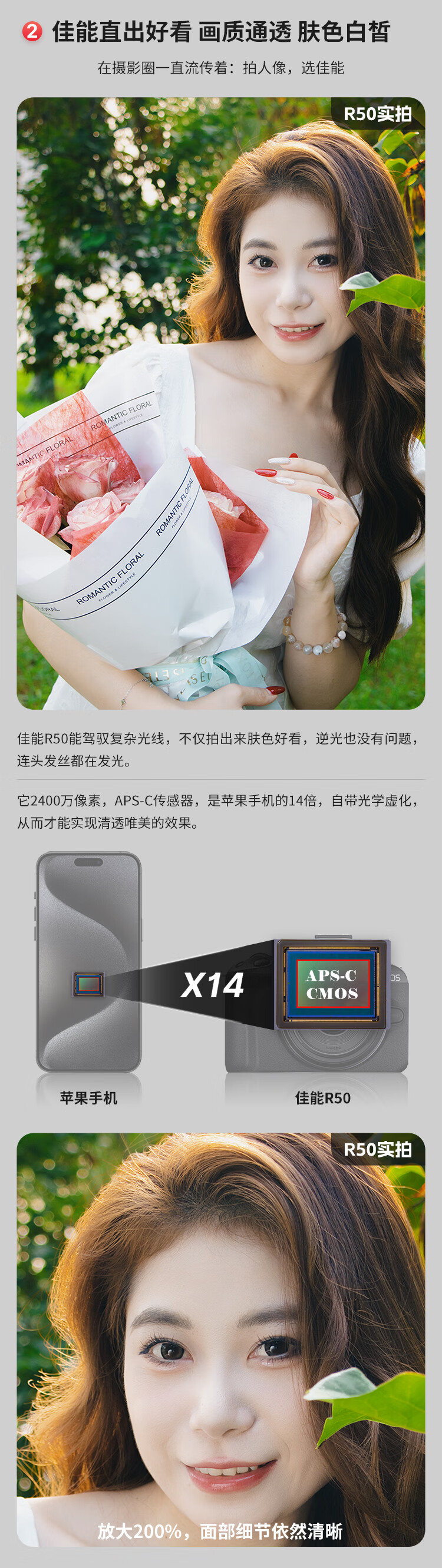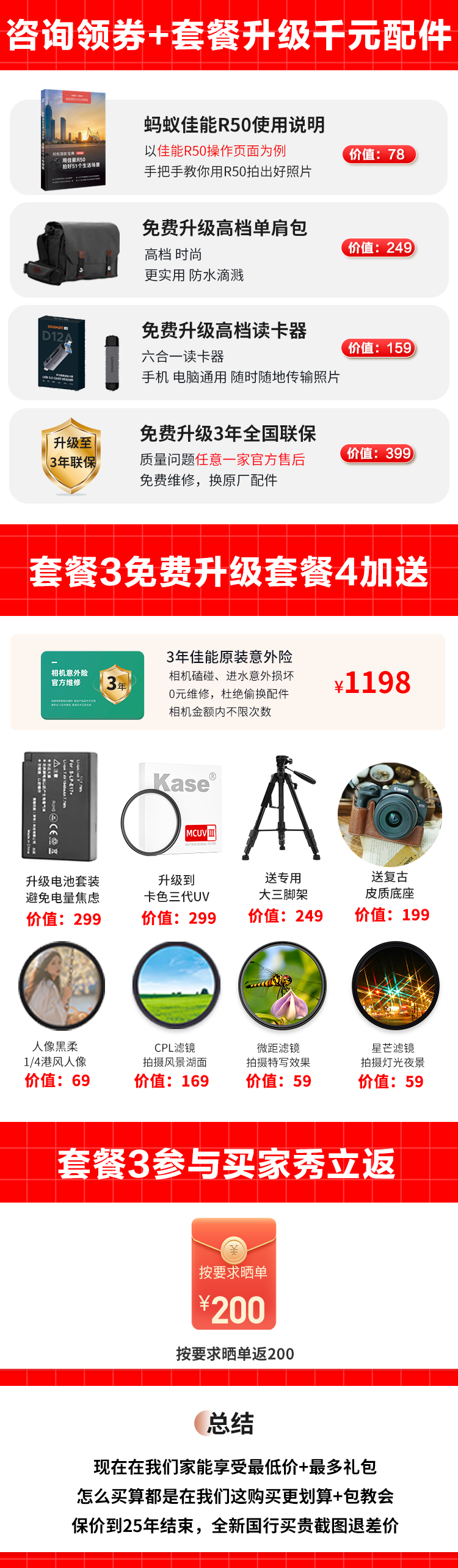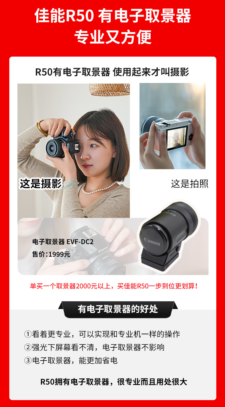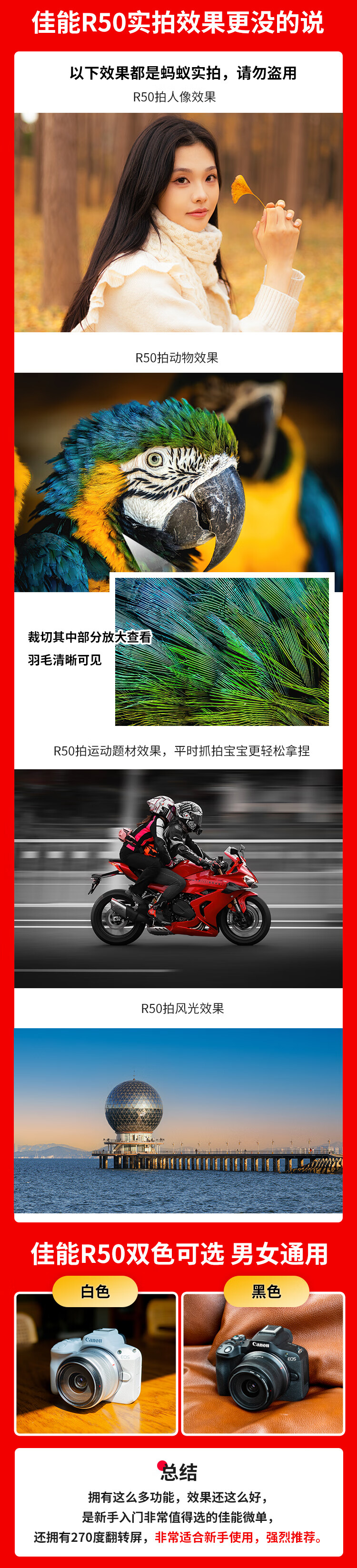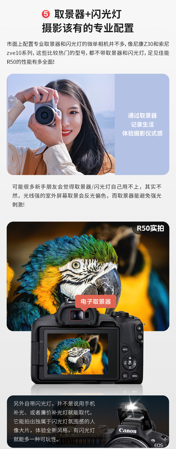 Canon Canon r50 mirrorless camera entry-level half-frame compact and portable travel home student 4k vlog video Canon r50 Canon camera r50 white R50 kit RF-S18-45 lens package one basic accessories/card/camera bag/R50 tutorial