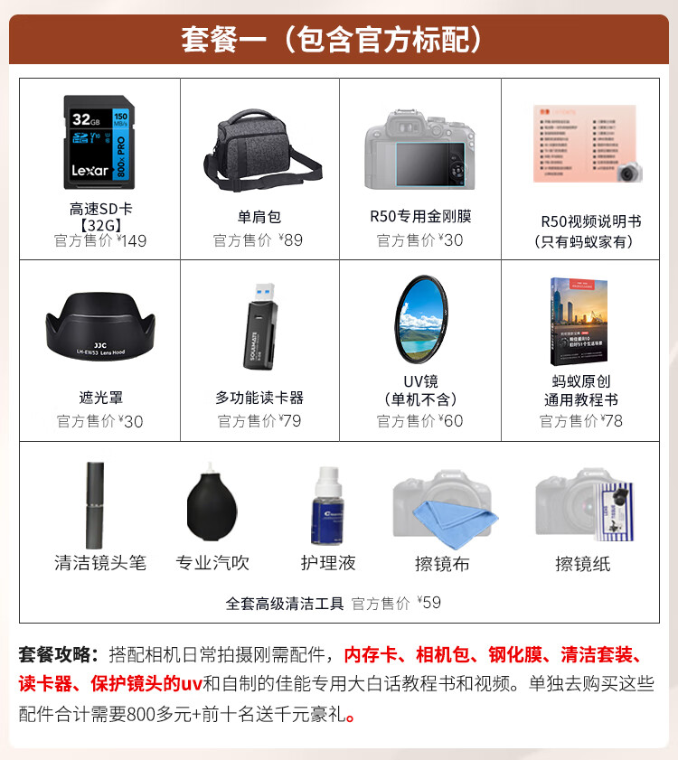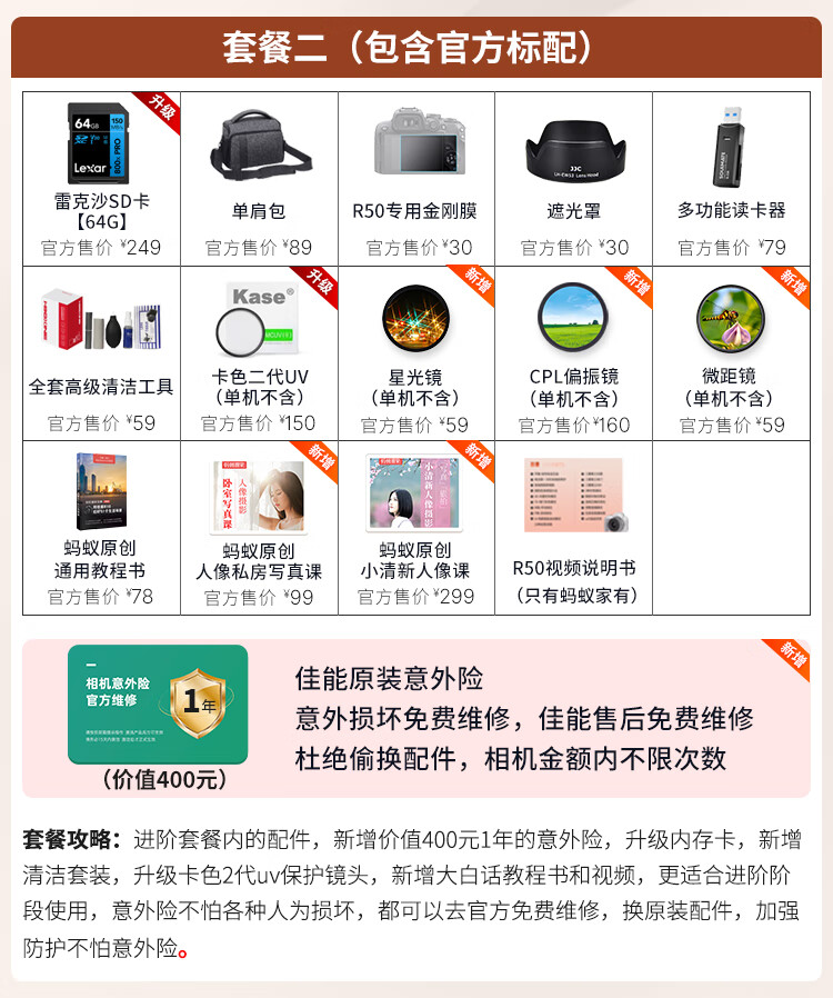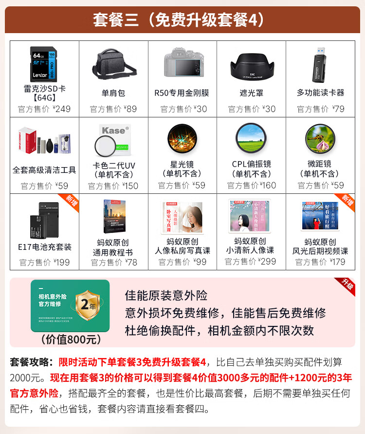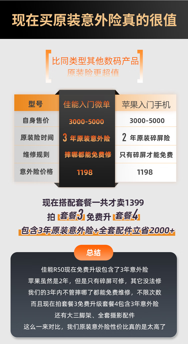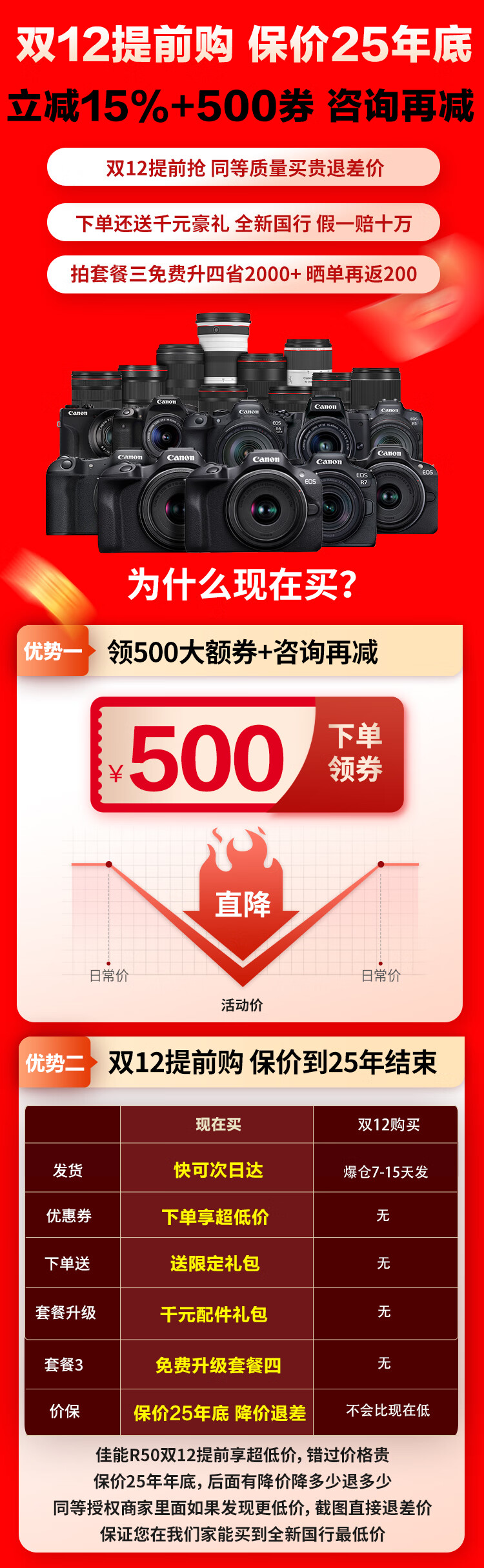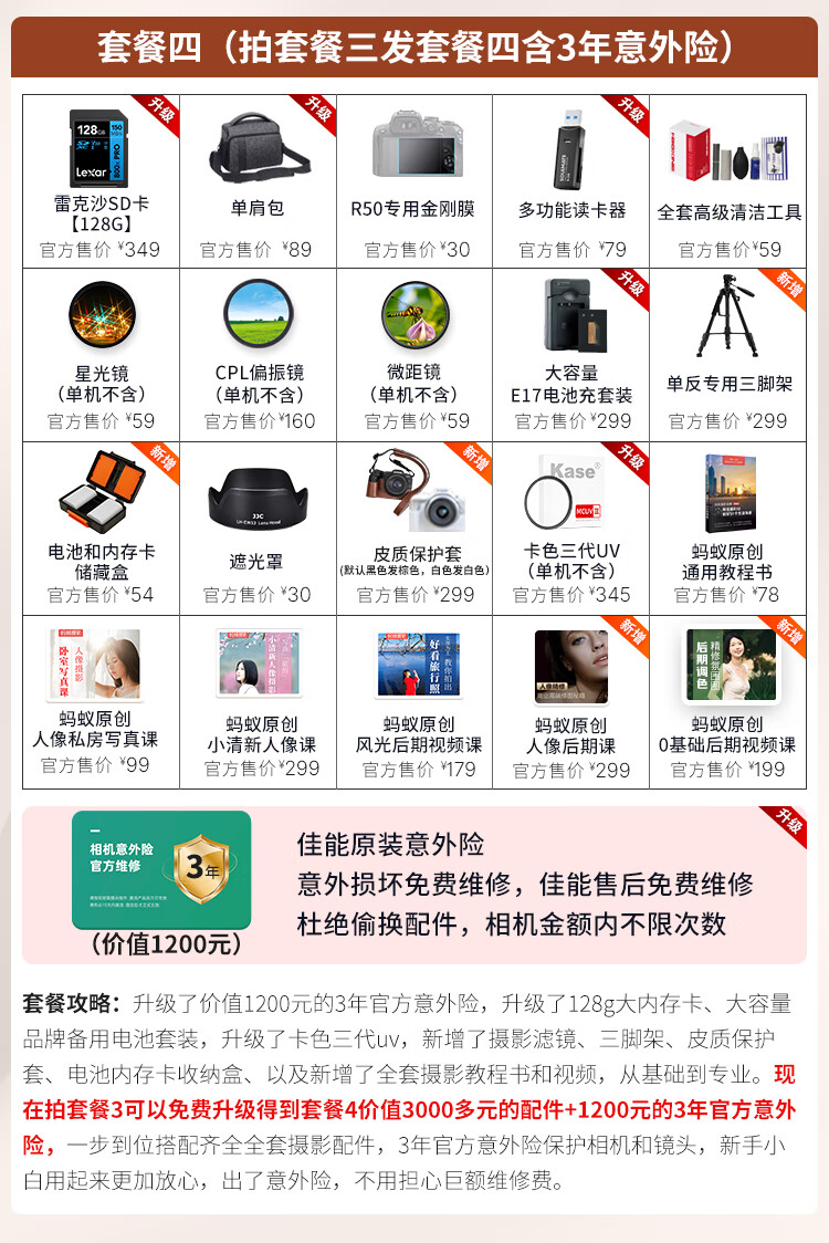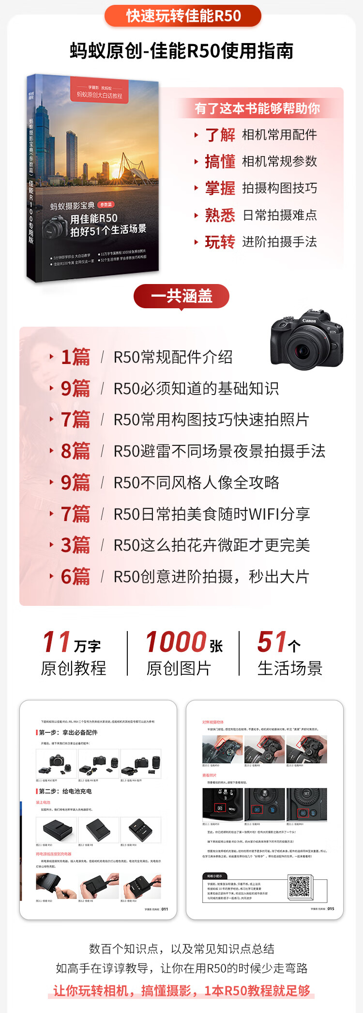 Canon Canon r50 mirrorless camera entry-level half-frame compact and portable travel home student 4k vlog video Canon r50 Canon camera r50 white R50 kit RF-S18-45 lens package one basic accessories/card/camera bag/R50 tutorial