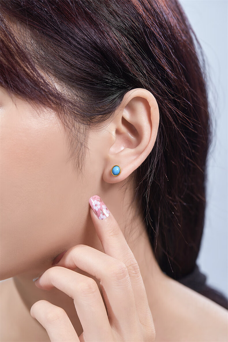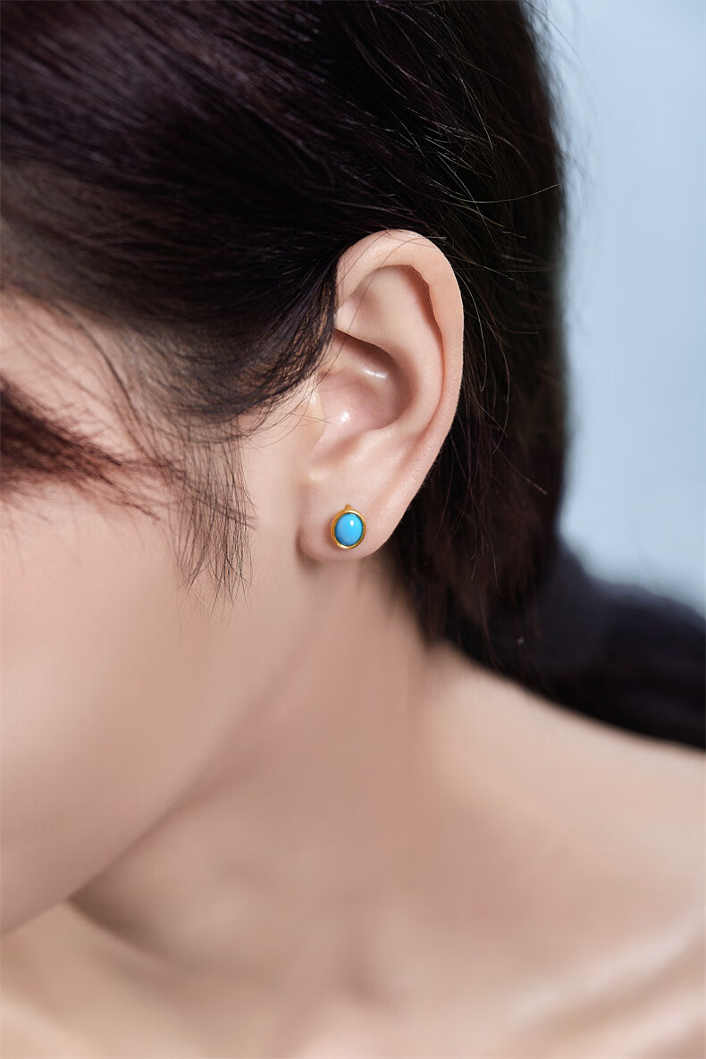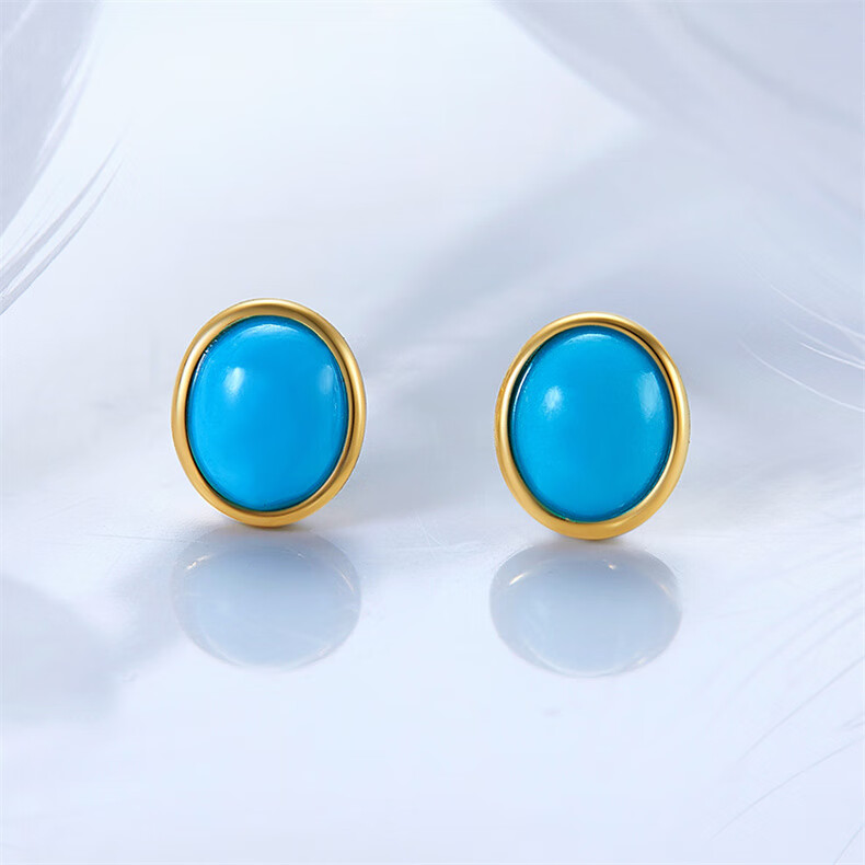 Diamond Yellow 18K Gold Turquoise Earrings for Women Colored Gemstone Earrings Colorful Treasures for Wife and Girlfriend Birthday Gift Yellow 18K Gold Turquoise 5mm*7mm/Pair