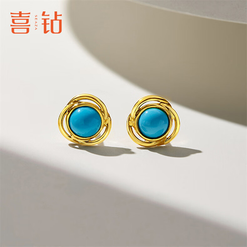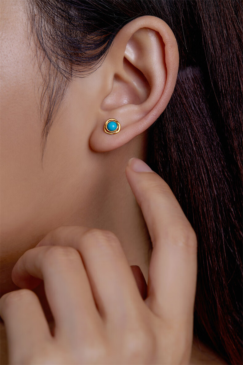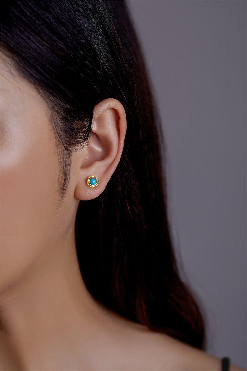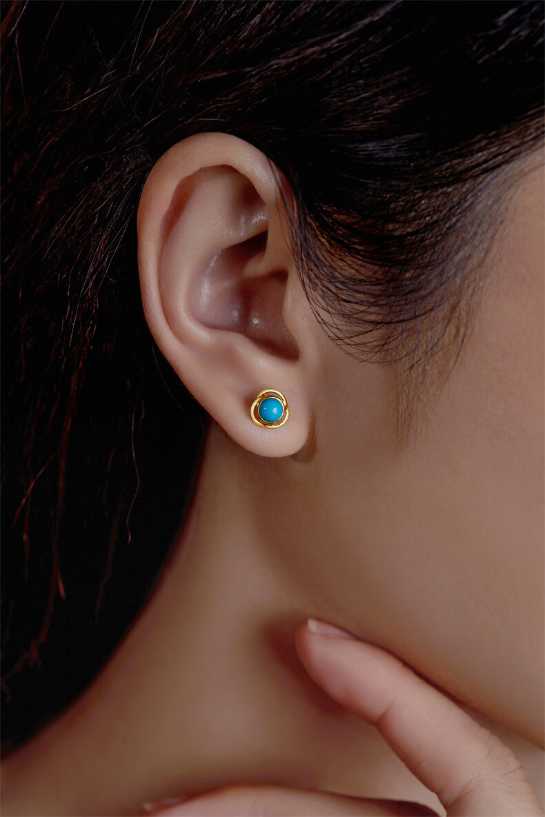 Diamond Yellow 18K Gold Turquoise Stud Earrings for Women Round Gemstone Earrings for Colorful Treasures for My Wife as a Birthday Gift for My Girlfriend Yellow 18K Gold Turquoise 4mm/Pair