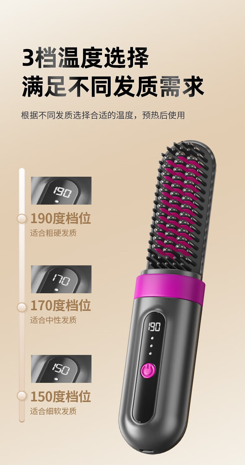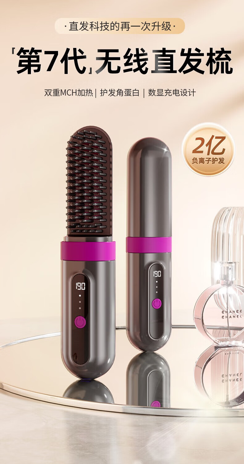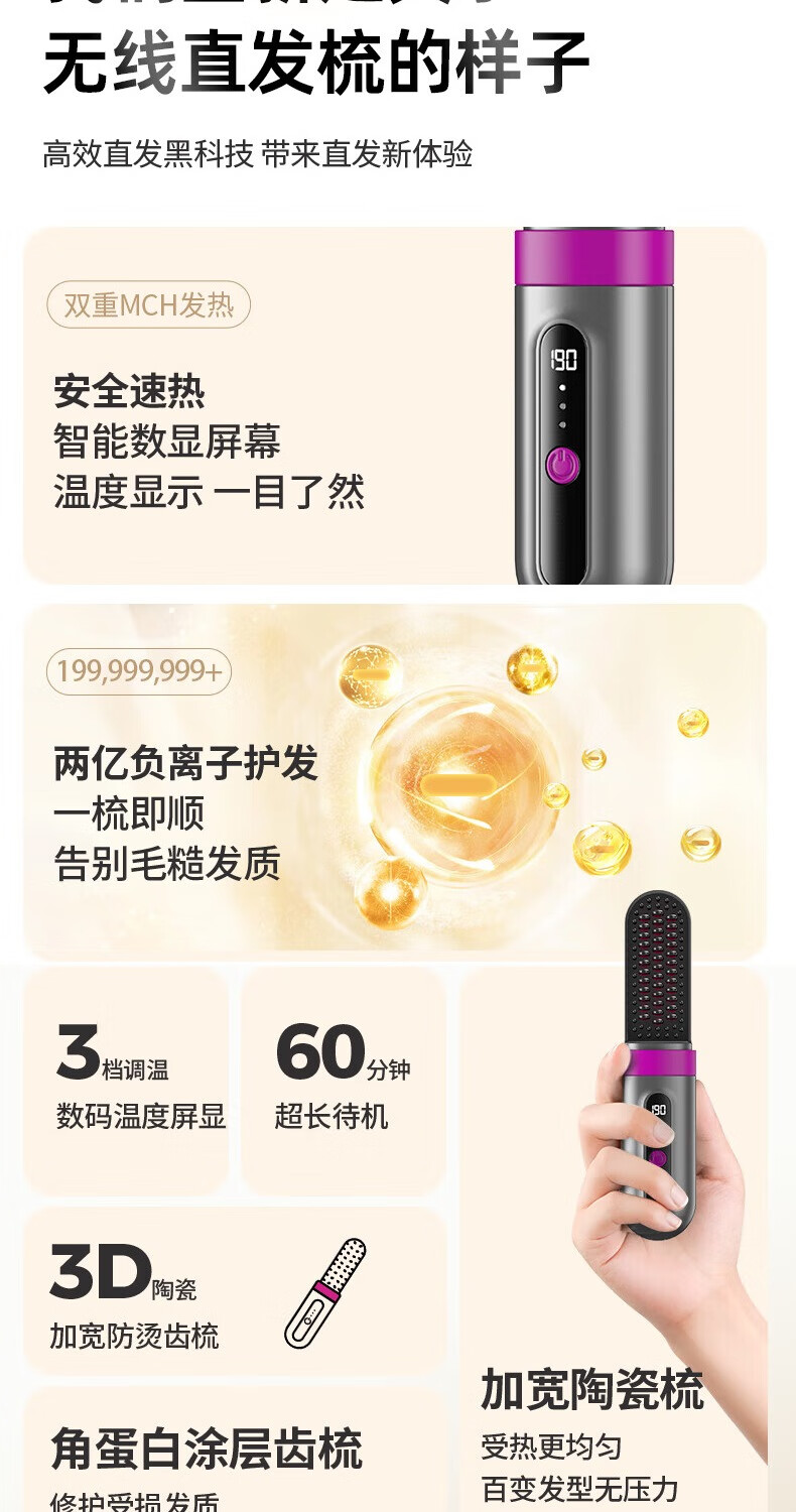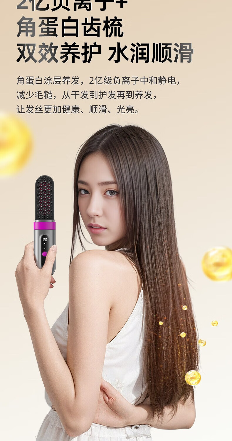OVL Straightening Comb Cordless Curling Iron Negative Ions Will Not Damage Hair Curling Iron Styling Comb Quick-Heat Convenient Curling Comb Hairdressing Tool Flagship 3-speed Negative Ion + Anti-scalding Protective Case