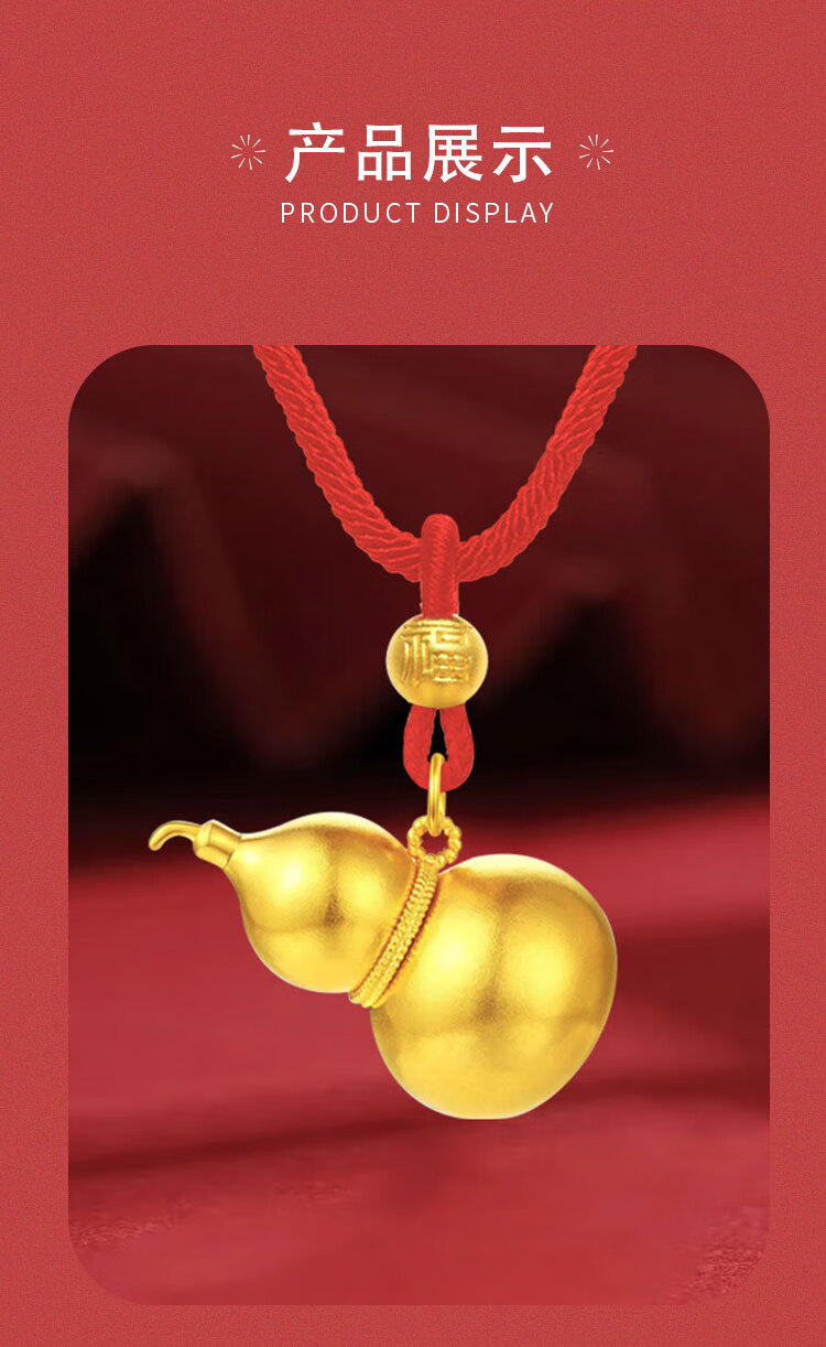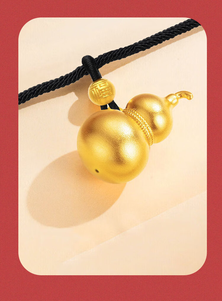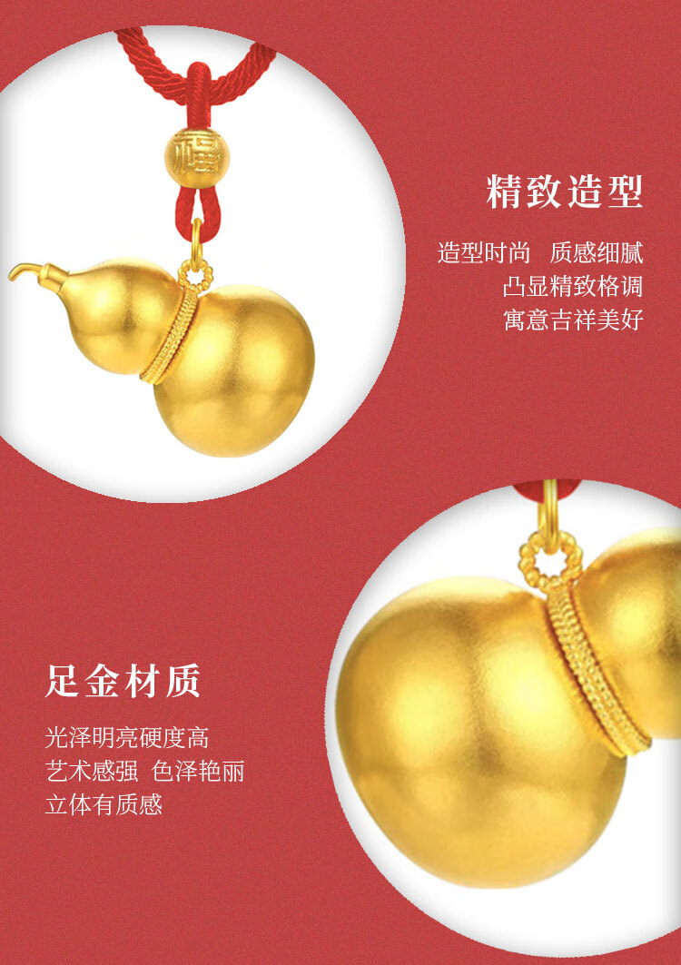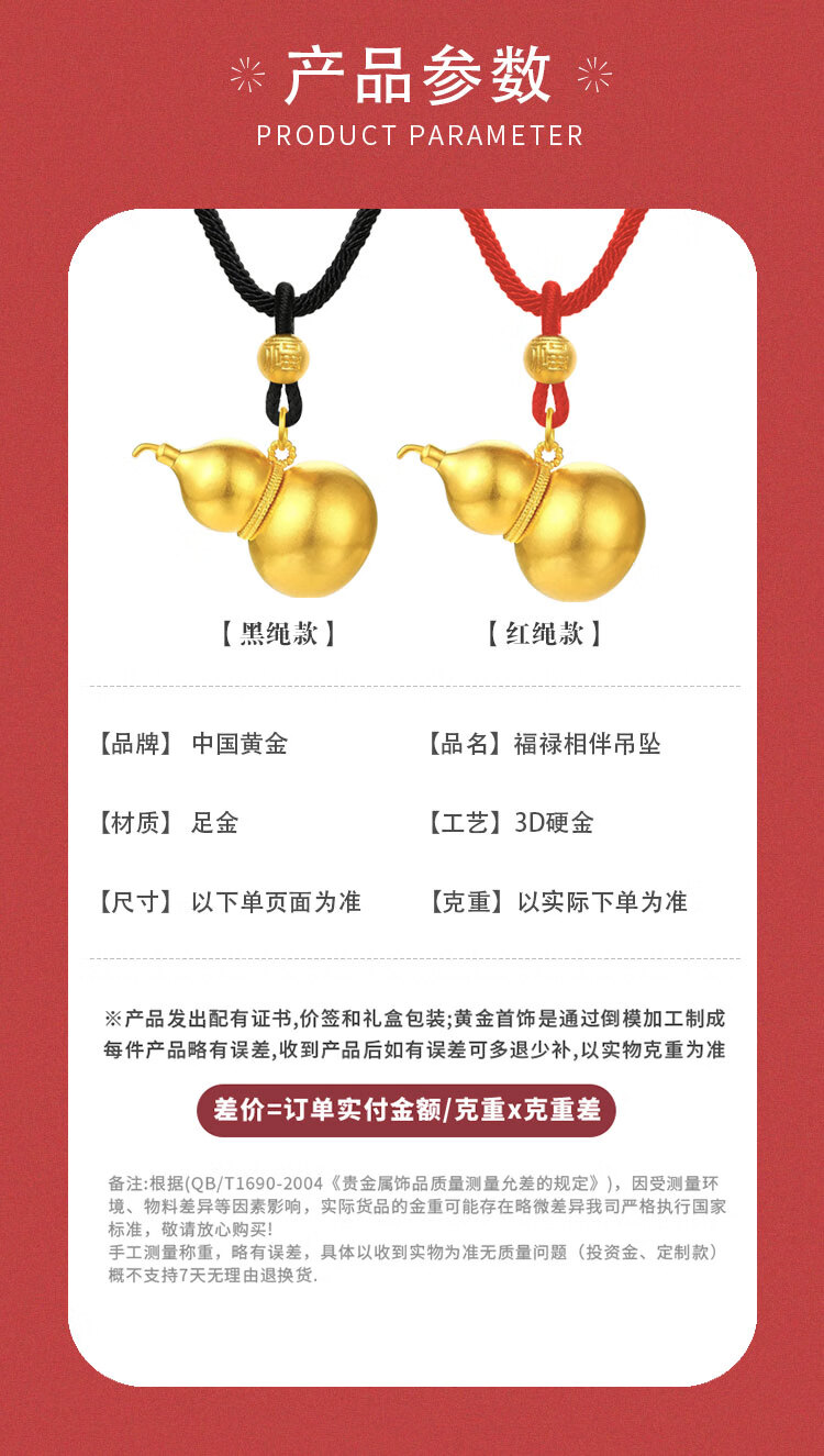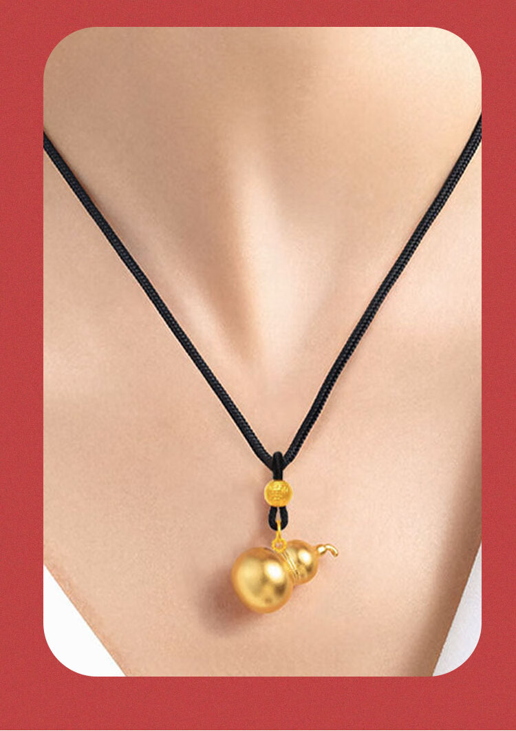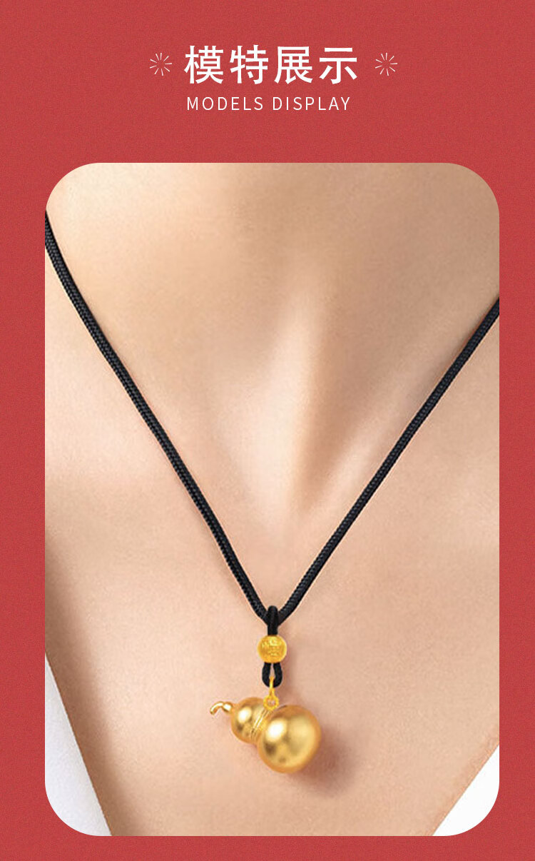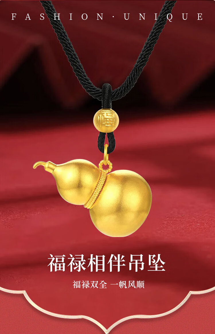 China Gold (CHINA GOLD) gold gourd pendant for men and women, pure gold necklace, fortune and fortune companion pendant, Valentine's Day birthday gift for girlfriend and wife, today/next day delivery, gourd pendant + fortune beads, black rope, about 1g