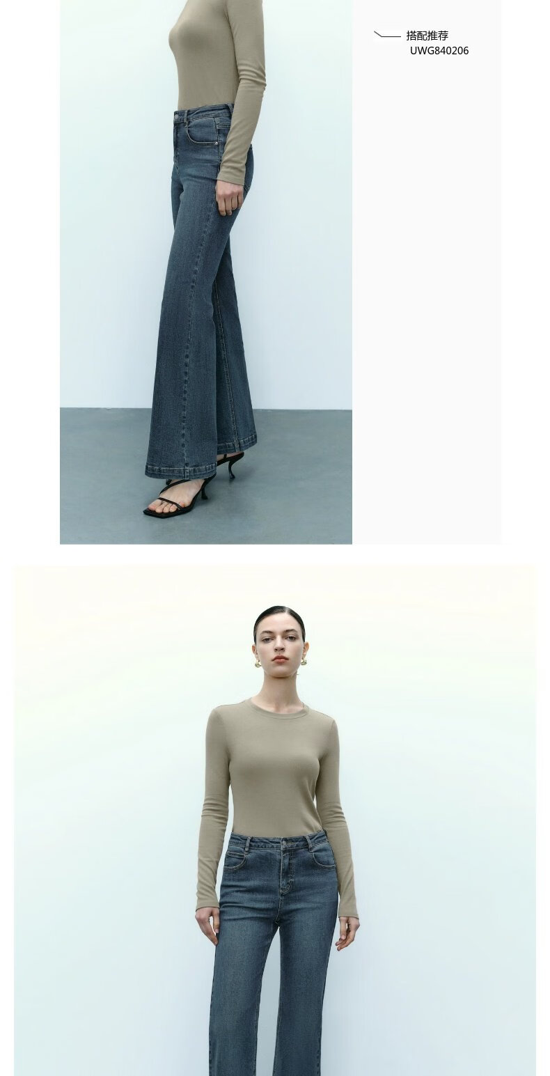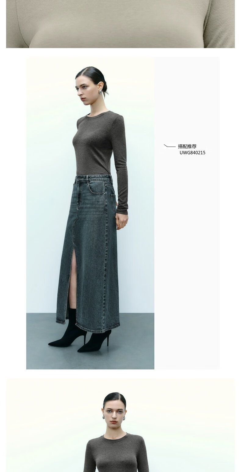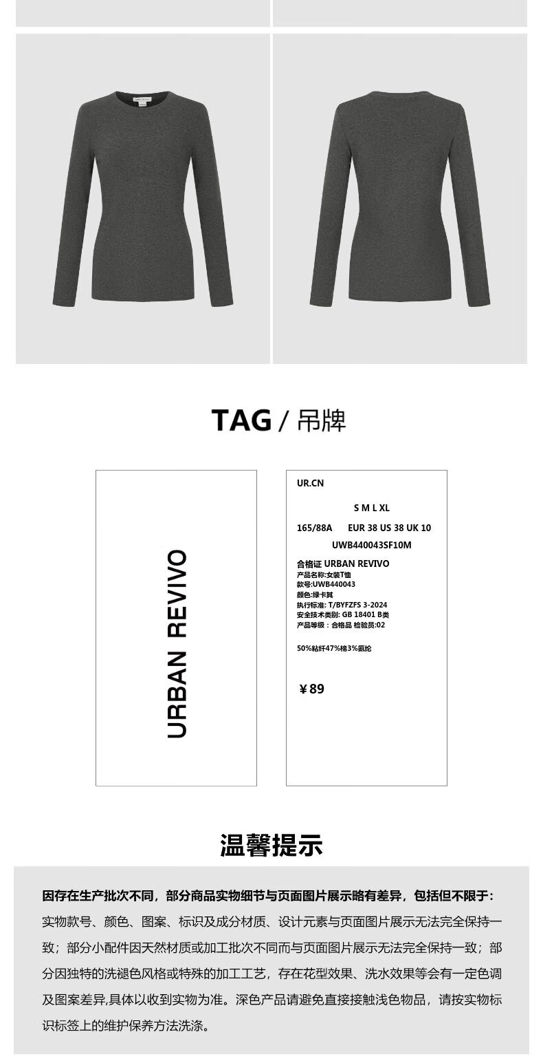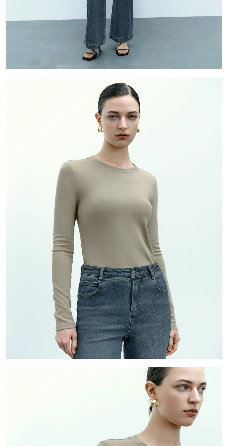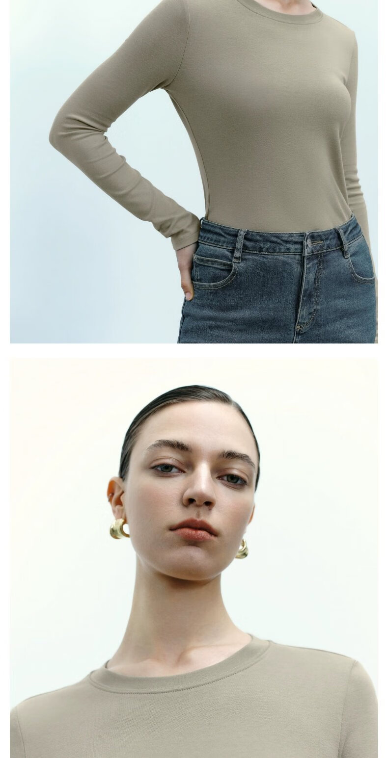 UR new autumn women's clothing simple basic versatile round neck slim long-sleeved T-shirt UWB440043 green khaki M