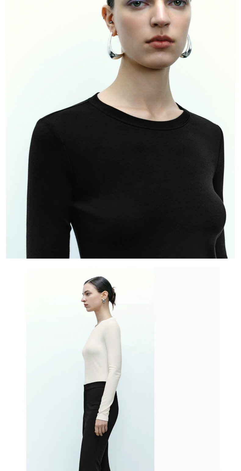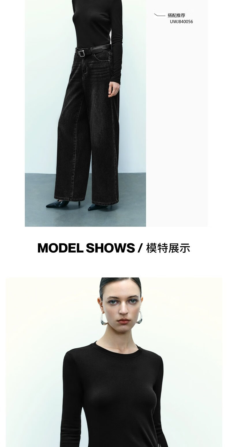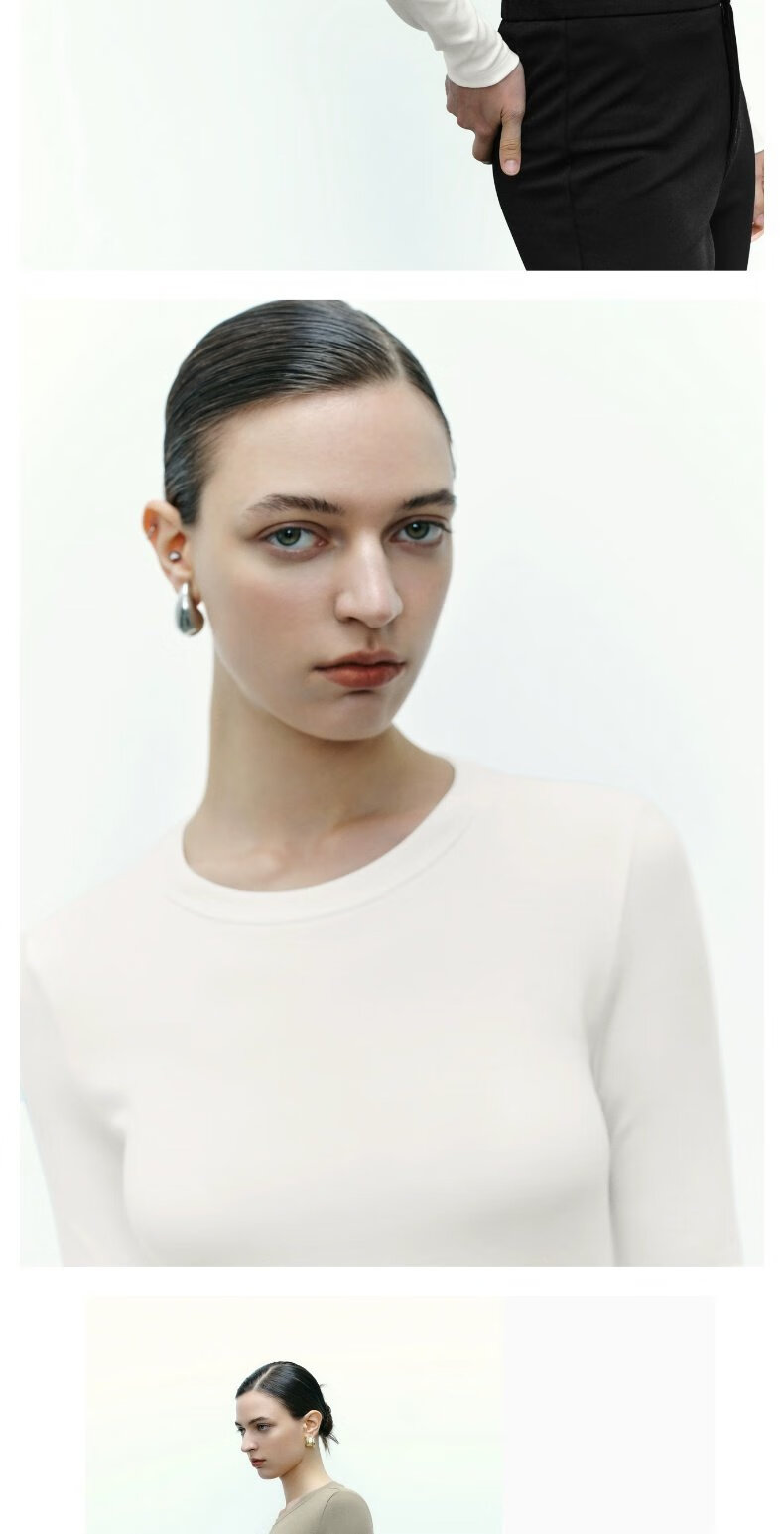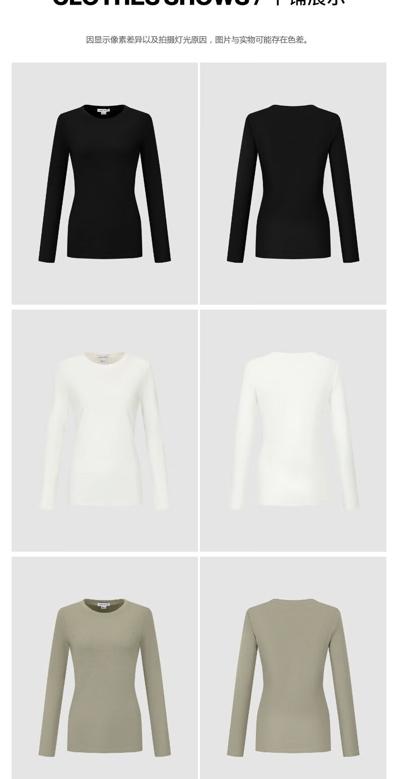 UR new autumn women's clothing simple basic versatile round neck slim long-sleeved T-shirt UWB440043 green khaki M