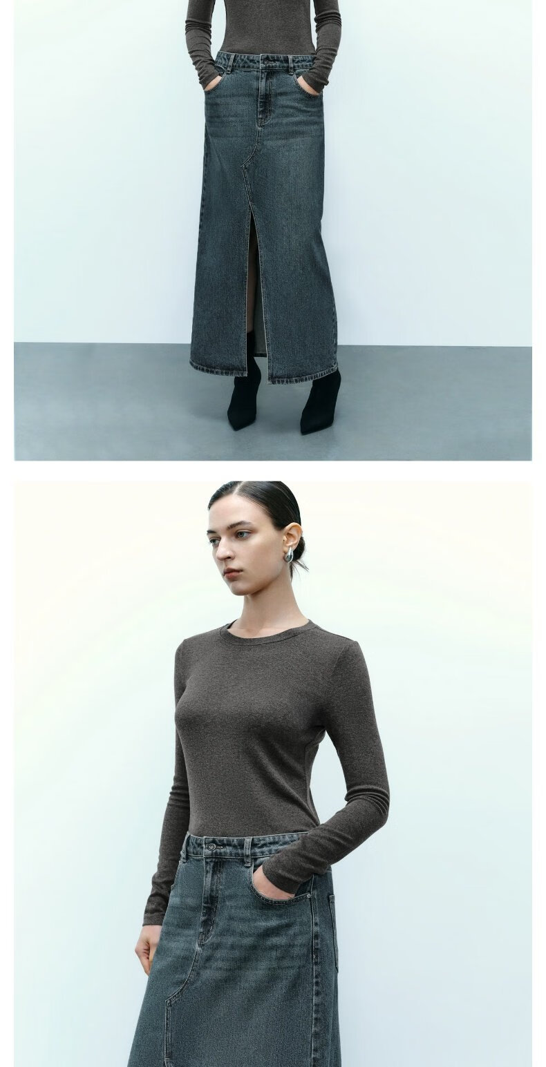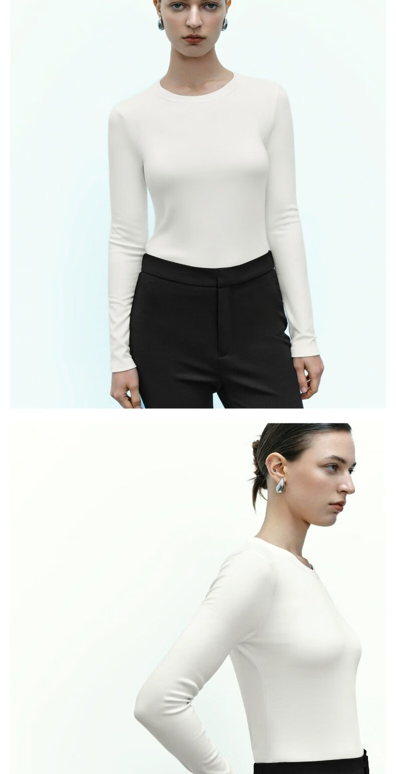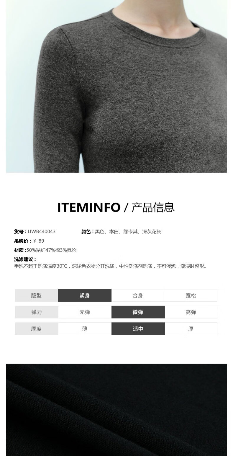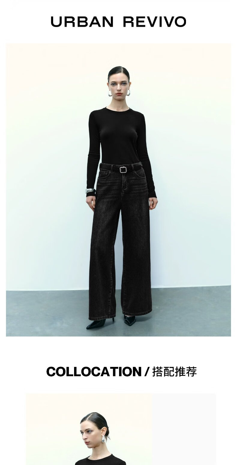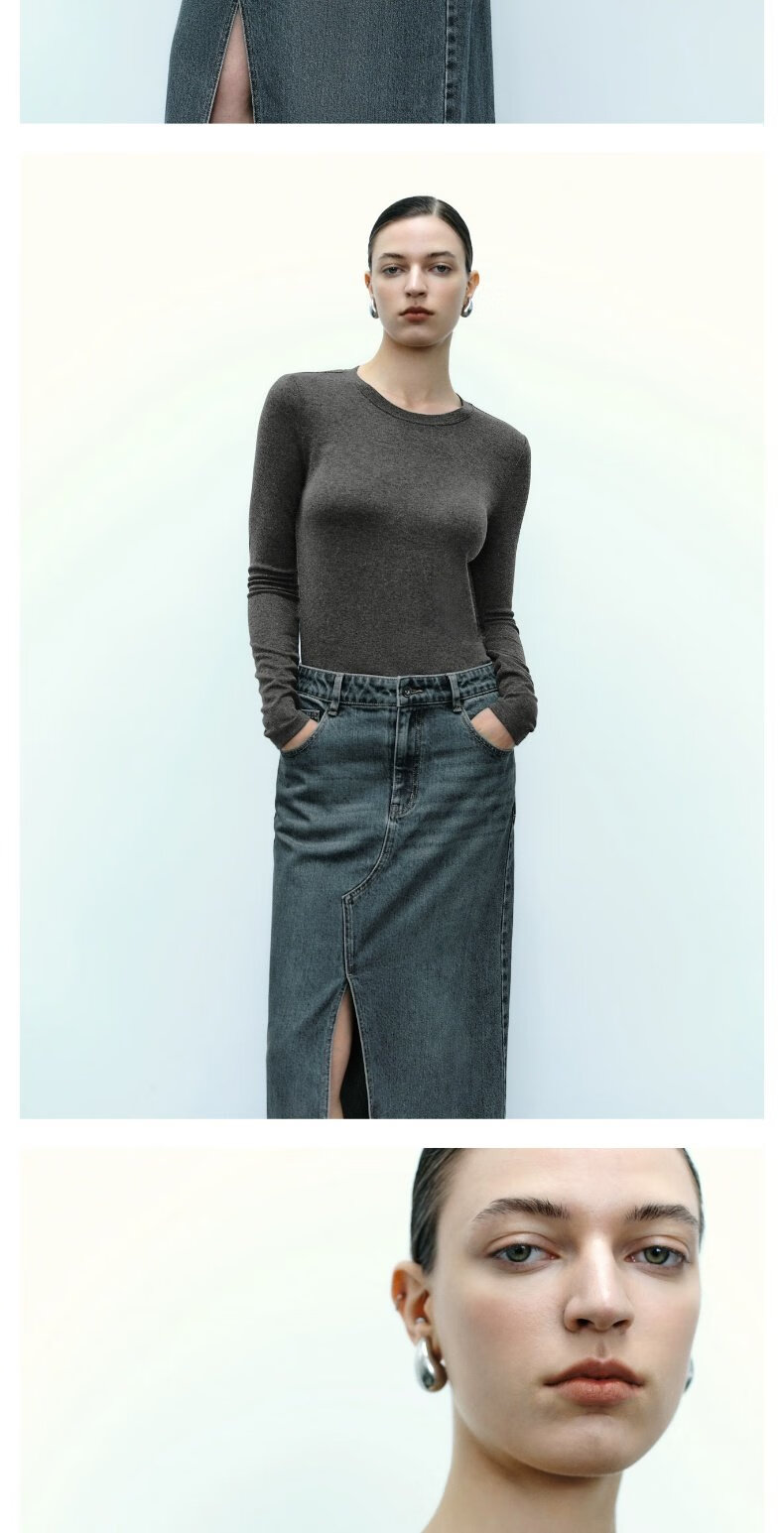 UR new autumn women's clothing simple basic versatile round neck slim long-sleeved T-shirt UWB440043 green khaki M