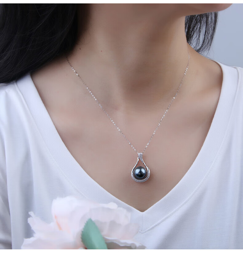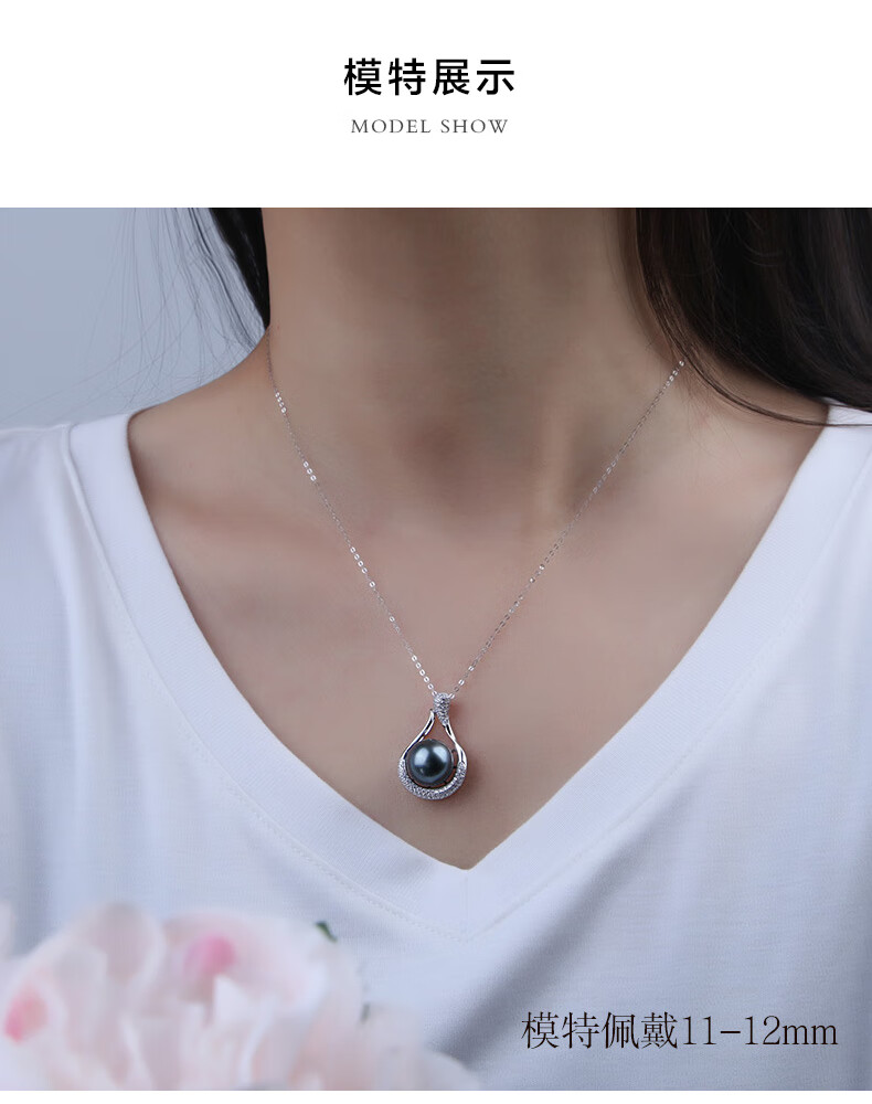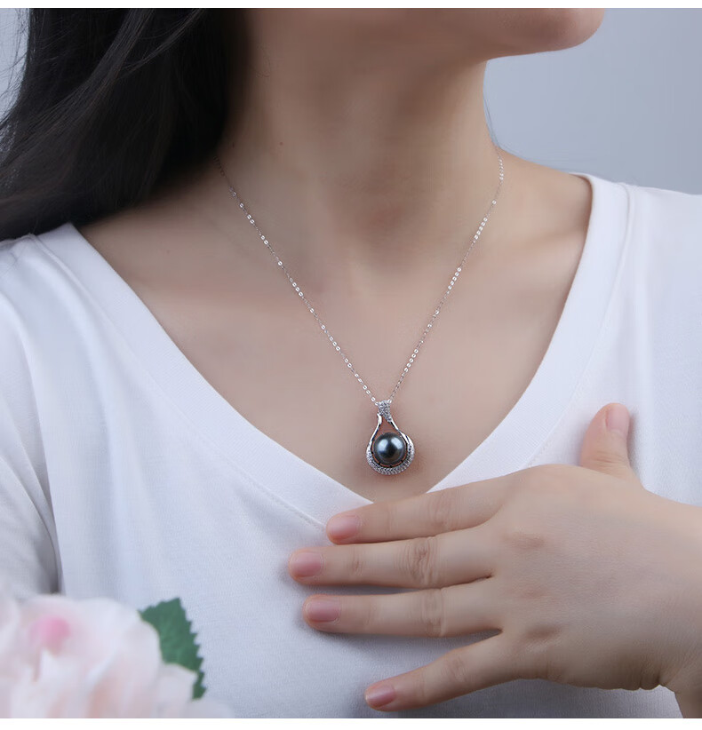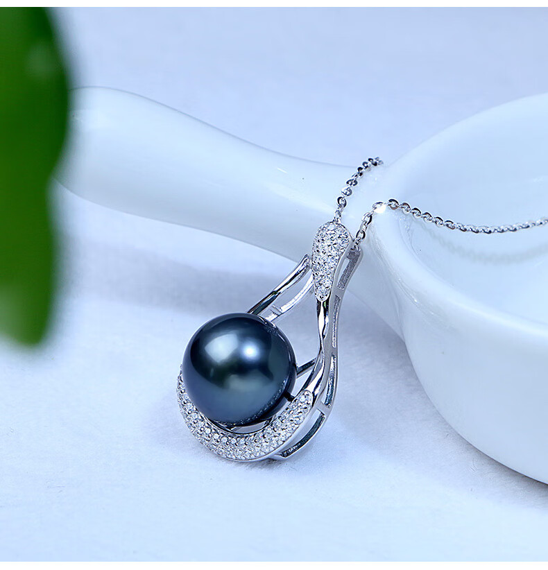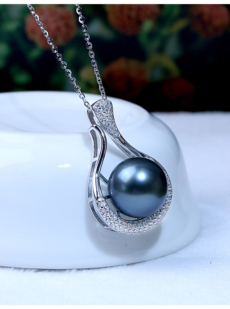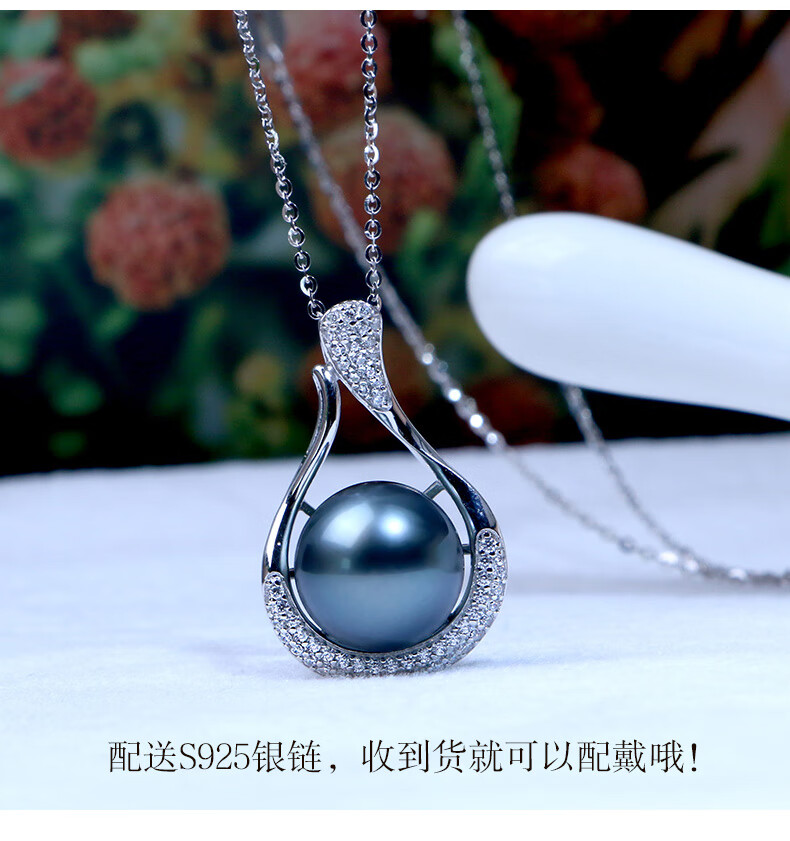 Manzhutang light luxury jewelry Tahitian black pearl pendant S925 silver single black pearl pendant clavicle chain for wife and mother 11-12mm with silver chain