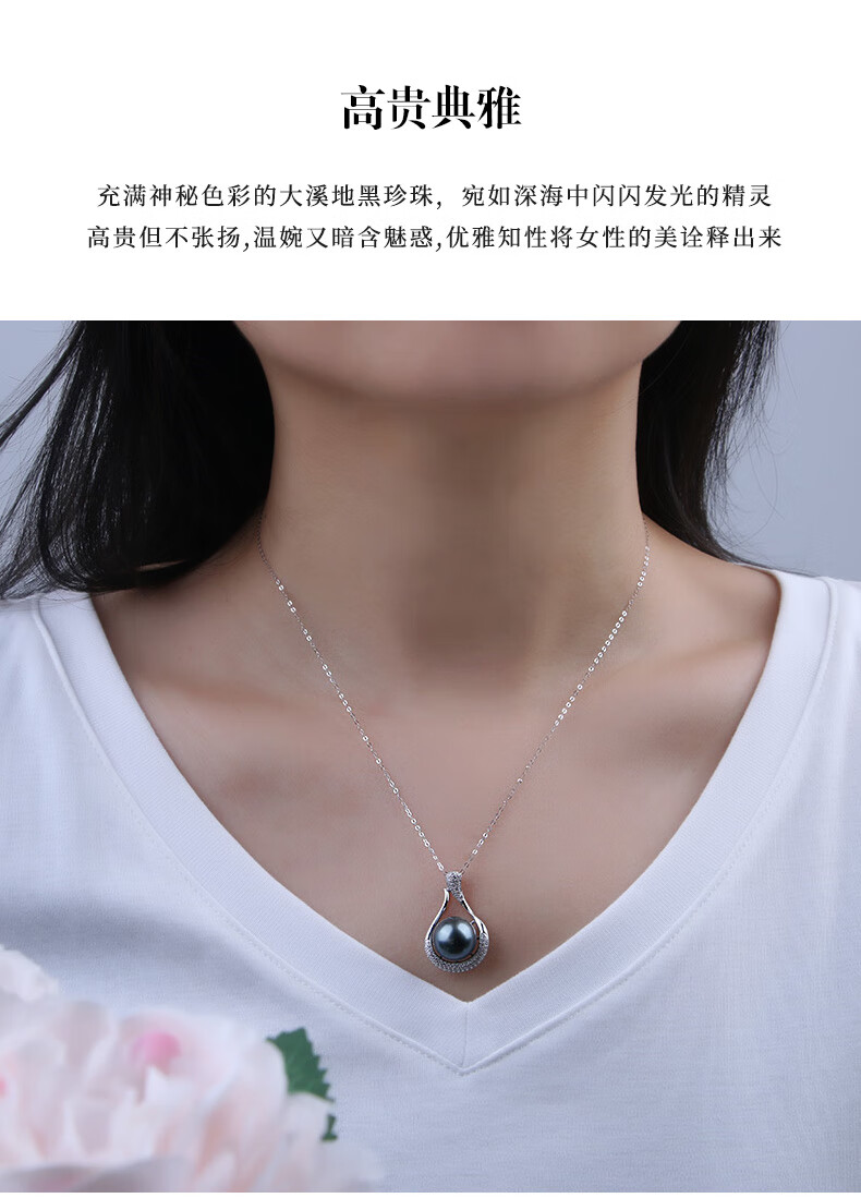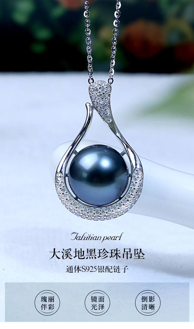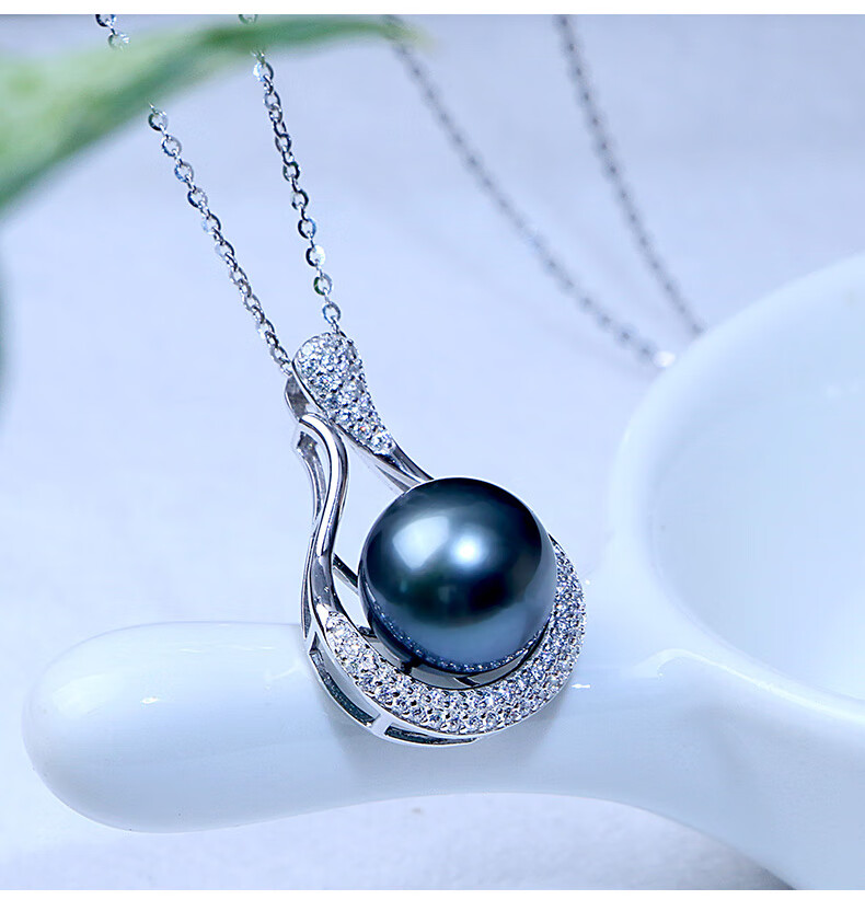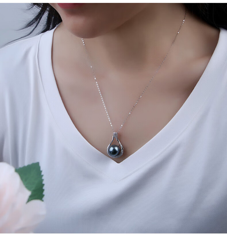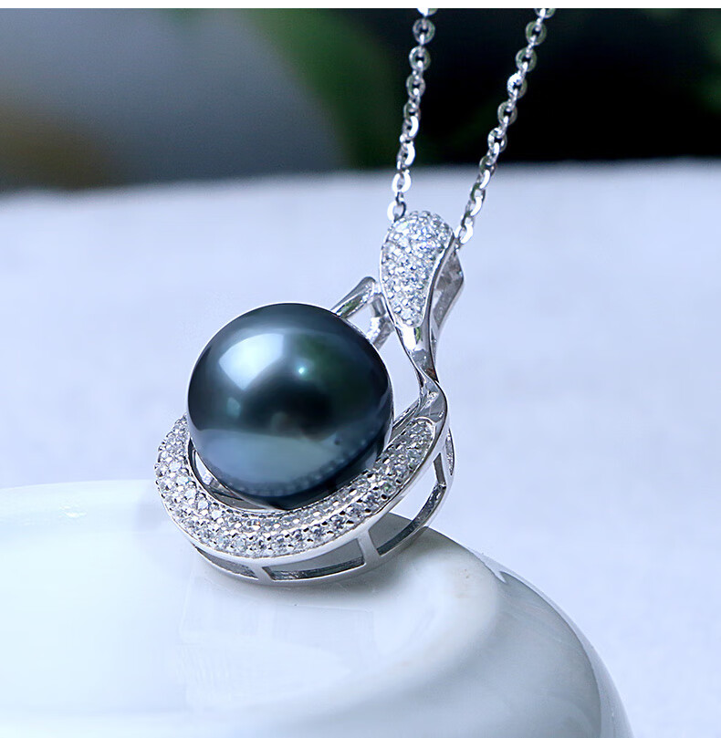 Manzhutang light luxury jewelry Tahitian black pearl pendant S925 silver single black pearl pendant clavicle chain for wife and mother 11-12mm with silver chain