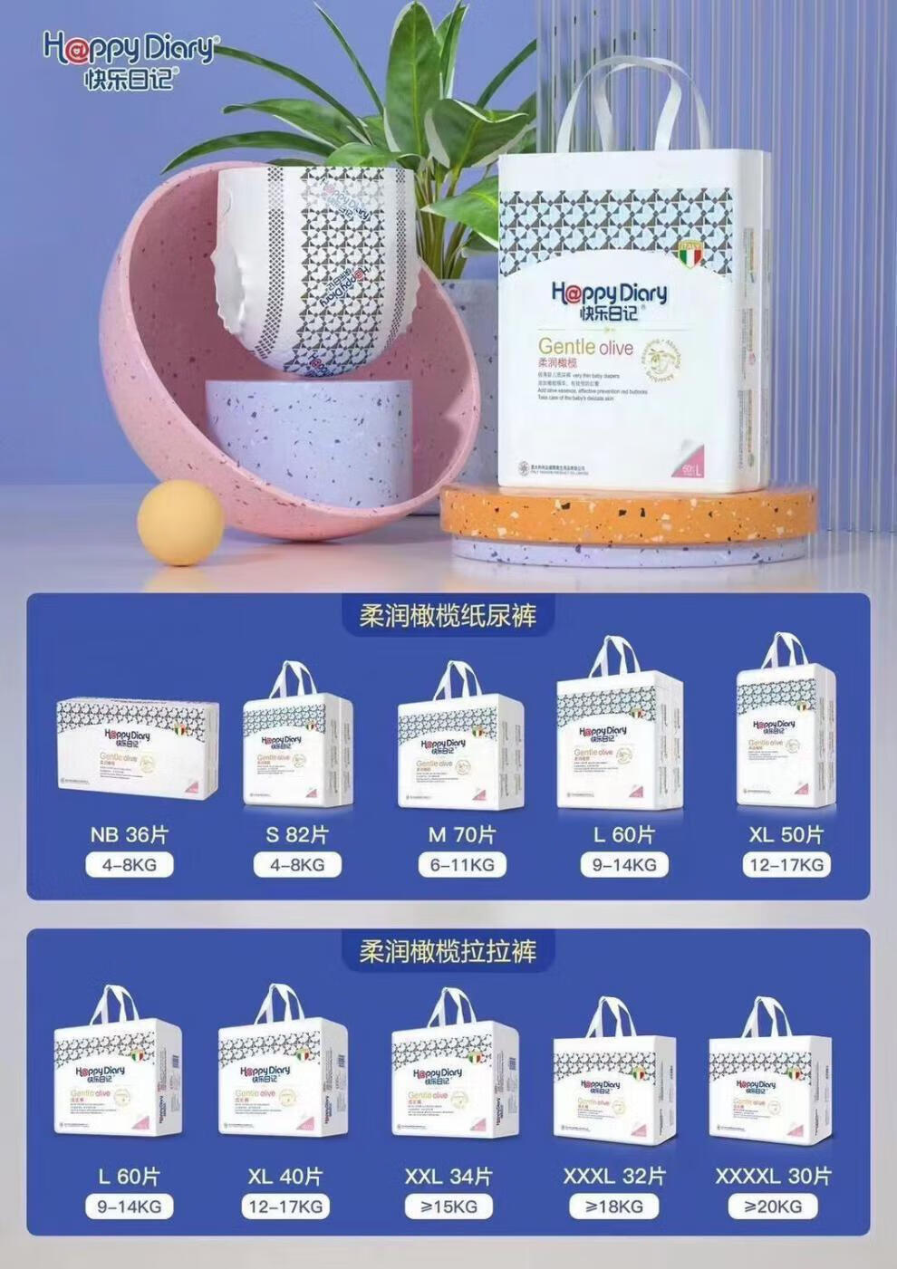 Happy Diary (Happiang) diapers, olive pull-ups, soft and moist, underwear-style diapers for men and women, XXL, full hip coverage, L size, 46 pieces, 1 pack
