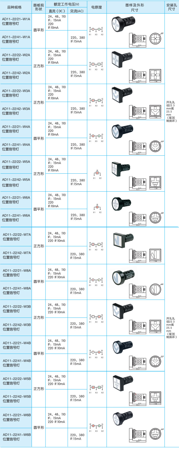 Jiangyin Changjiang position indicator light AD11-22/22-W2A 1 3 4 56A isolation knife circuit breaker grounding AD11-22/22-W2A AC/DC220V AC/DC220V