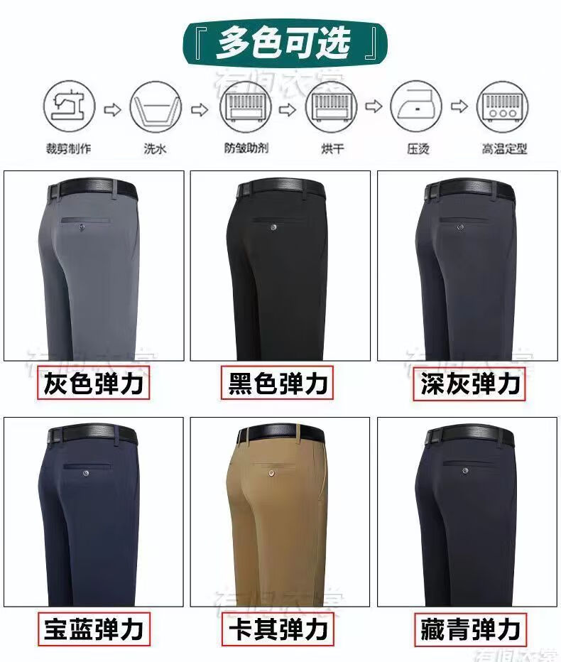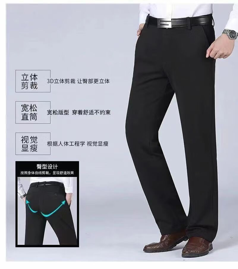 Autumn and winter thick style, elastic, middle-aged and elderly casual men's trousers, high waist, deep wrinkle-resistant daddy trousers, loose black AKO, two pairs of autumn and winter thick styles, 33, waist circumference 2 feet 6